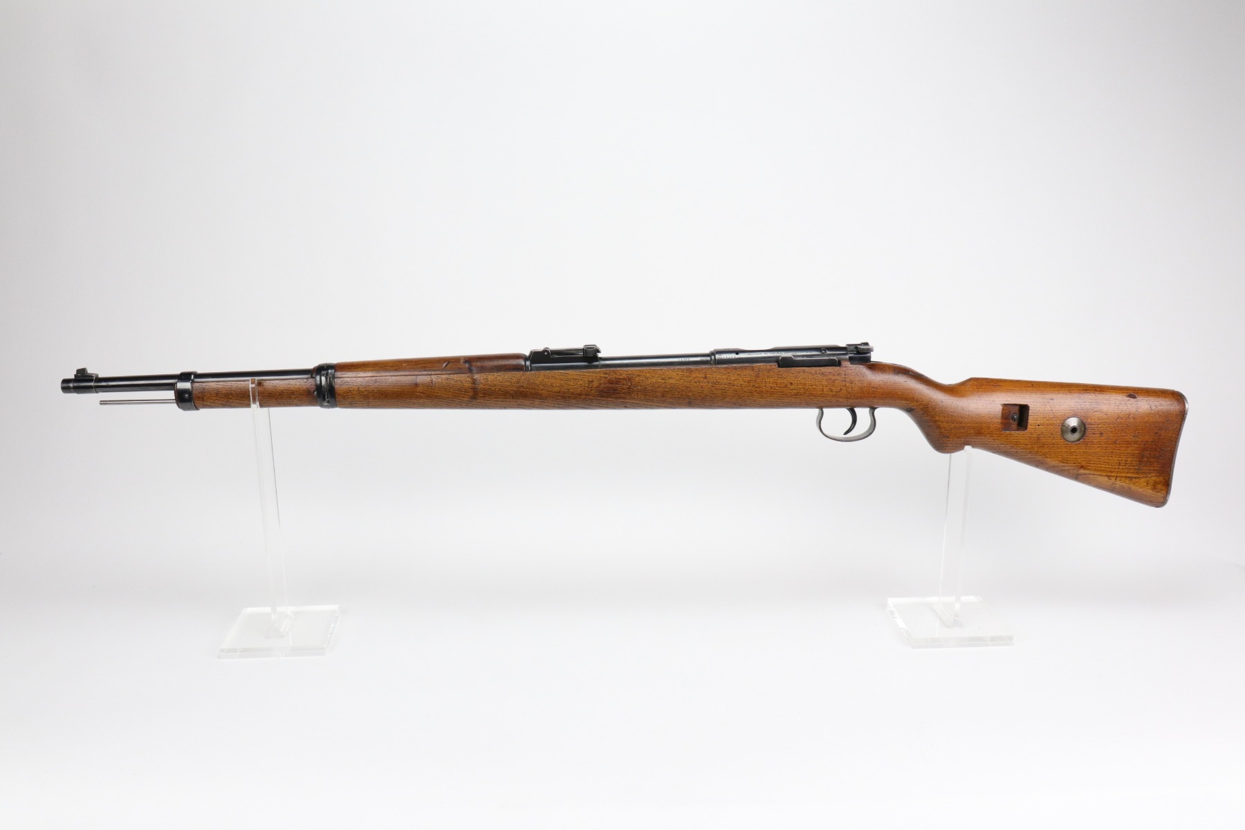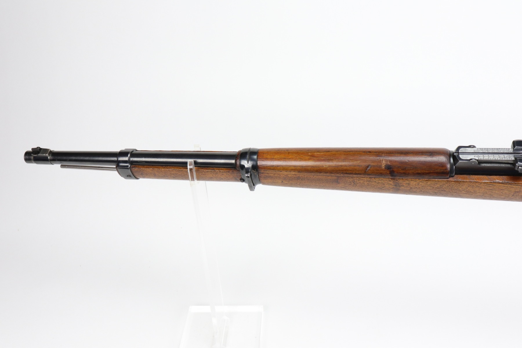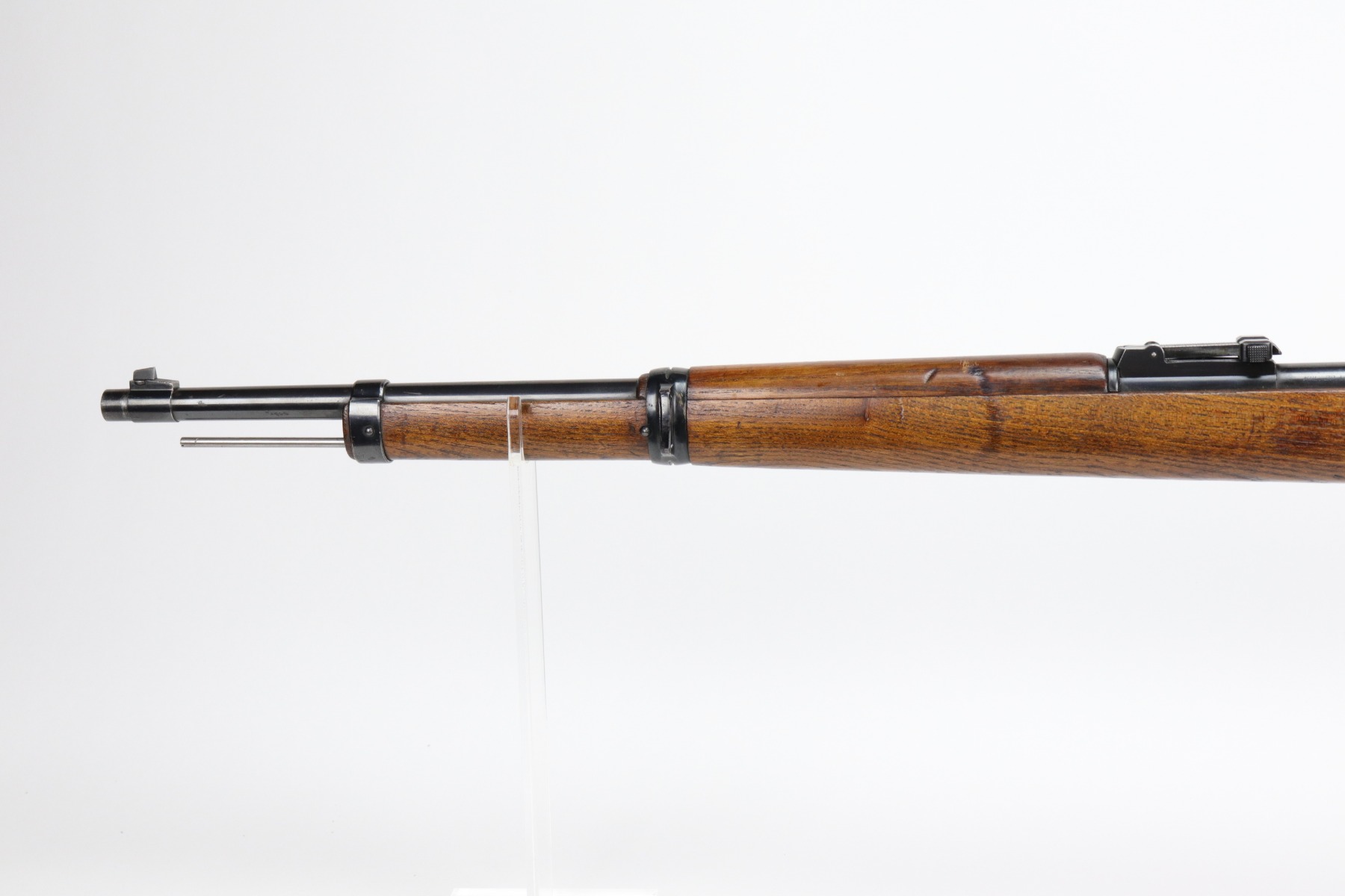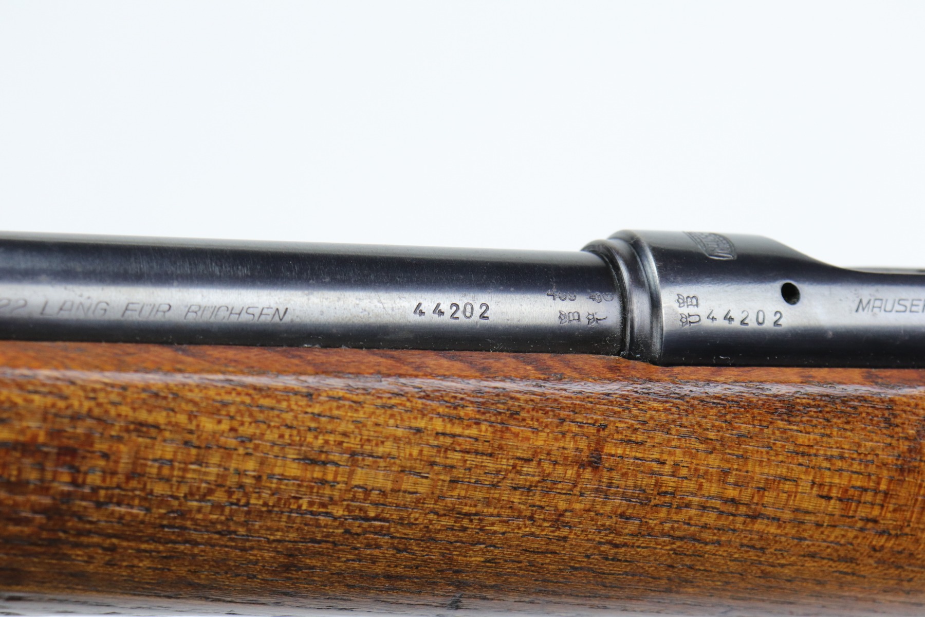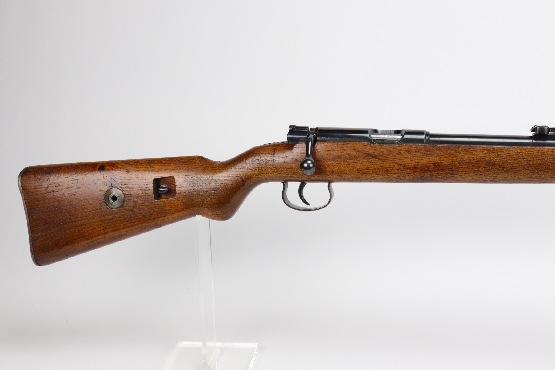 1/6/21 – This is an excellent example of a Pre-WW2 Mauser Training Rifle, chambered in .22LR. The gun is all matching and has early “BUG” proofs. It is in excellent condition, retaining virtually all of its original bluing – just some minor handling marks and light scratches here and there. The stock is excellent with minor handling marks and bruises. The bore is minty.