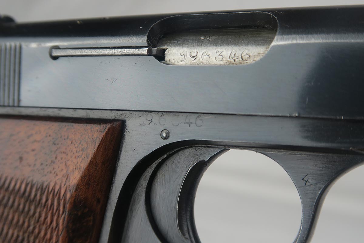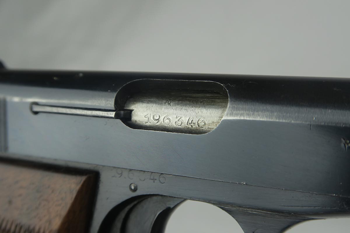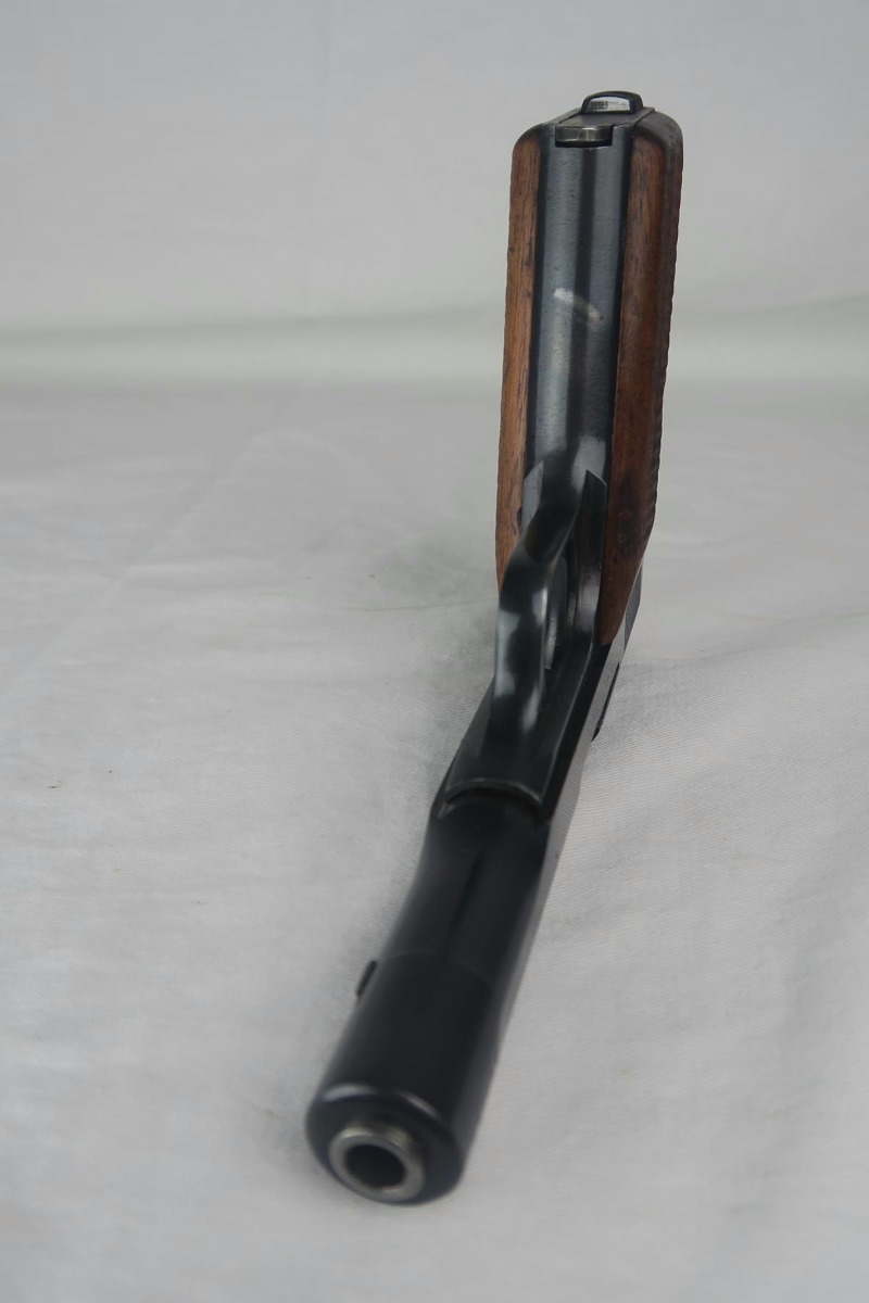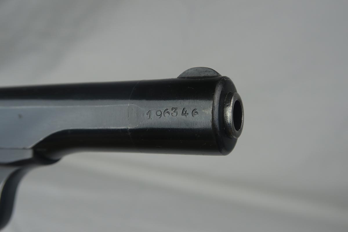 8/7/17 – This is an excellent 1922 Browning with Nazi proofs on the slide and frame.  It is all original and correct with about 98% bluing remaining.  The only notable blemish is a spot of finish loss on the front strap.  For whatever reason, I have genuinely not been to find one these in such condition for nearly two years.  Every single one I come across has notable finish loss near the muzzle due to the design of the holsters for these pistols.  Minty bore.