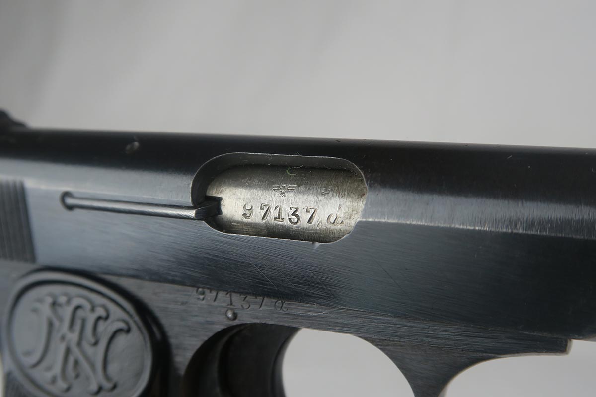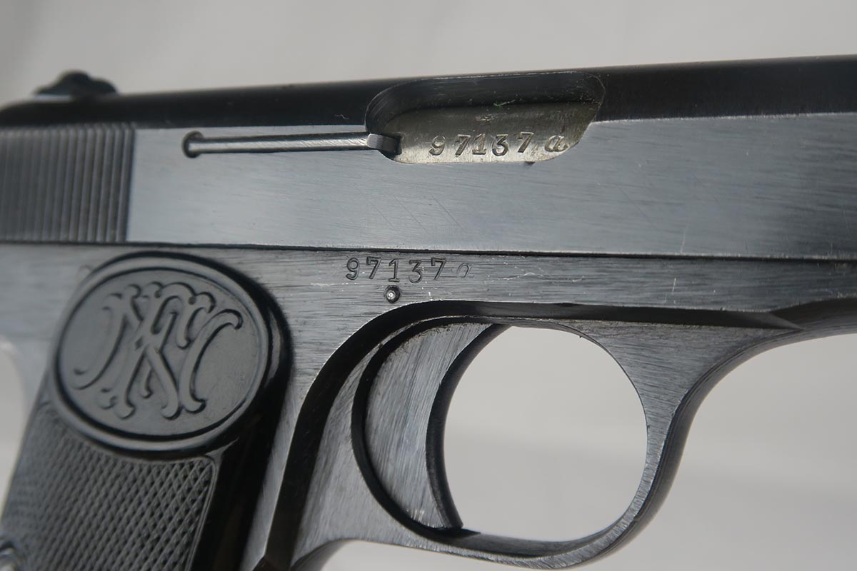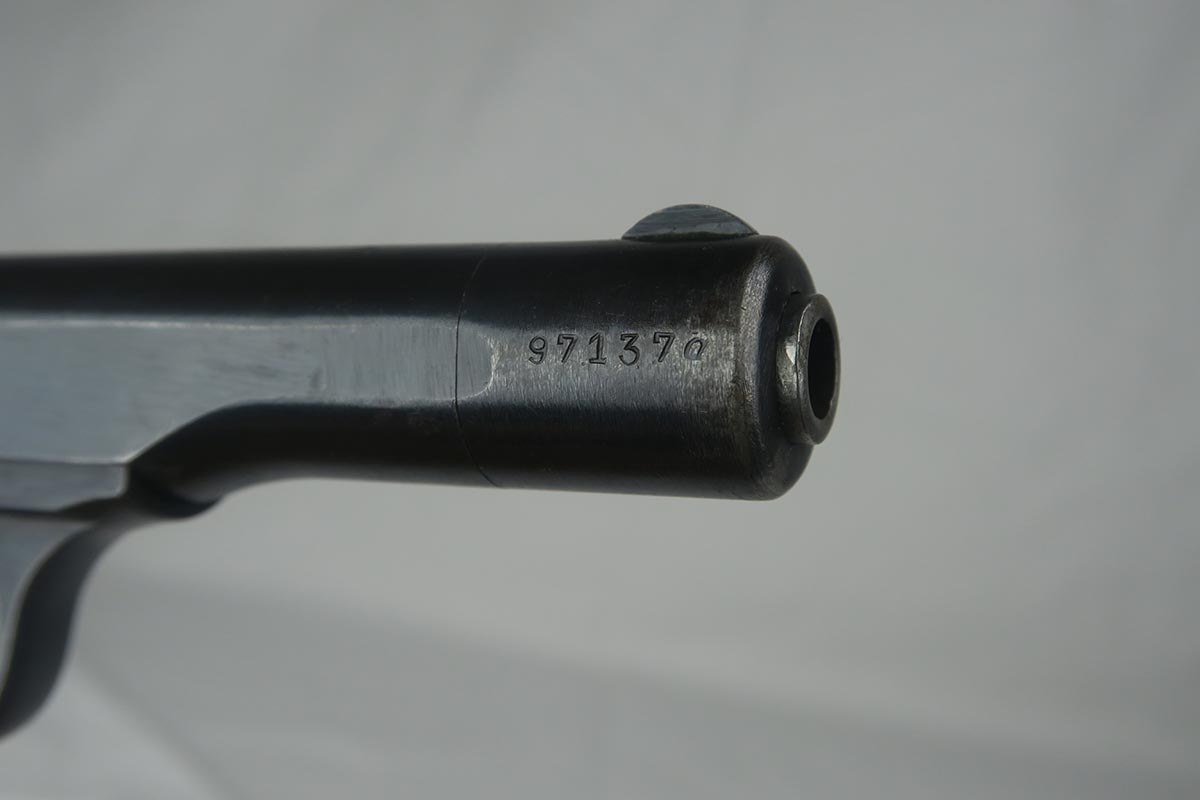 8/10/17 – Before this week, we haven’t been able to get our hands on a Nazi-marked 1922 Browning in this condition in over a year, and we’ve had two this week!  The finish rates at about 98% with nearly all the wear found on the muzzle, and beautiful straps.  Nice grips with no major flaws.  Period correct mag.  Mint bore.