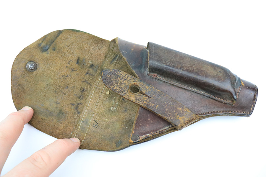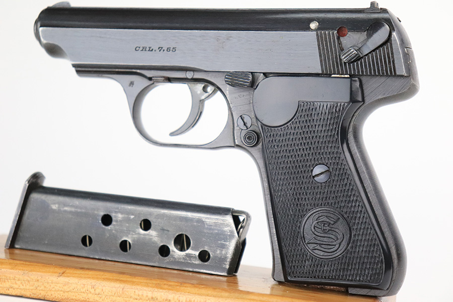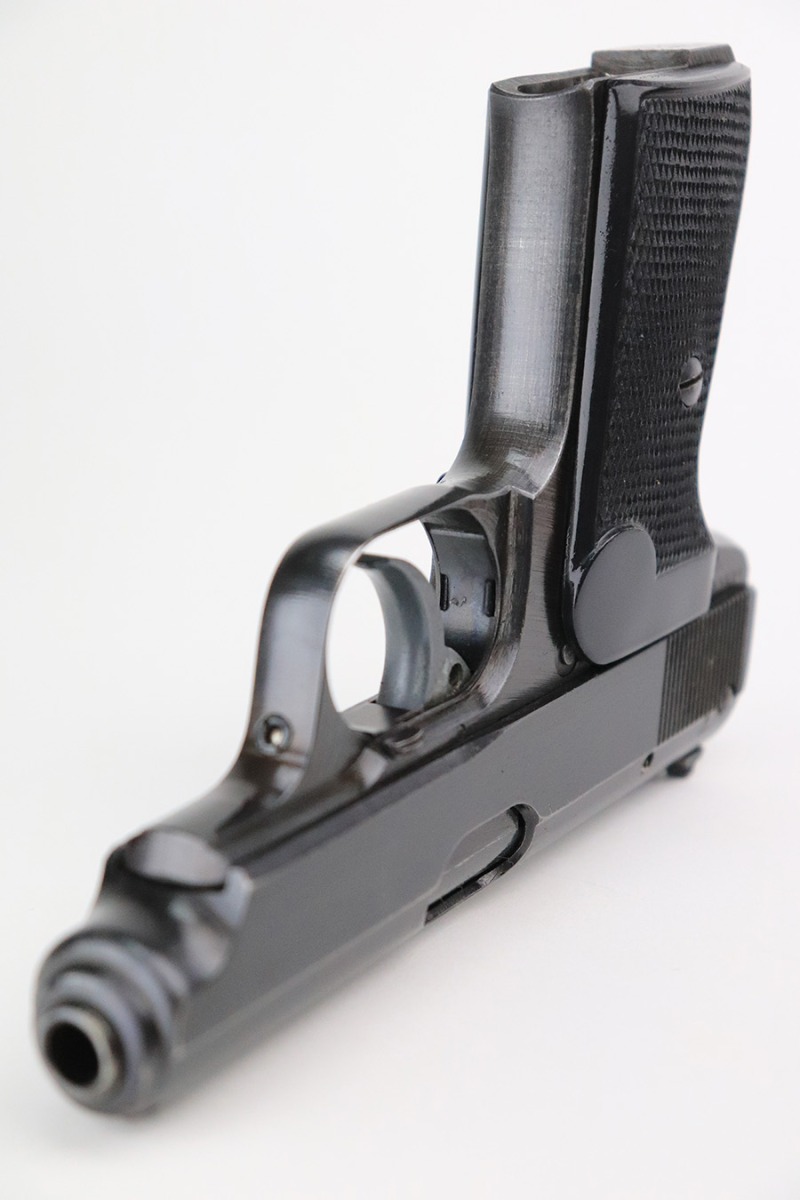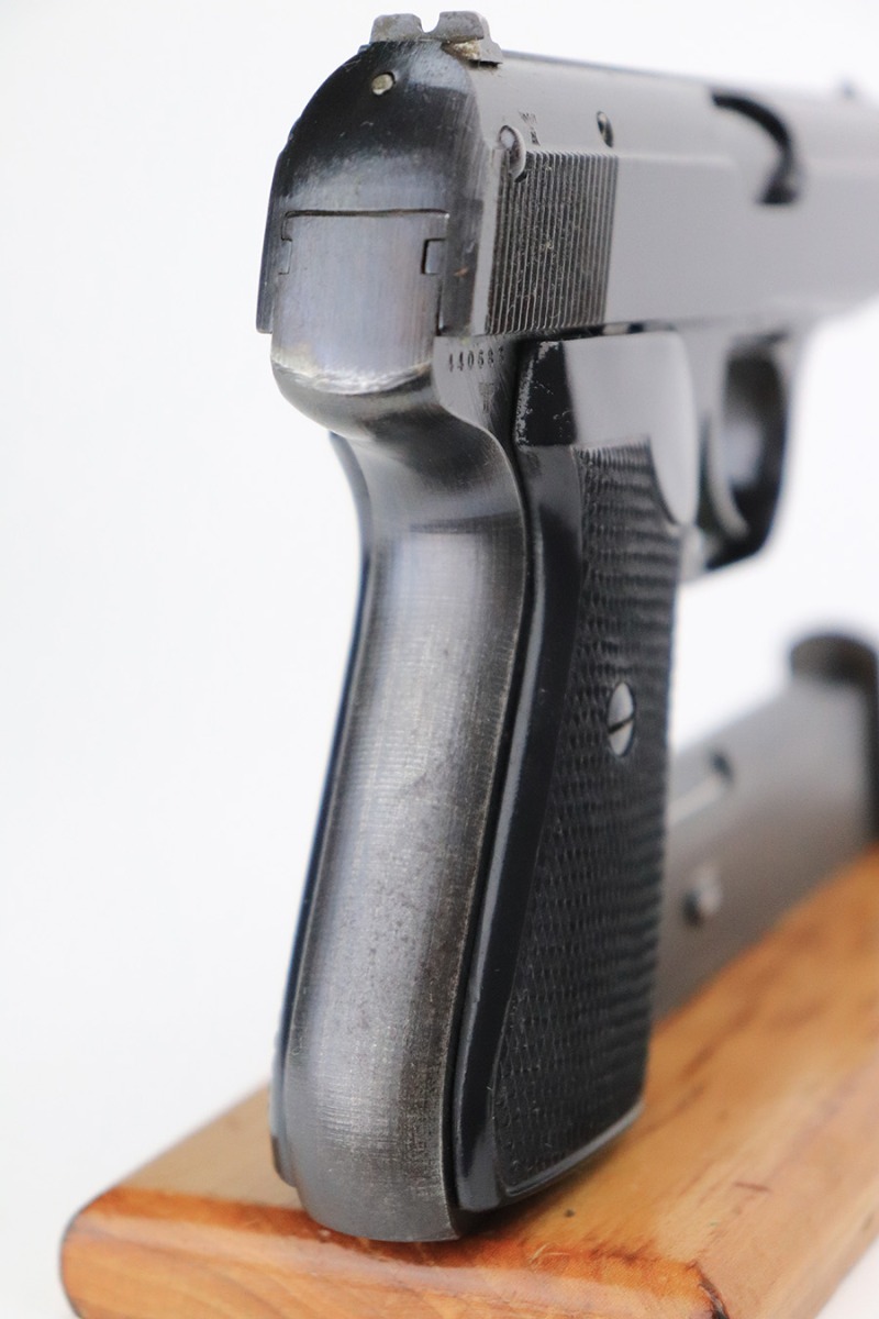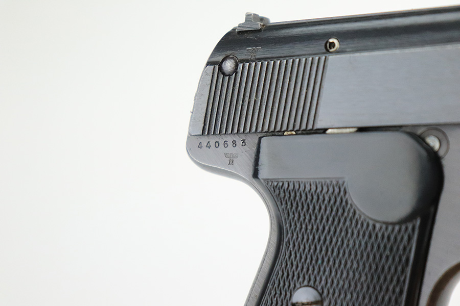 6/15/22 – This is an excellent example of a Sauer 38h issued to the Nazi military during WW2. It is all matching and has the proper “Eagle 37” military proof on the left side of the trigger guard. It comes as a rig with a generic leather holster and one period-correct magazine. It has retained about 95-96% of its original wartime finish. There is just a hint of wear around the muzzle and minor thinning on the grip straps. Comes with excellent black bakelite grips. Mint bore.