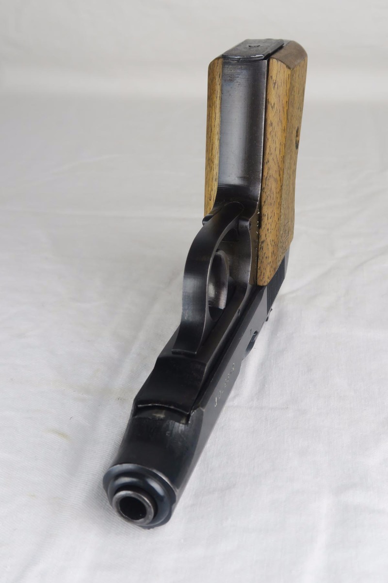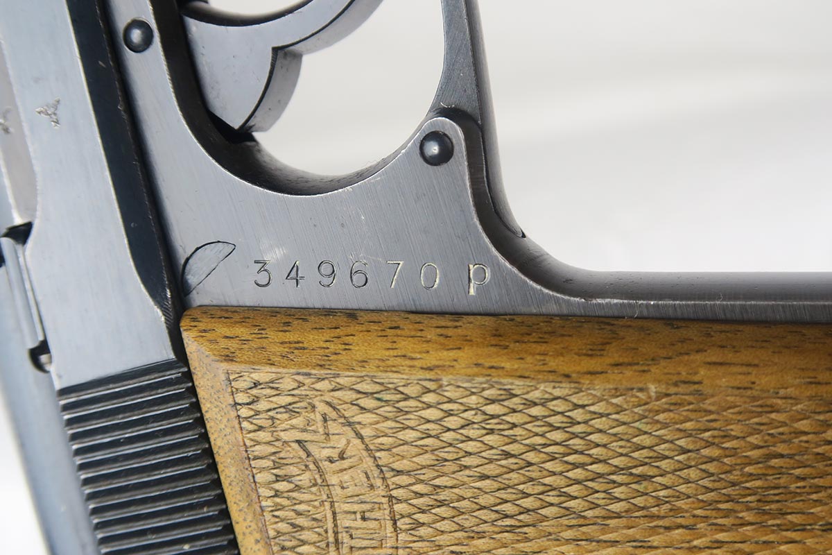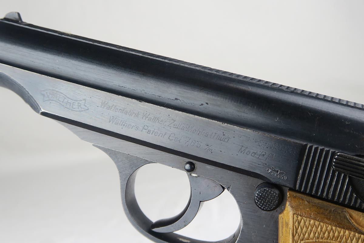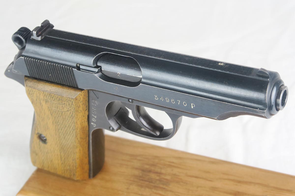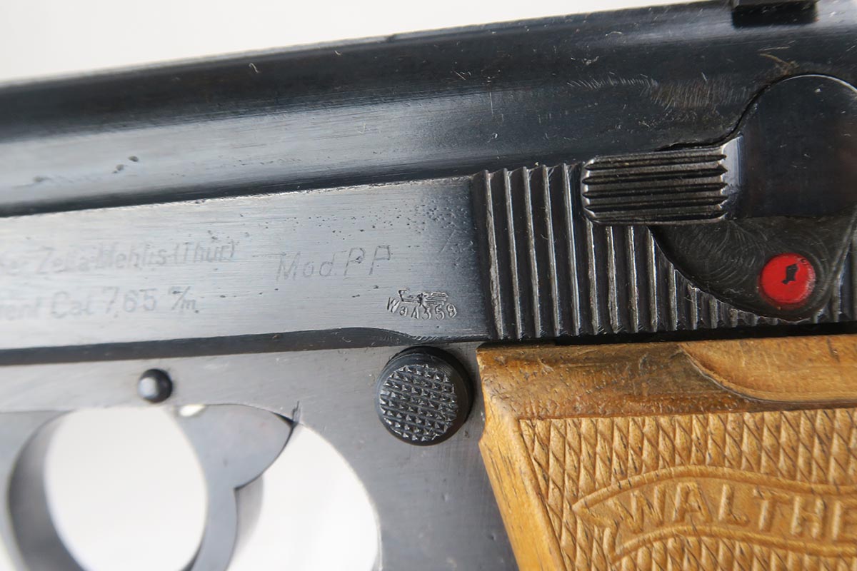 12/4/17 – This is a very nice Walther PP that was issued to the German Army in 1944.  It is WaA359 proofed on frame and slide with 97-98% original blue remaining.  There’s only minor muzzle wear and thinning of the straps, but overall an excellent piece.  Late-war wood grips with no chips or cracks and an excellent magazine.  Bore is shiny with only minor signs of use.