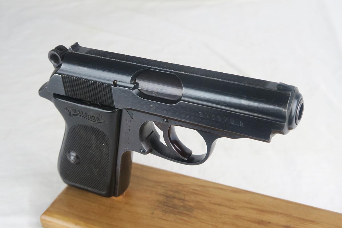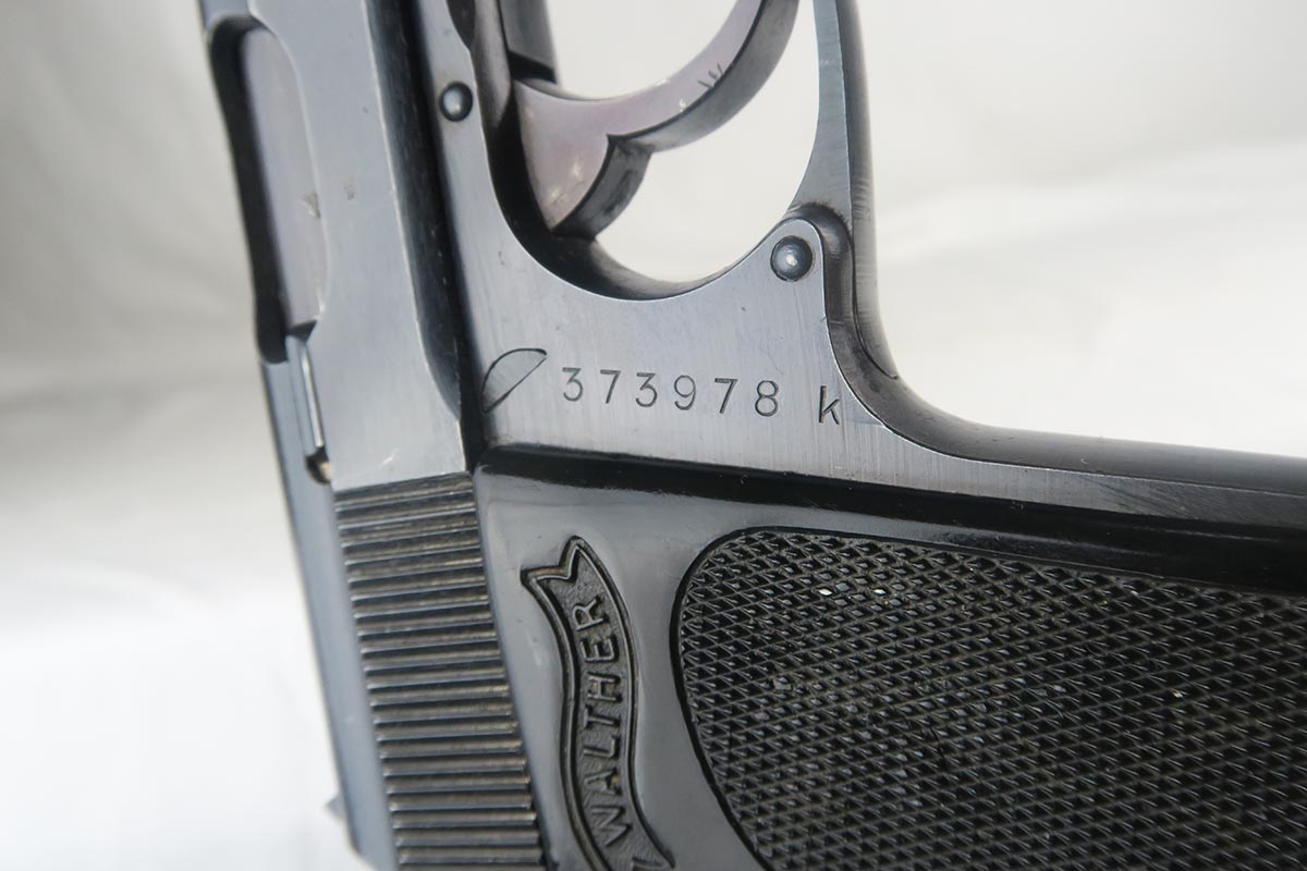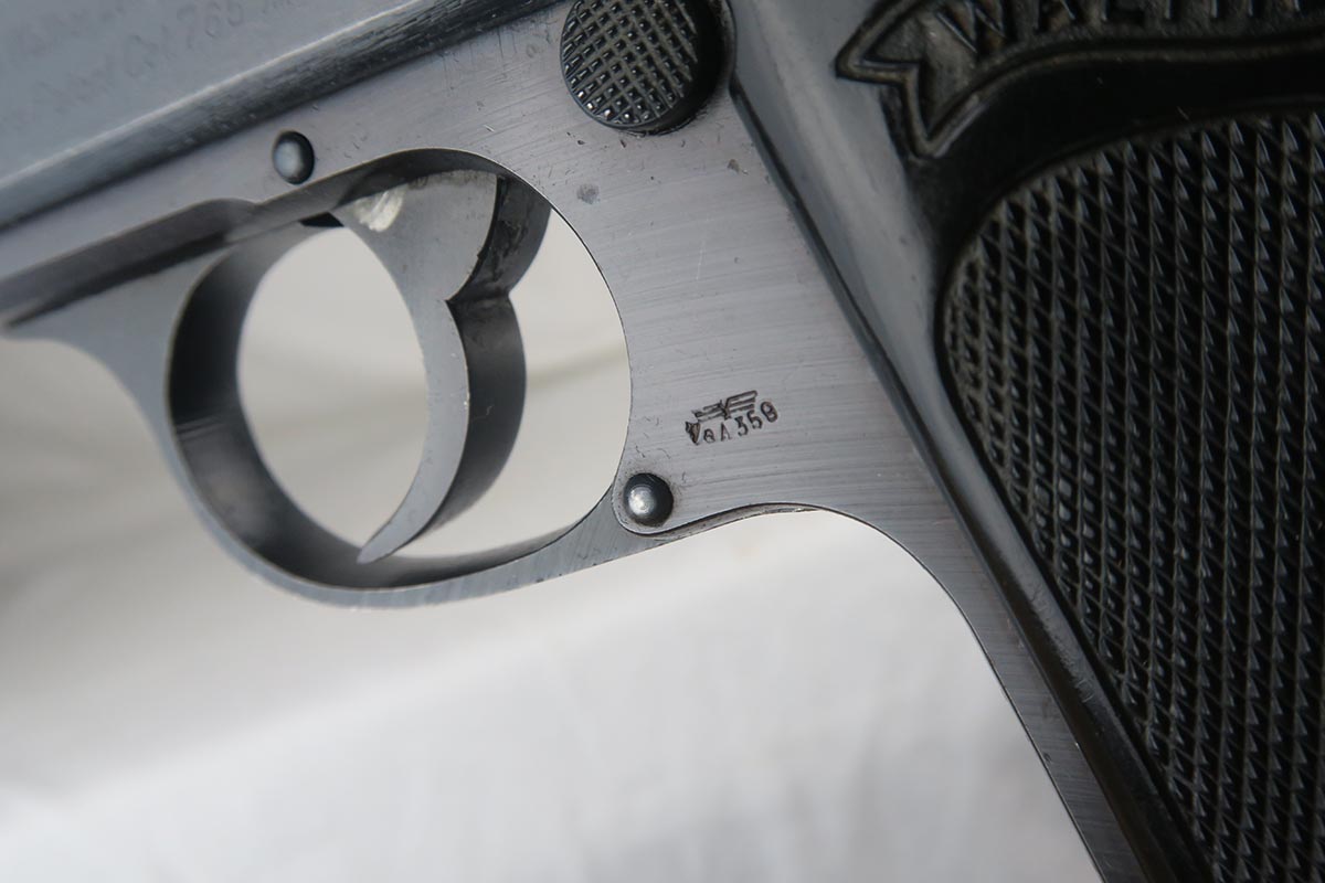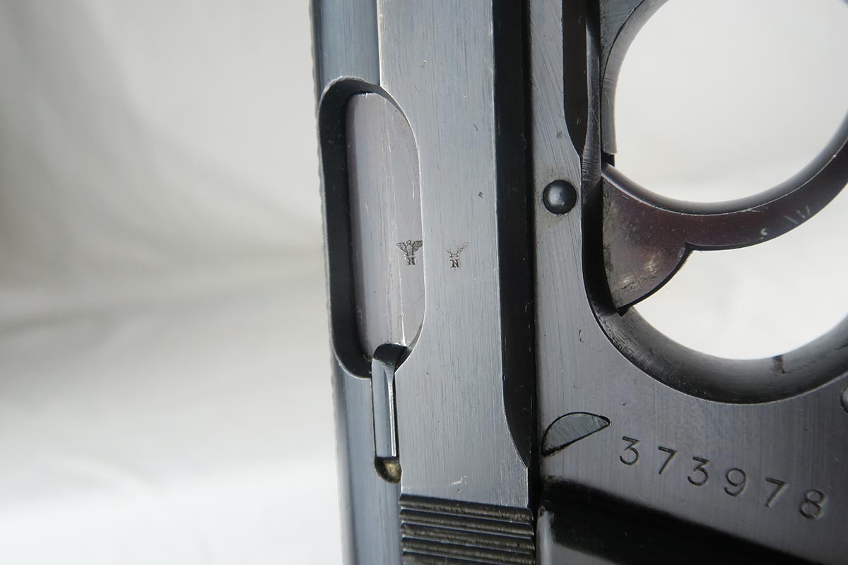 11/24/17 – This is a very nice, all original Walther PPK that was issued to the German Army during World War II. All matching and correct, the military blue rates at about 97%. There is muzzle wear on both sides of the slide and a spot of finish loss on the front strap. This is a third variation army PPK, with WaA359 proof on frame and slide. There were only 12,500 of this variation produced. Black grip is in excellent shape aside from the common stress crack on the spine. Wartime magazine. Minty bore.