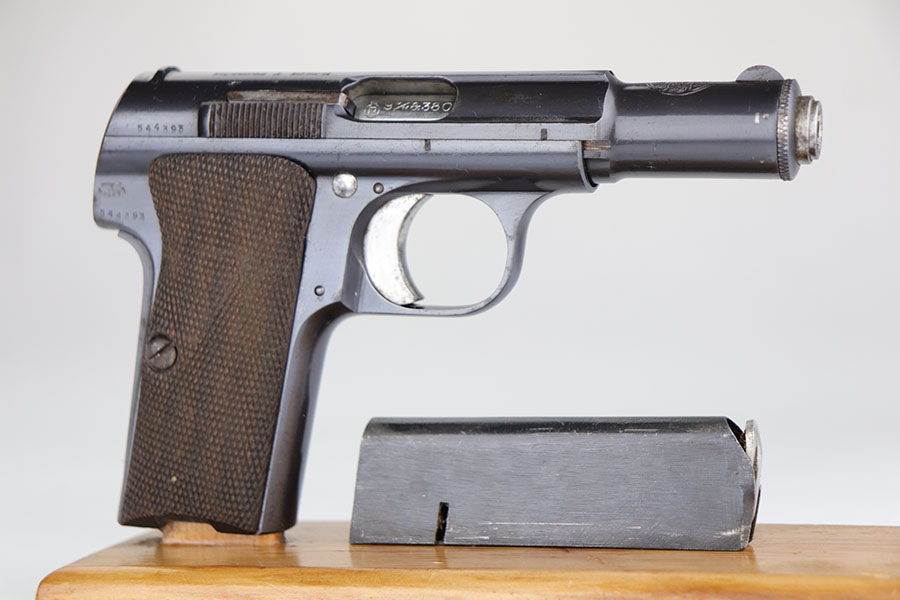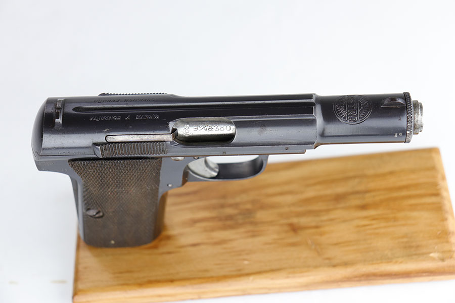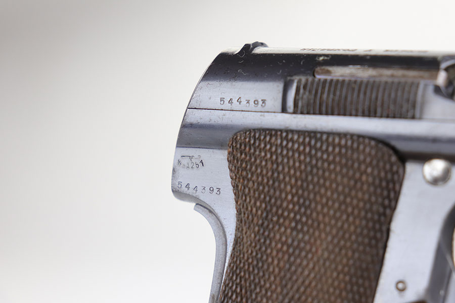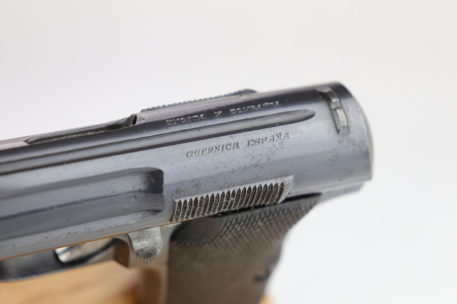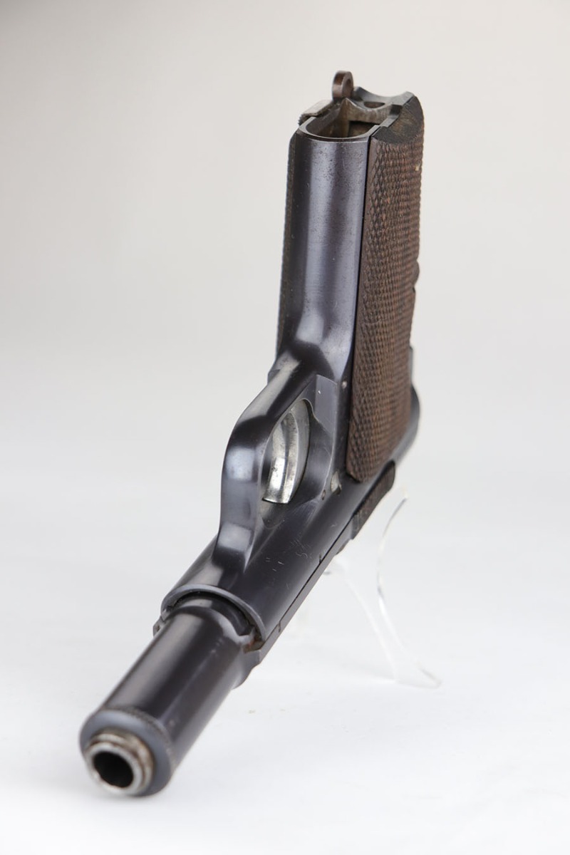 4/18/20 – This is an excellent Astra 300 that was delivered on June 12th of 1942 as part of the first Nazi contract order for these pistols. The original blue rates at 98% with just a tiny spot of finish loss in a couple areas on the forward end of the barrel. There is also some oxidation on the front strap and rear of frame/slide. Excellent bore and grips. Original magazine.