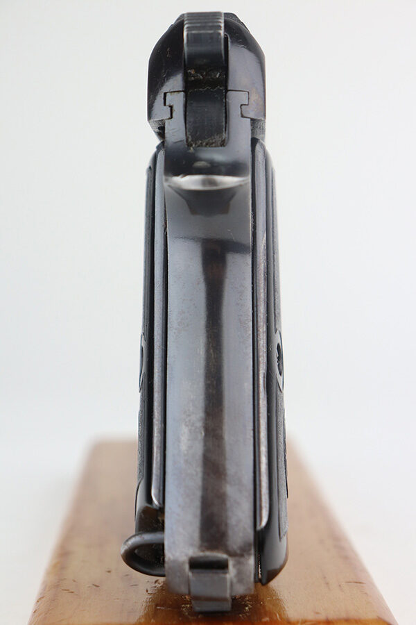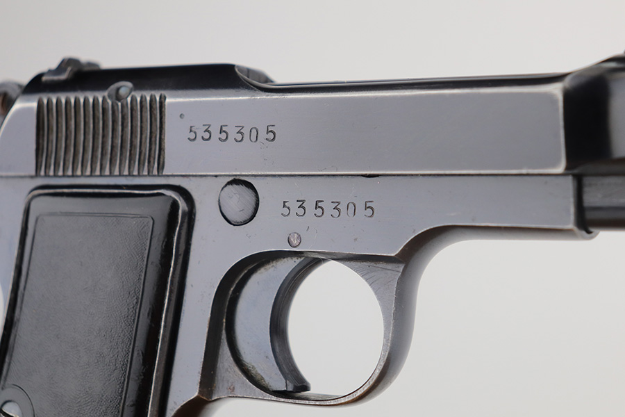 6/3/21 – This is an excellent example of a Beretta Model 1935 issued to the Nazi military during WW2. The gun is all matching and has the proper “4UT” proof. It has retained about 95-96% of its original high polish finish. Some minor scratchy wear and small handling marks on the straps. Very minor wear on the high edges of the slide and around the muzzle. Excellent grips. Minty bore.