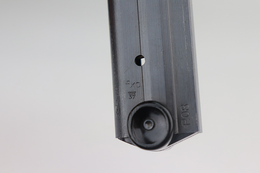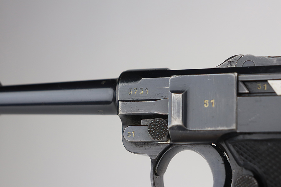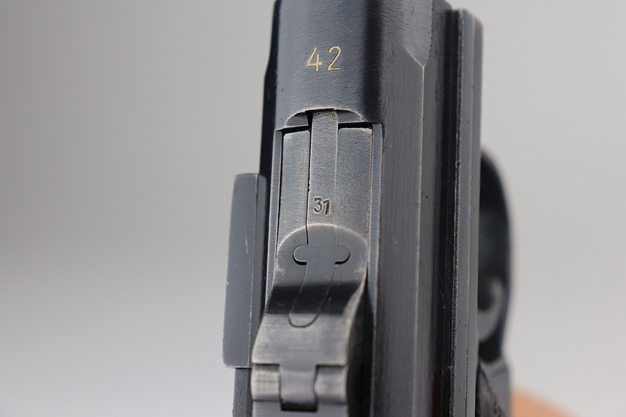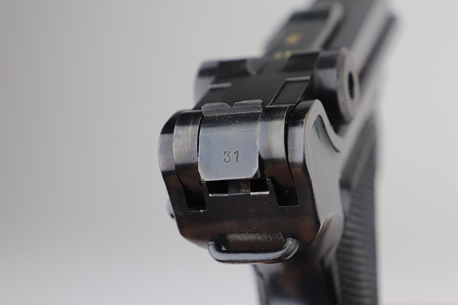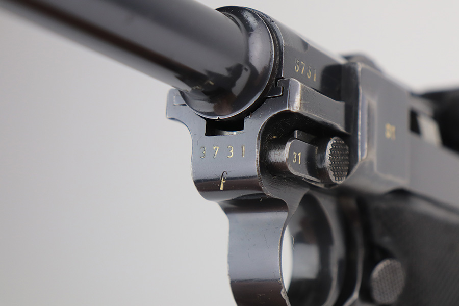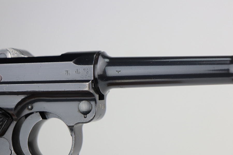 6/3/21 – This is an excellent example of a Mauser “Black Widow” Luger issued to the Nazi military in 1942. The gun is all matching and has the proper “Eagle 135” military proofs. It has retained about 96-97% of its original bluing. There is minor wear on the side plate, side rails, and around the muzzle. Tiny handling marks here and there on the straps. Comes with very nice original black widow grips – just a few minor dings here and there. Also comes with a proper black widow magazine – one very small chip in the mag bottom. Mint bore.