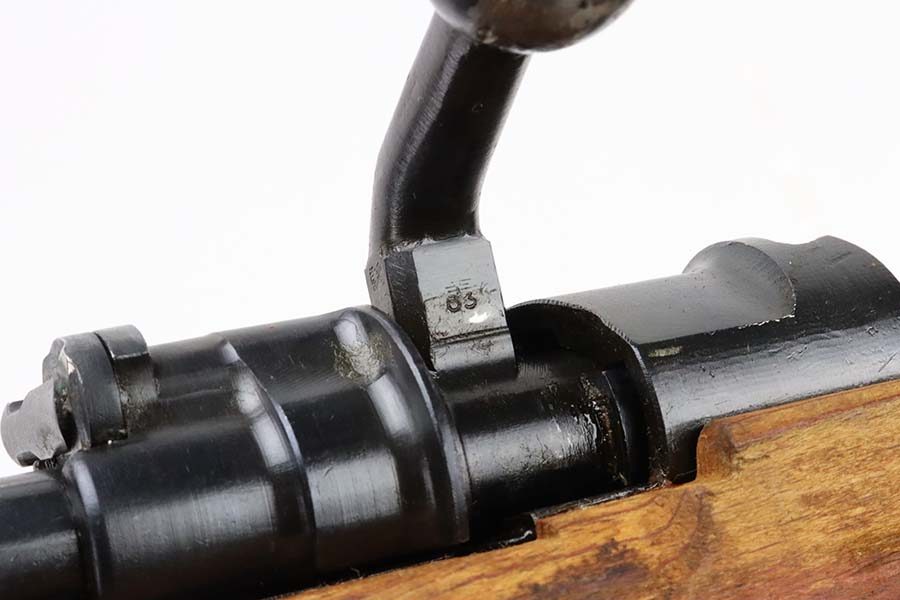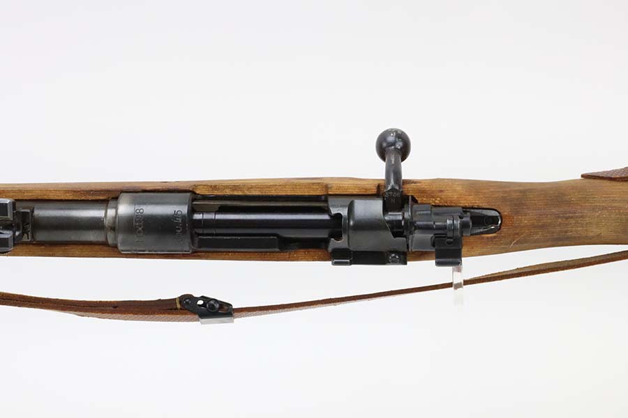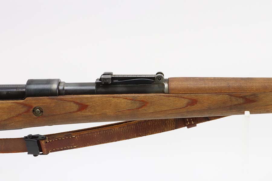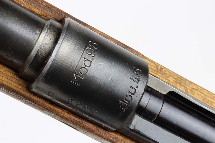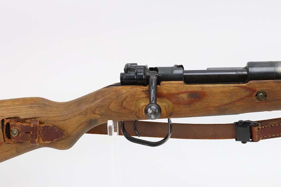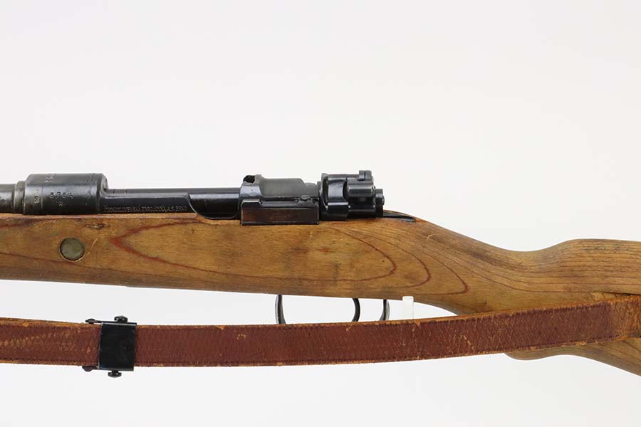 3/27/24 – This an excellent example of a K98 rifle put together at the Czech BRNO factory immediately after WW2 using leftover Nazi parts. In this case, the receiver reads “dou 45”, indicating it was manufactured at the Waffenwerke Brunn factory in 1945. The receiver is marked with the proper Czech Lion proofs. There is one waffen Nazi military acceptance proof on the bolt release. All numbered parts are matching. The finish rates about 95% with minor muzzle wear and a couple of small areas of minor thinning on the receiver. Excellent wood furniture. Stone-mint bore. Comes with a leather sling.