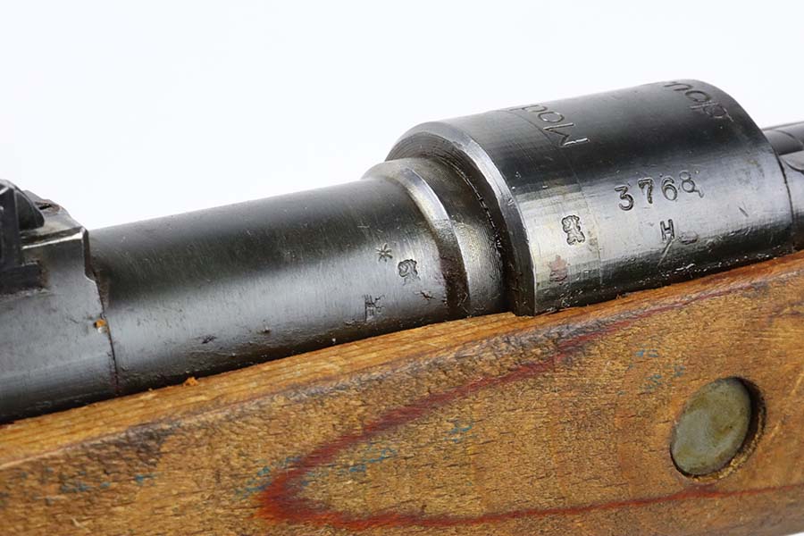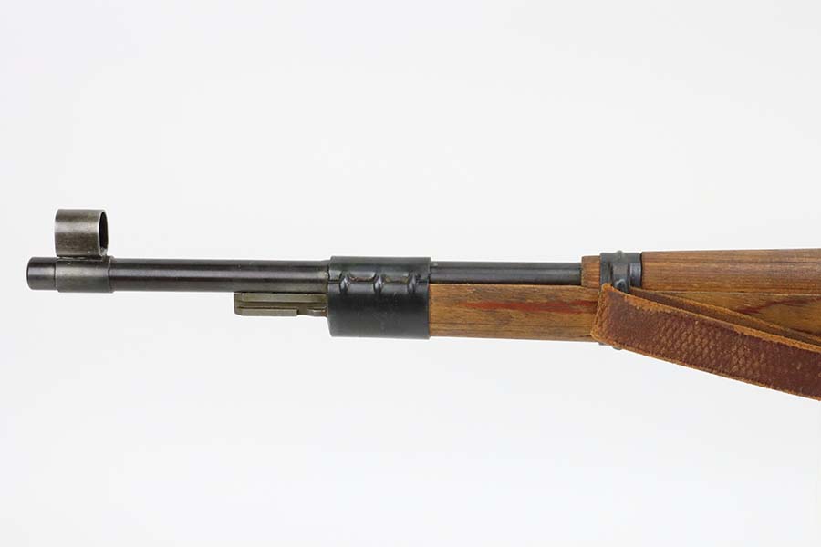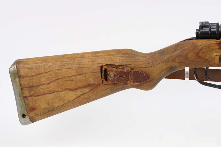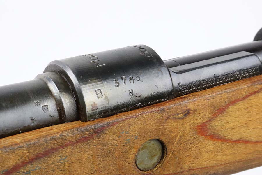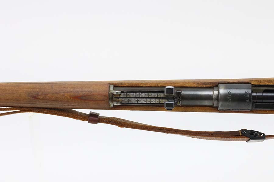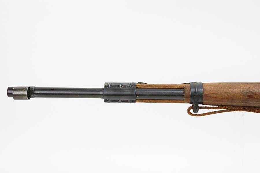 3/27/24 – This an excellent example of a K98 rifle put together at the Czech BRNO factory immediately after WW2 using leftover Nazi parts. In this case, the receiver reads “dou 45”, indicating it was manufactured at the Waffenwerke Brunn factory in 1945. The receiver is marked with the proper Czech Lion proofs. There is one waffen Nazi military acceptance proof on the bolt release. All numbered parts are matching. The finish rates about 95% with minor muzzle wear and a couple of small areas of minor thinning on the receiver. Excellent wood furniture. Stone-mint bore. Comes with a leather sling.