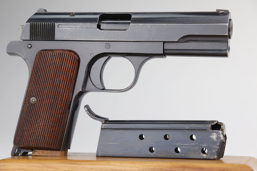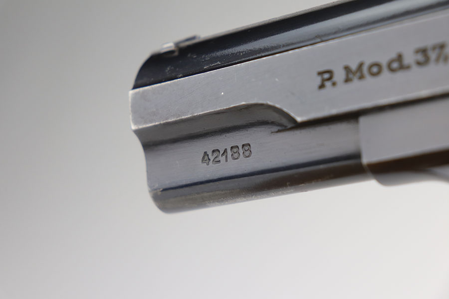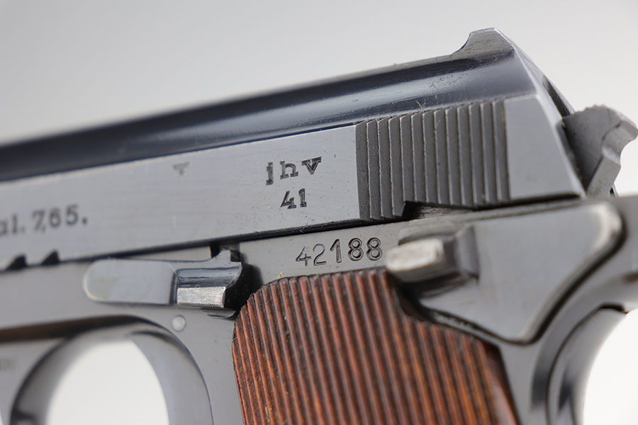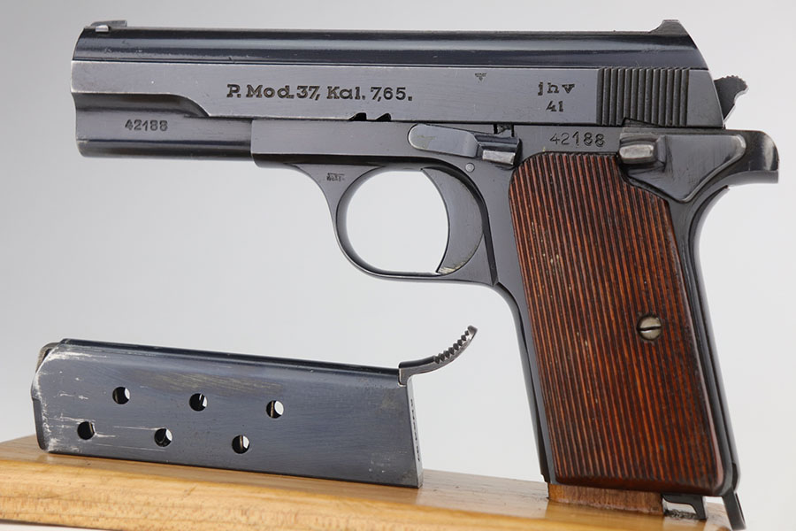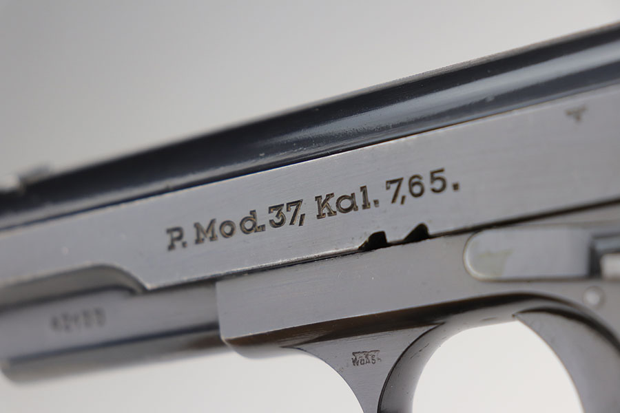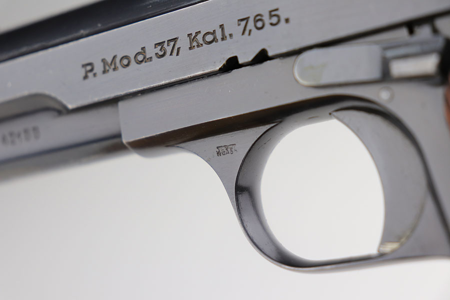 2/3/21 – This is an excellent example of a Femaru M37 issued to the Nazi Luftwaffe in 1941. It is all matching and has the proper waffen proof on the left side of the frame. It has retained about 97% of its original high-polish bluing. There are areas of minor wear around the muzzle, on the underside of the slide, and under the tang. There is also some freckling under the tang. It comes with excellent grips and a non-matching period-correct magazine. The bore is excellent – shiny with strong rifling.