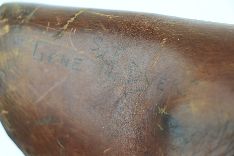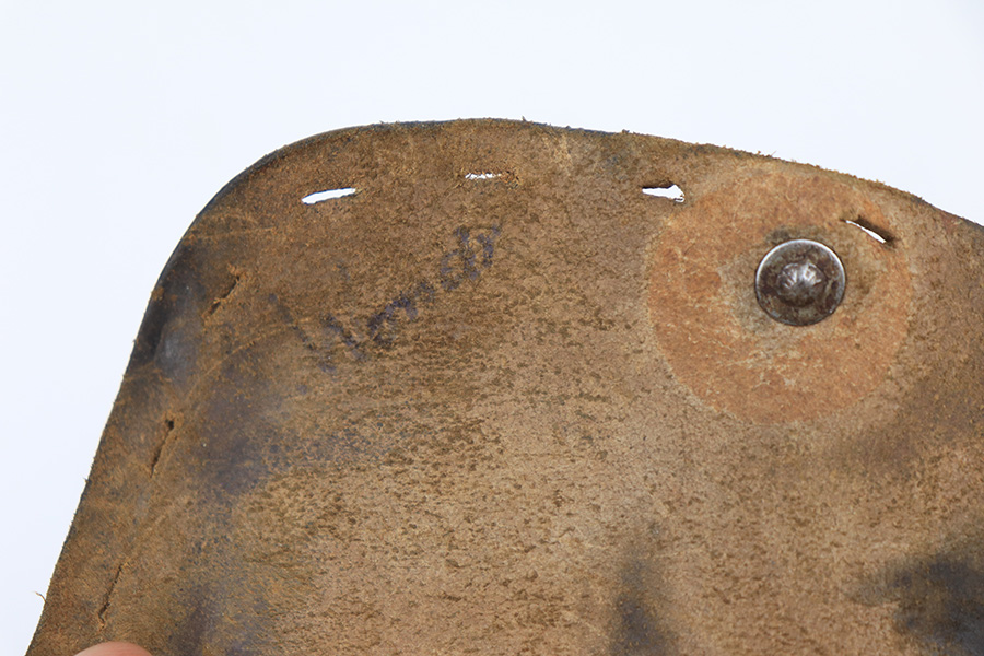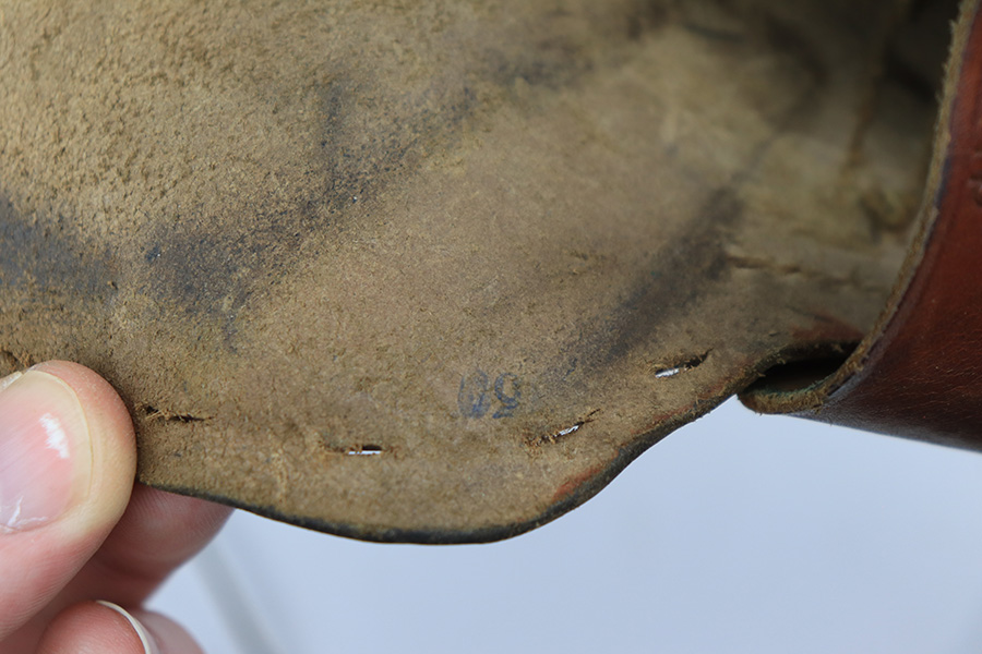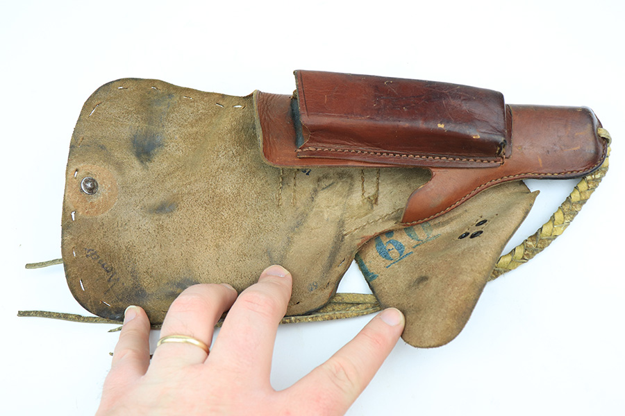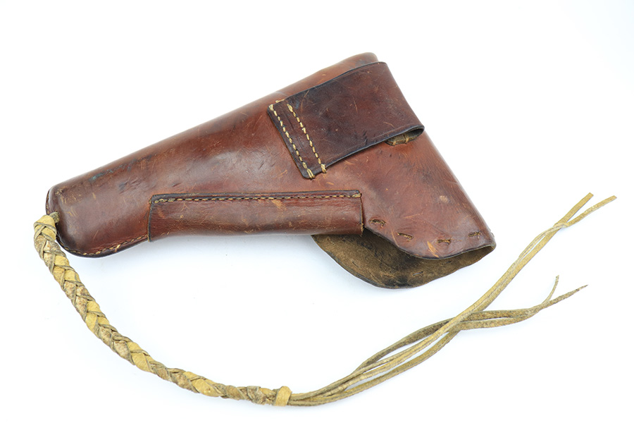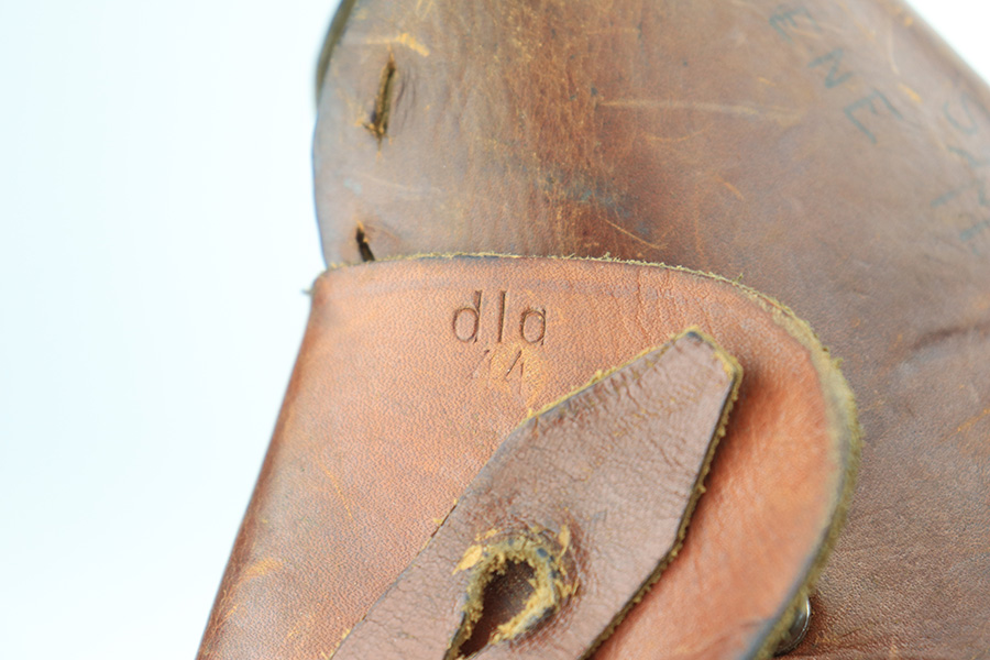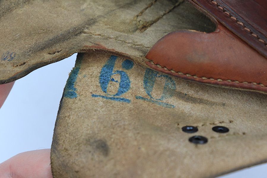3/16/22 – This is an excellent example of a FN Browning Hi Power issued to the Nazi military during WW2. The gun is all matching and has the proper “Waffen 140” Nazi military acceptance proofs throughout. The gun comes as a rig with a period-correct unmarked magazine and a modified 1944-dated leather holster. The holster has slits cut into it along the top flap, a reinforced closure strap, and an added lanyard. There is a name “Sgt. Gene M Dyer” written on the top flap. The gun has retained about 95-96% of its original finish. Most of the finish loss comes in the form of spotty discoloration along the high edges of both sides of the slide and around the very front edge of the frame. There is a light streak of wear on the front strap and some very minor freckling on both grip straps. Comes with excellent period-correct bakelite grips. Excellent, shiny bore with strong rifling.
