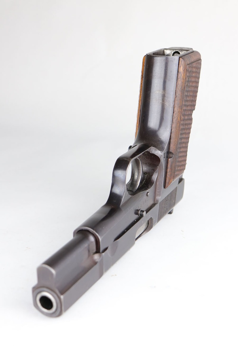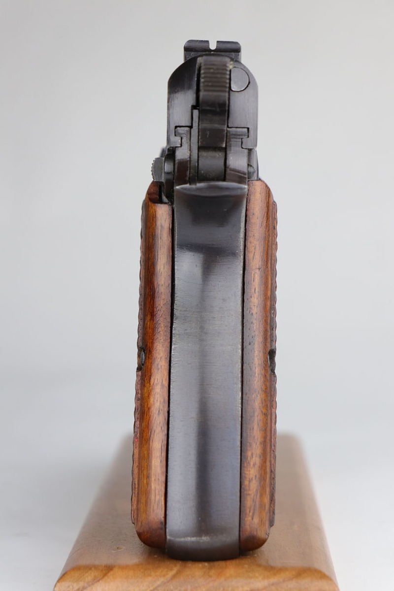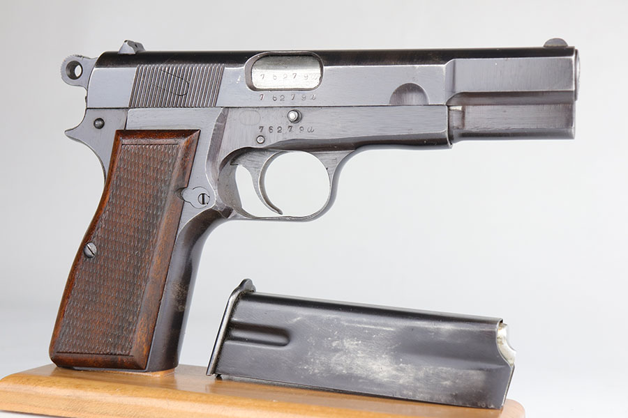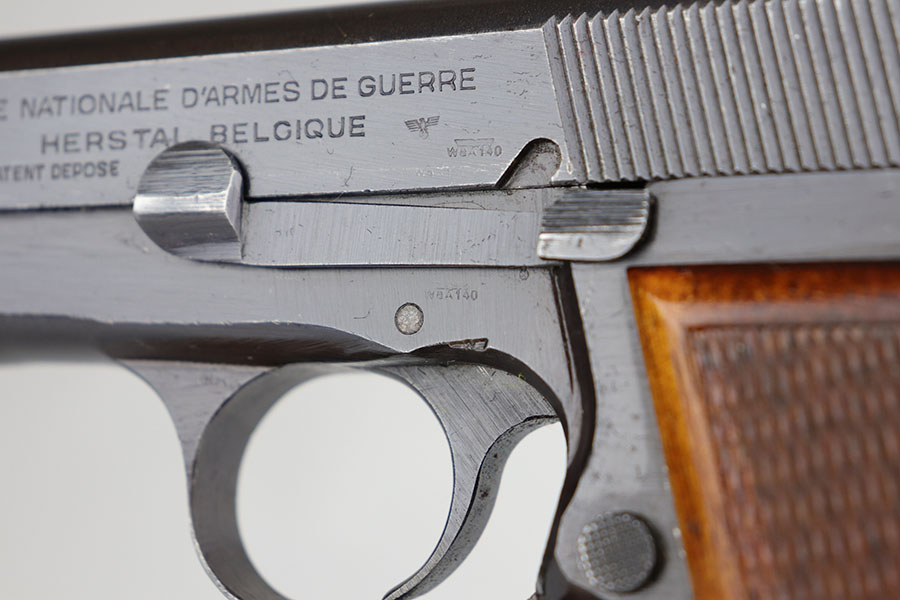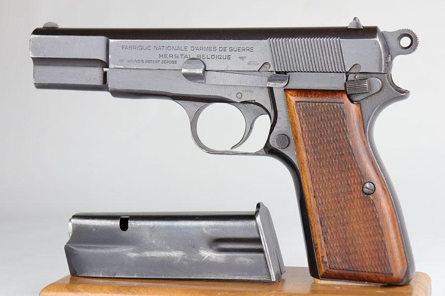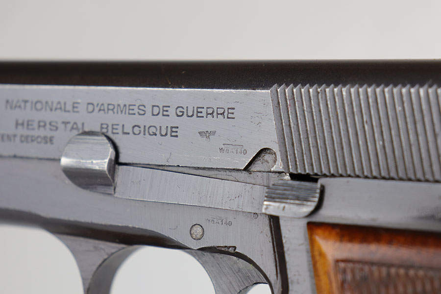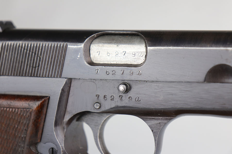 4/24/20 – This is a terrific FN Browning High Power issued to the German army. It has all matching numbers and 97-98% of the original blue. There’s a bit of high edge wear, and a bit of thinning on the front strap. WaA140 proofs on slide, frame and magazine. Excellent bore and grips.
