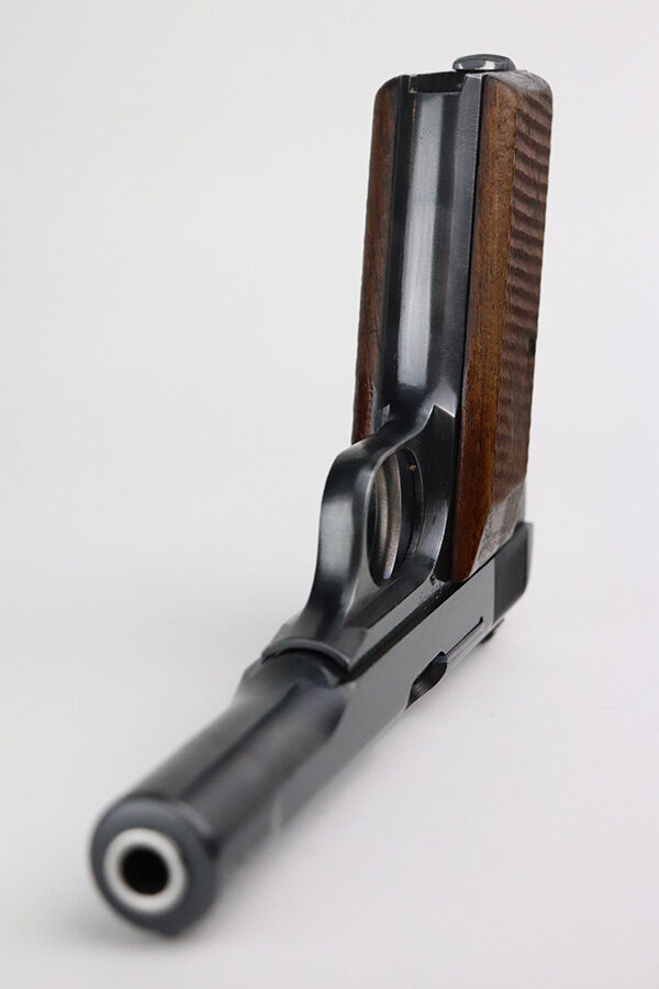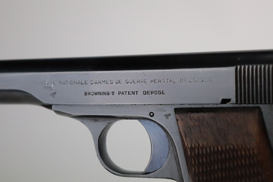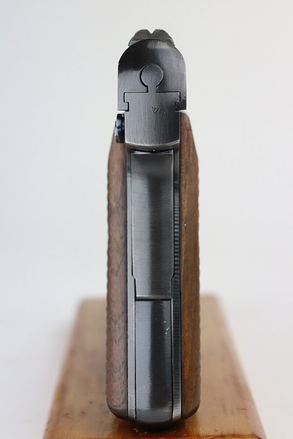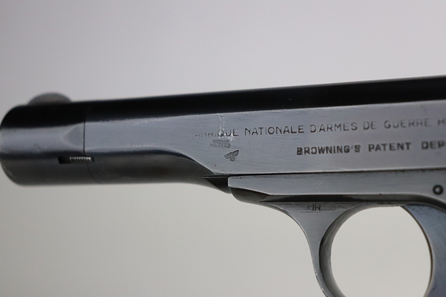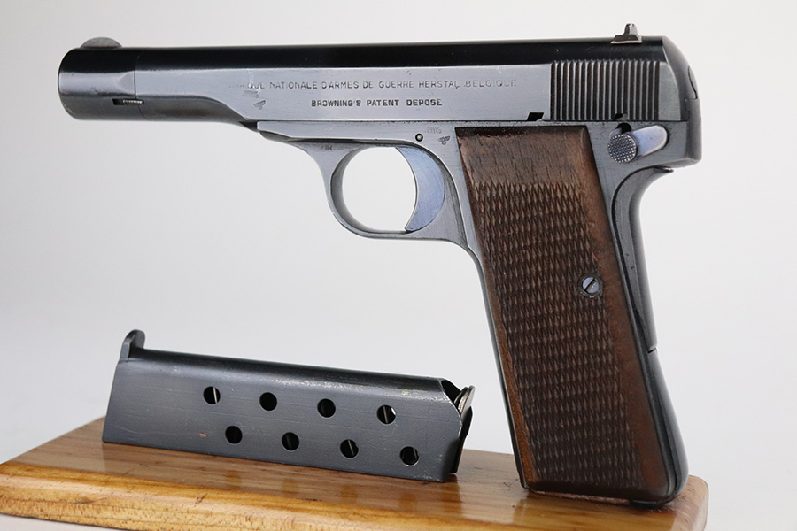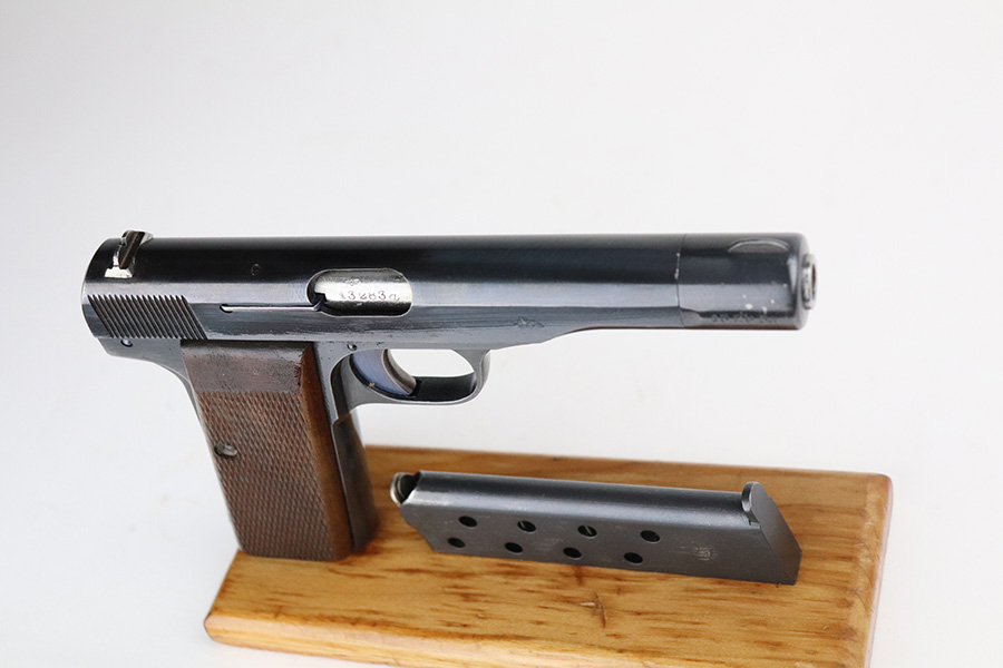 7/16/21 – This is an excellent example of an FN Browning Model 1922 issued to the Nazi military during WW2. It is all matching and has the proper “Waffen 140” military proofs. It has retained about 97-98% of its bluing. There is very minor wear around the high edges and minor thinning on the straps. There are a few dots of discoloration around the muzzle. Comes with excellent grips and a period-correct magazine. Mint bore.
