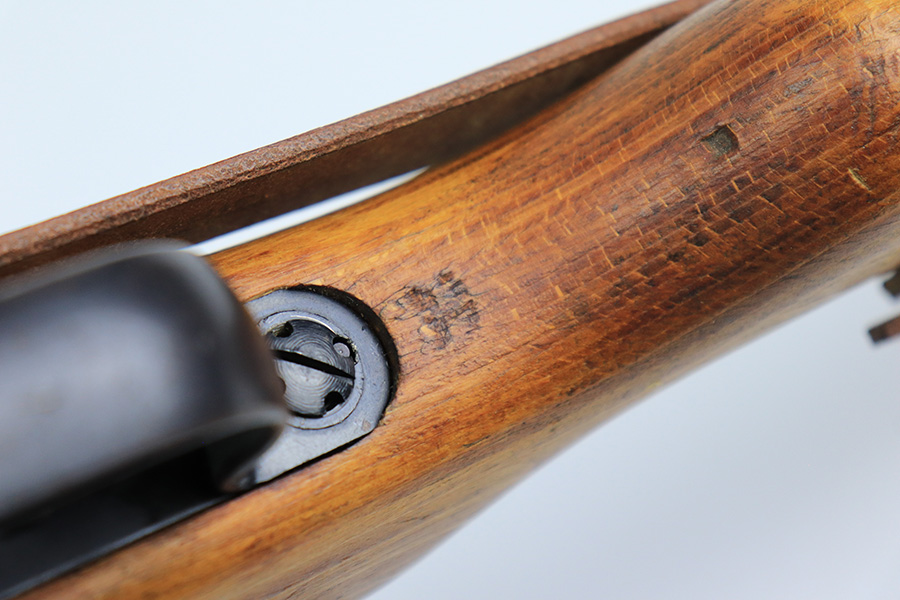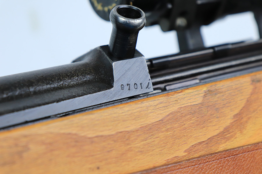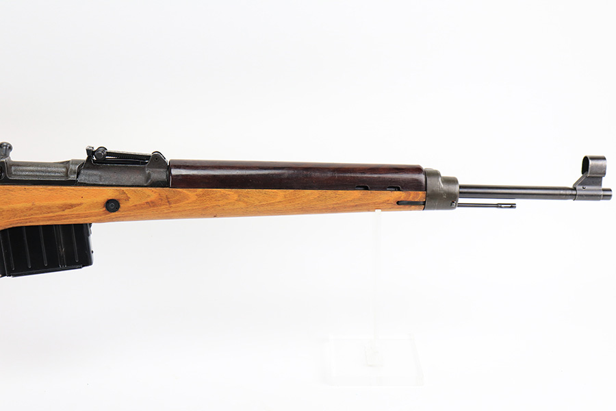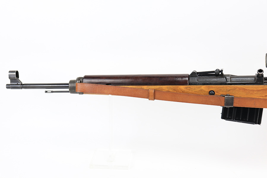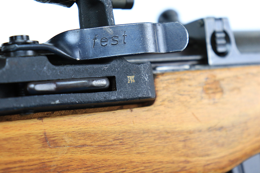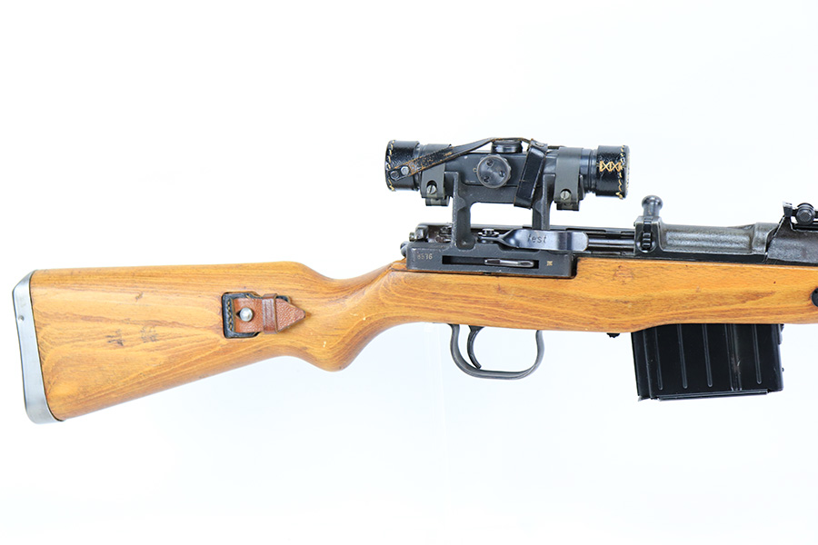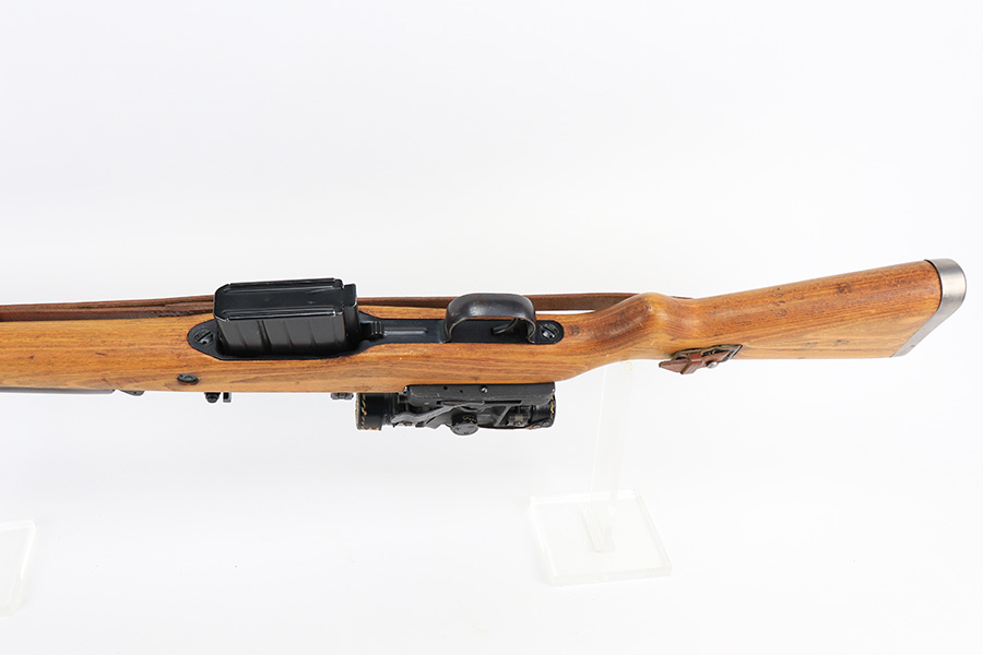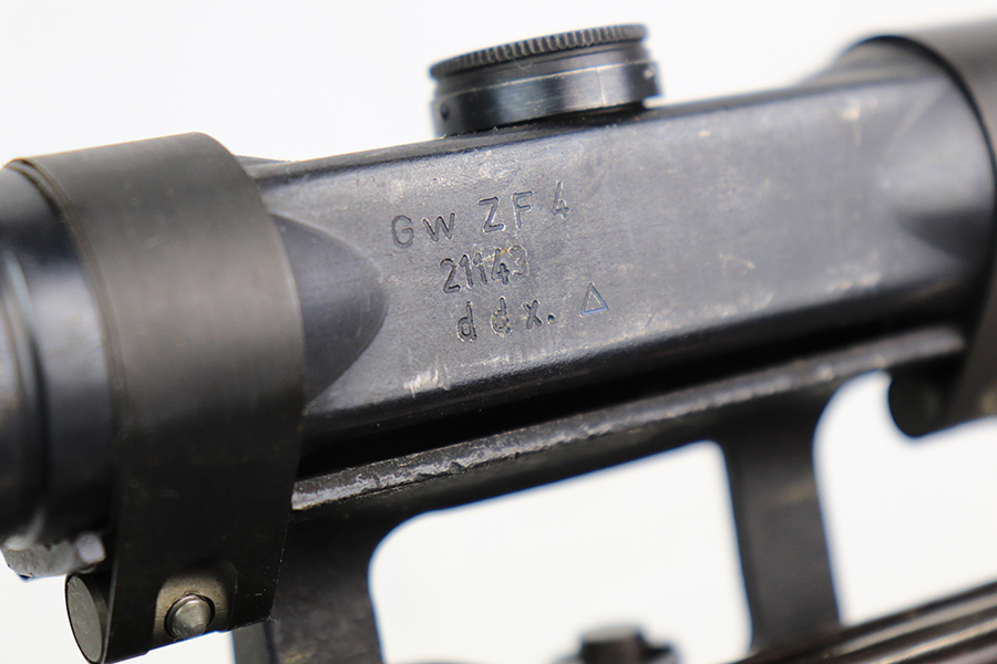 5/18/22 – This is a gorgeous Nazi K.43 sniper rifle that was made at the Berlin-Lubecker factory in 1944. It’s all matching and original, including the bolt, receiver, stock – all the way down to the extractor. Terrific finish on the metal throughout, just a little wear on the trigger guard. Excellent, shiny bore. The stock is minty with clear waffenamts and serial number. It comes with an original Zf4 scope with a fairly clear reticle but the sight picture is somewhat cloudy. The scope mount is likely a reproduction. Original magazine with ‘gcb’ maker mark but it has been repainted. Overall a terrific example of one of the most popular WW2 rifles.