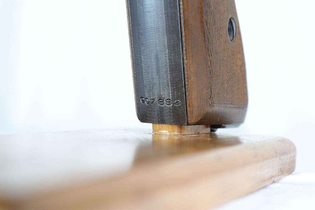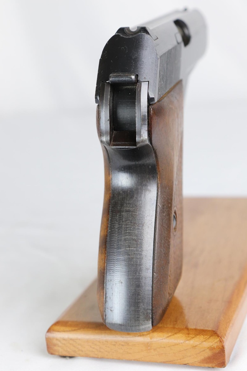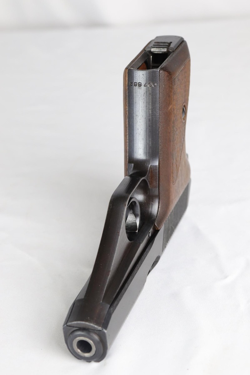 3/16/18 – This is an excellent Mauser HSc that was issued the German Army in 1944.  It has about 97% original military bluing remaining, with minor thinning on the straps.  Excellent bore and grips.  Half-moon magazine.
