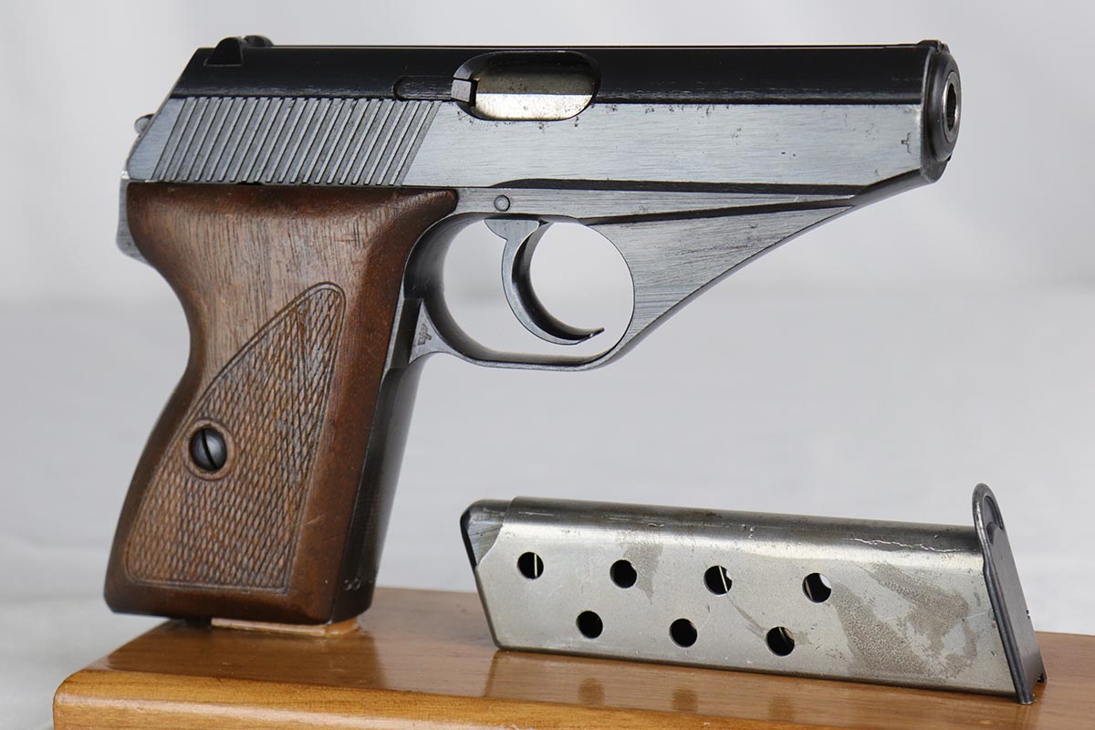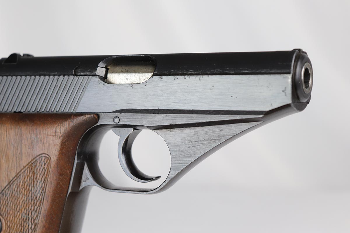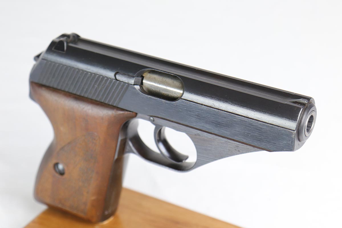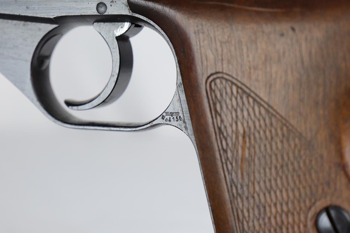 3/16/18 – This is an excellent Mauser HSc that was issued the German Army in 1944.  It has about 97% original military bluing remaining, with minor thinning on the straps.  Excellent bore and grips.  Half-moon magazine.