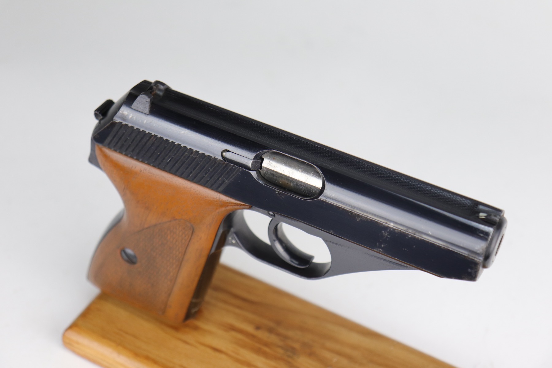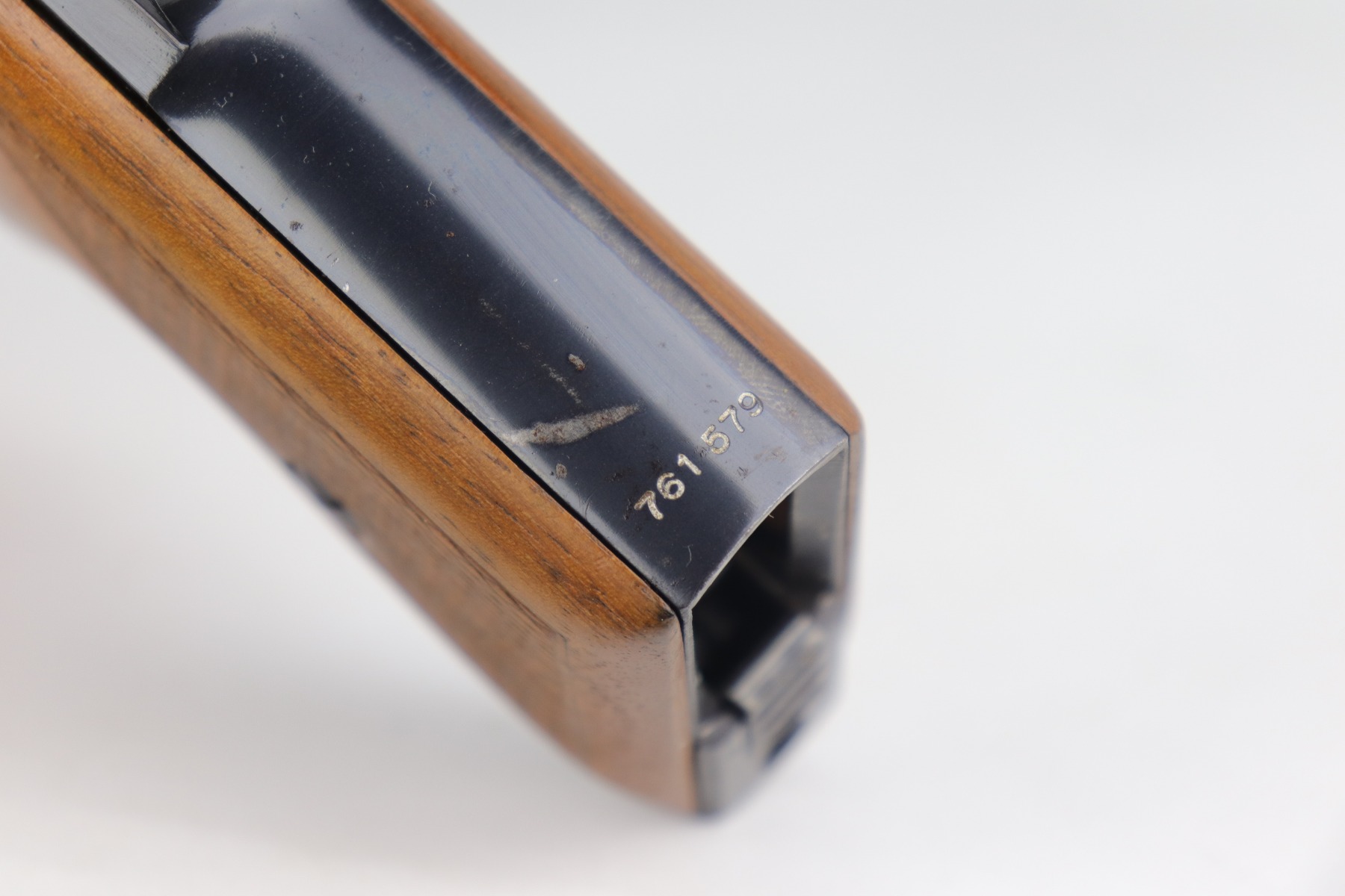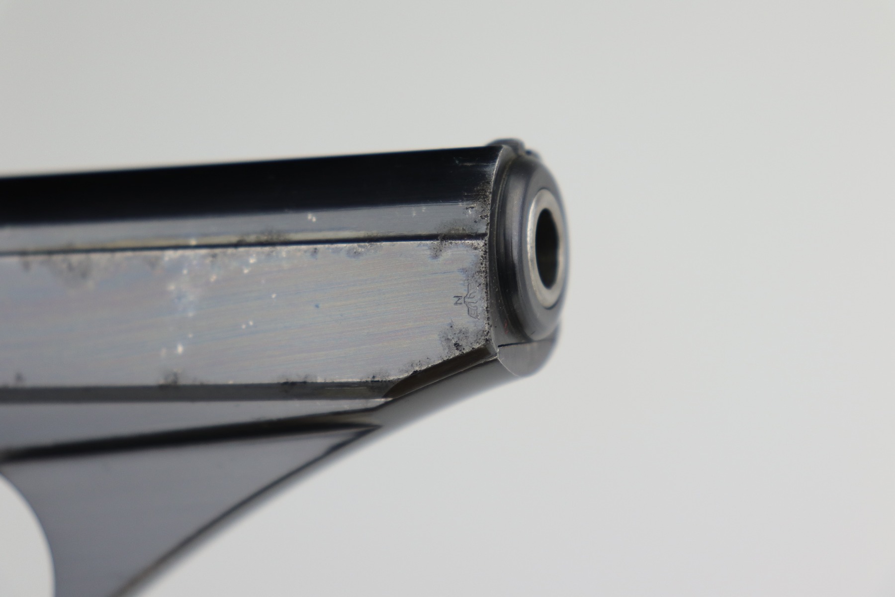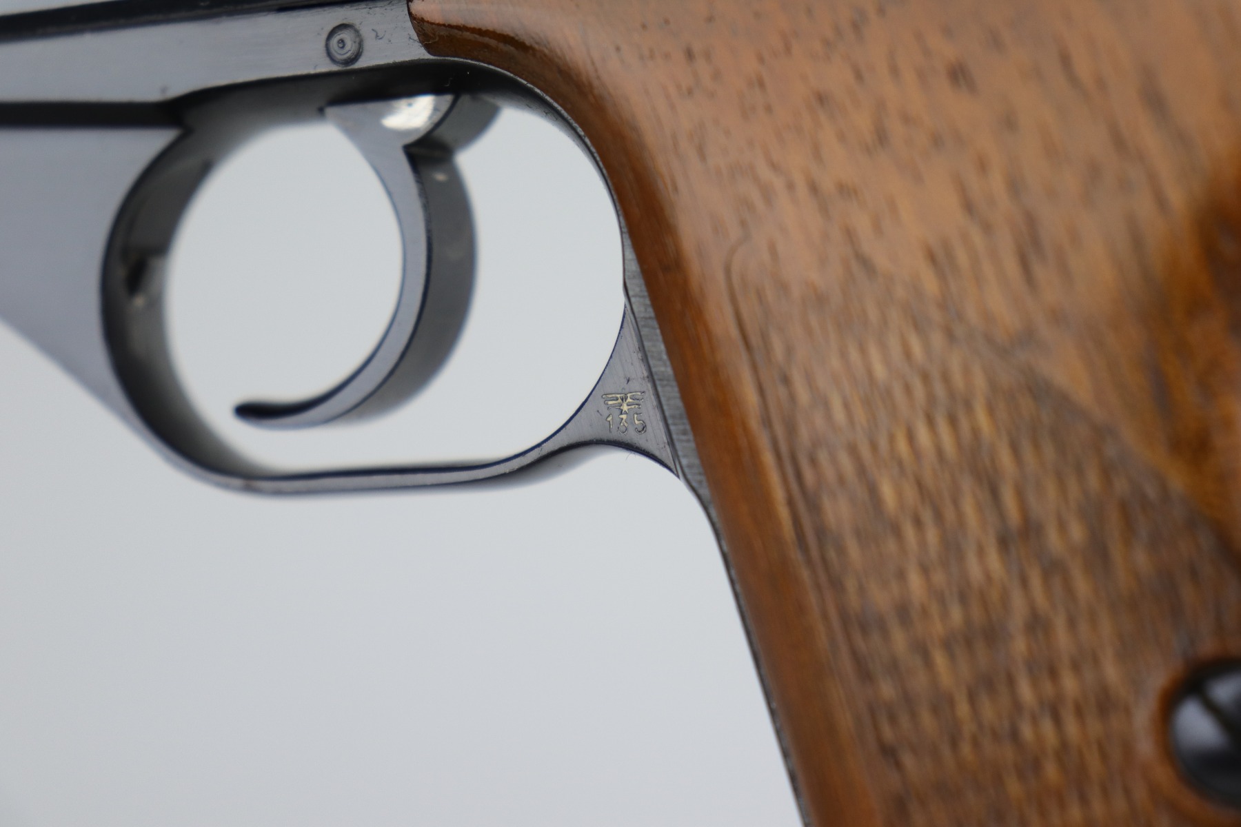 12/31/20 – This is an excellent example of a Mauser HSC issued to the Nazi military in 1942. It is matching and has the proper “Eagle 135” military proofs. It has retained about 95-96% of its original high polish blue. There is a spot of wear on the front strap, minor wear around the muzzle, and spotty discoloration on the right side of the slide. Spotty oxidation most noticeable around the muzzle and right side of the slide. It has excellent grips and one proper magazine. Excellent bore – shiny with strong rifling.