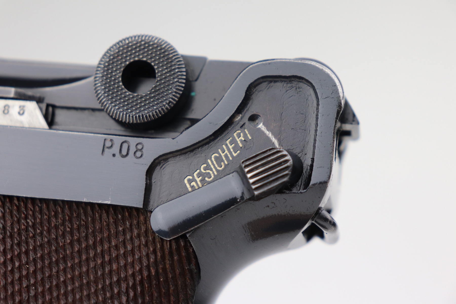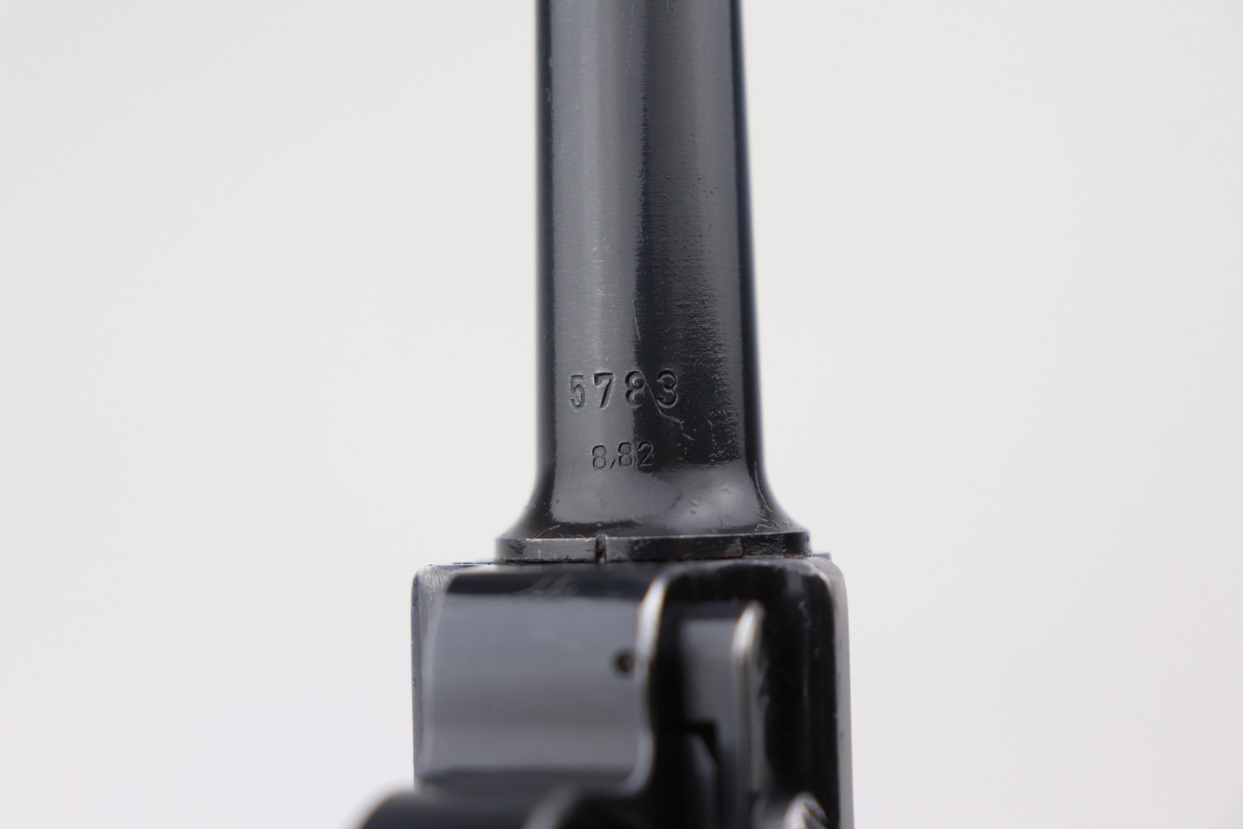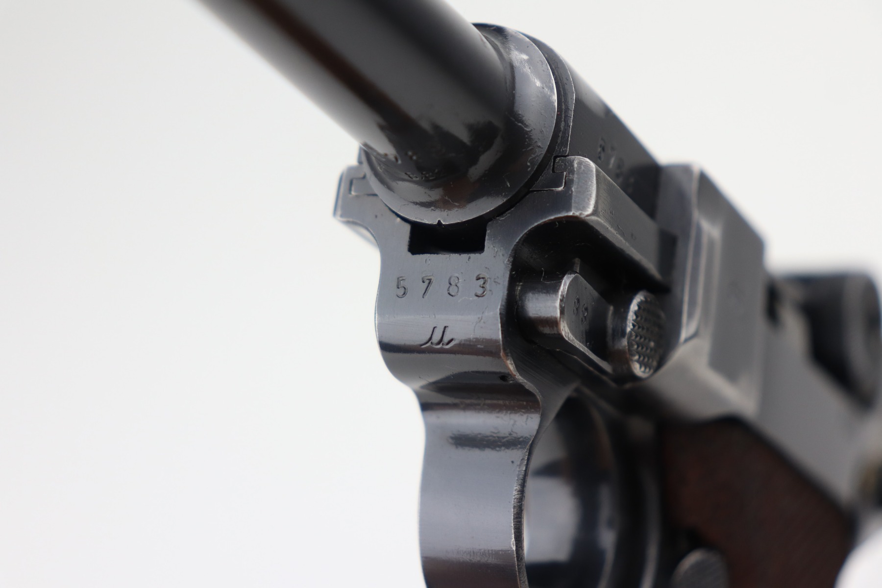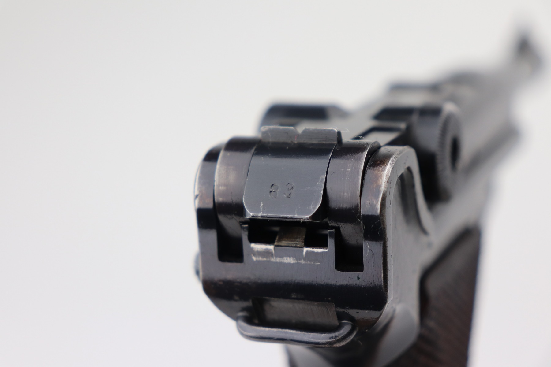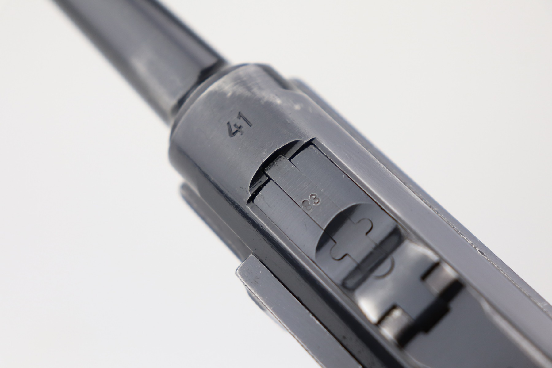 2/17/21 – This is an excellent example of a Mauser Luger P.08 issued to the Nazi military in 1941. This one is all matching and has the proper “Eagle 655” military proofs. It comes with a matching magazine. The “8” on the bottom of the magazine looks like it was double-stamped. The gun has retained about 94-95% of its original finish. There are areas of minor wear at the base of the front strap, on the side plate, around the muzzle, on the barrel, and high edges of the frame. Comes with original matching grips. The bore has great rifling but there is freckling throughout.