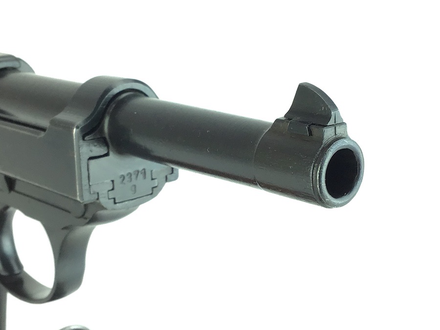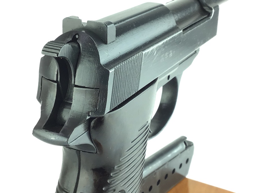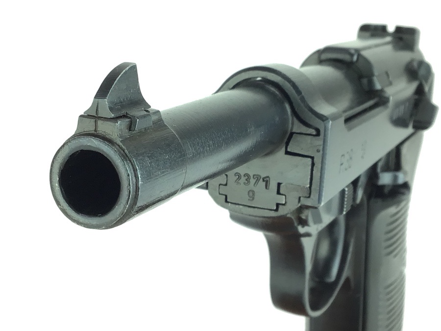 11/15/24 – This is an excellent example of a Mauser P.38 issued to the Nazi military in 1943. This one is all matching and has the proper “Eagle 135” Nazi military acceptance proofs. The barrel and frame appear to have been either dipped or refinished sometime in the past. The slide appears to have an original finish and has rates about 98% with just minor high edge wear and thinning. Excellent grips and one period-correct magazine with a waffen 135 stamp on the spine. The bore is minty. De-cocker is fully functional. Tiny import mark on the magazine well.