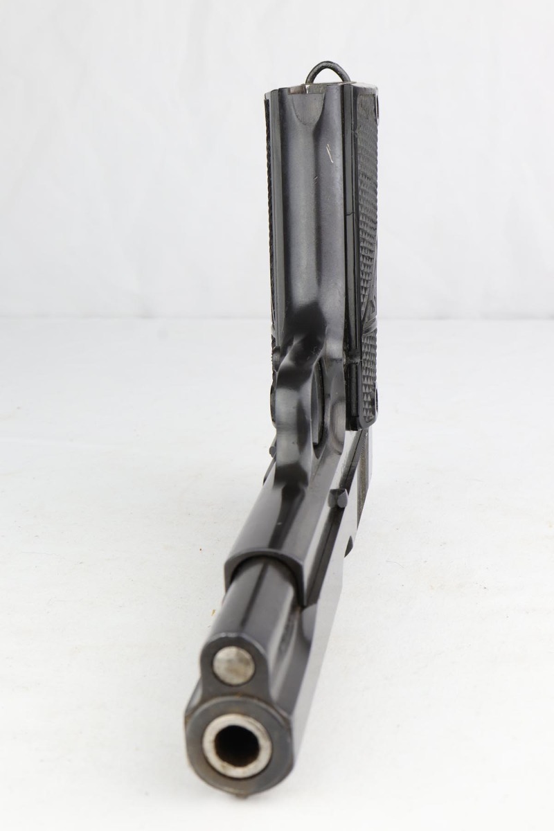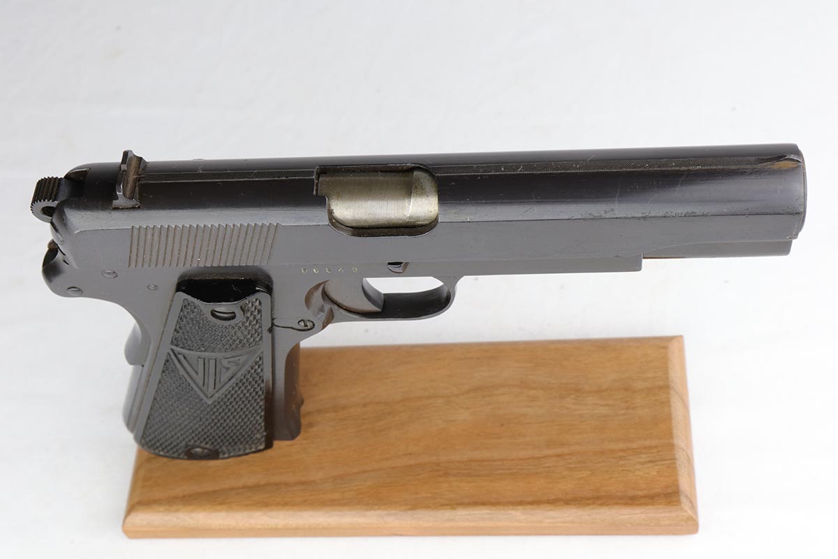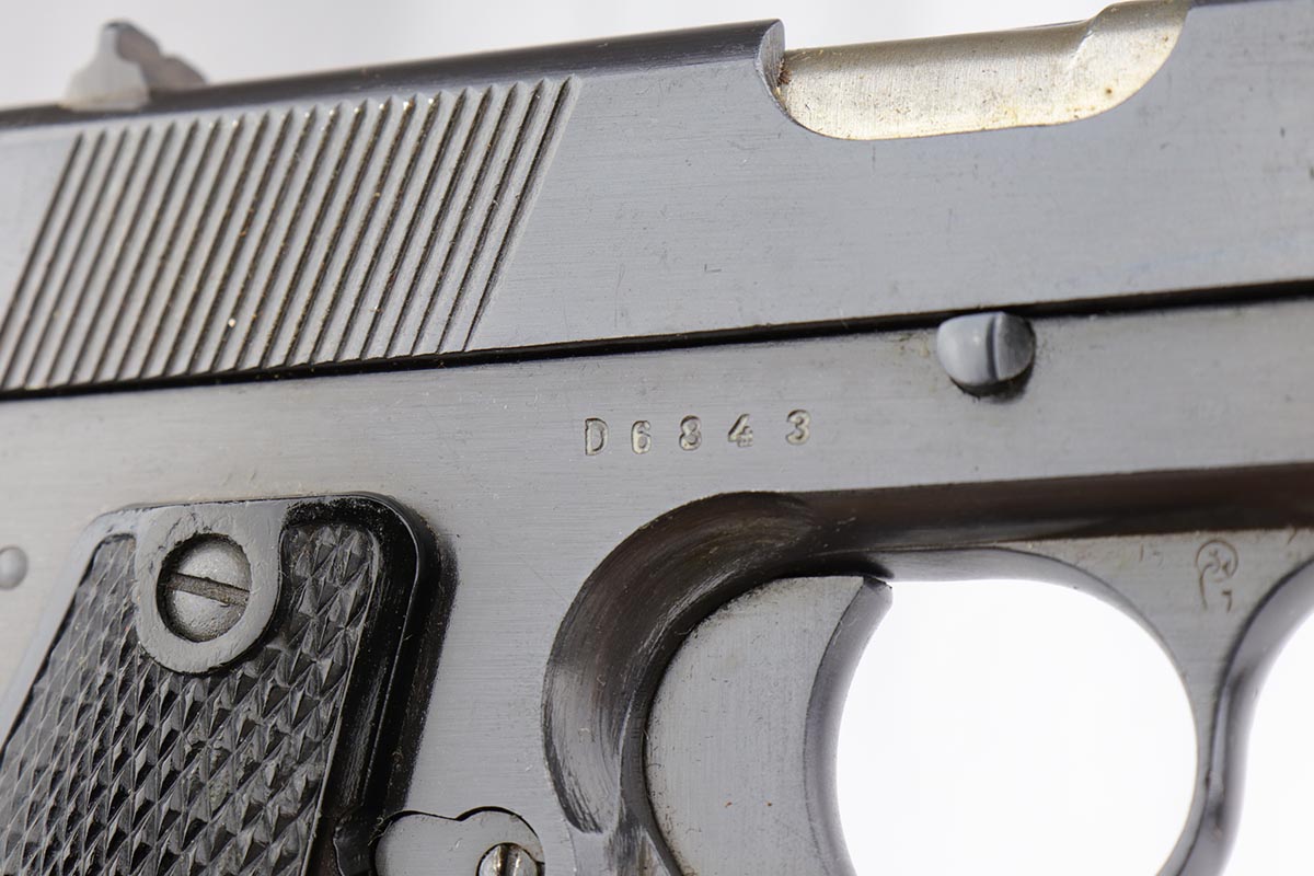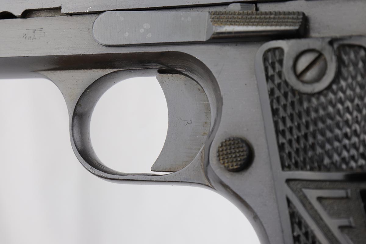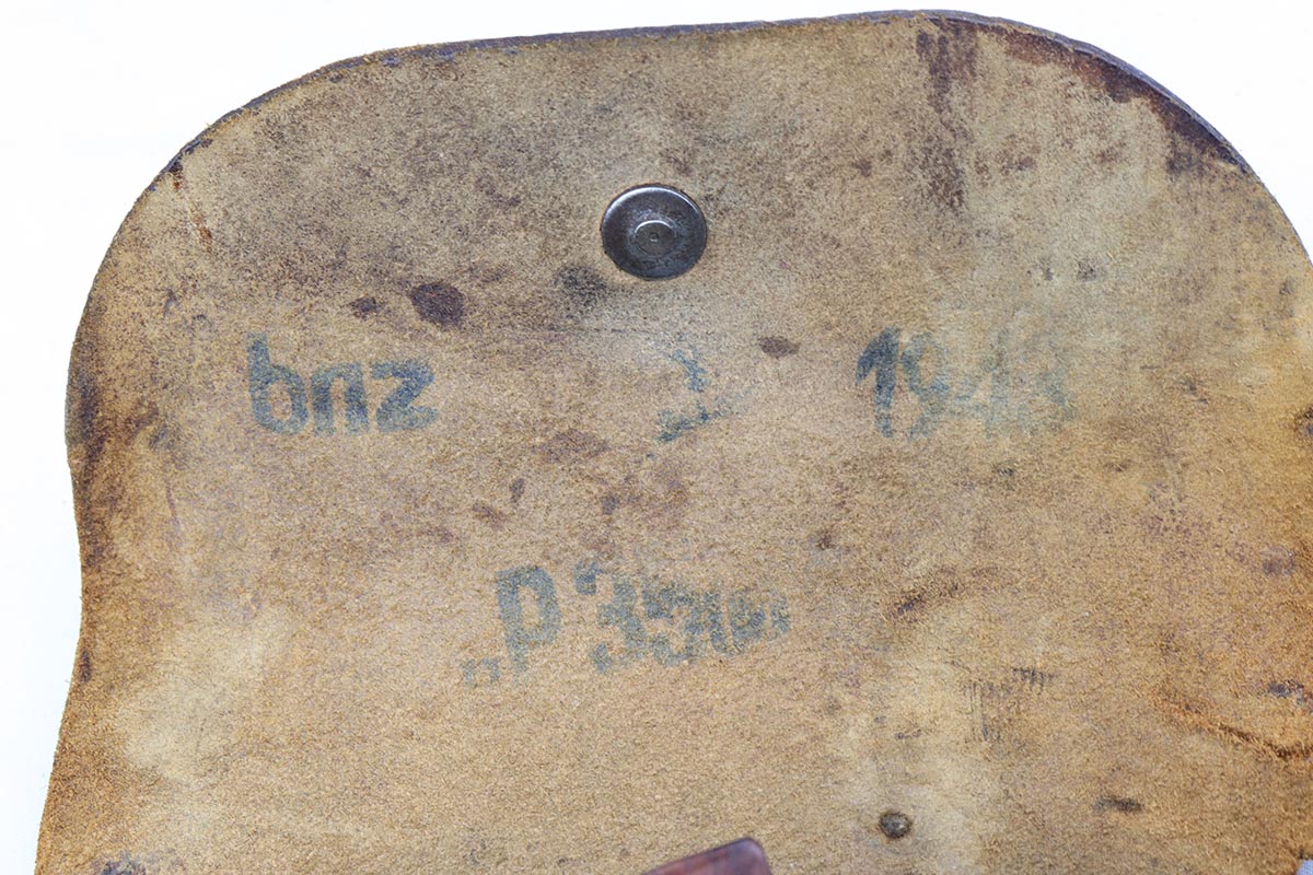 3/21/19 – This is a near-mint Radom VIS 35 with original holster. It is an earlier three-lever variant, all matching and original, retaining 98-99% blue. There is very little actual bluing loss, but there is minor freckling along the edges of the right side slide, and some age under the finish on the straps. Right grip panel does have a thin crack. Waffen marked magazine. Holster has fairly clear internal inkstamps but does show a good amount of age and wear.