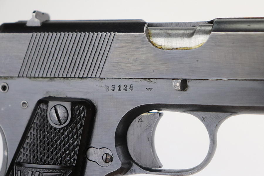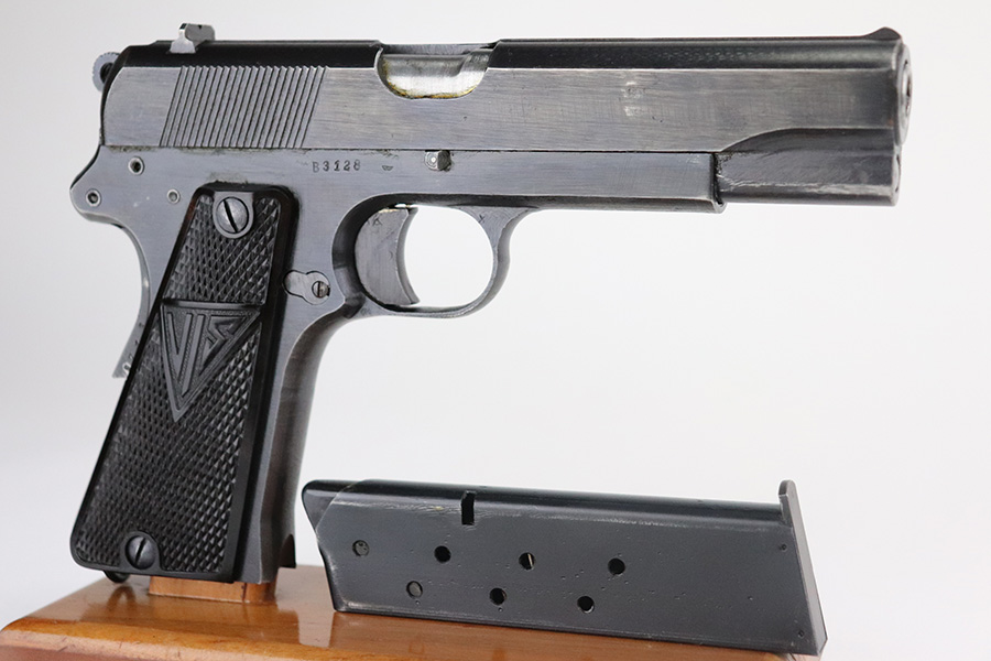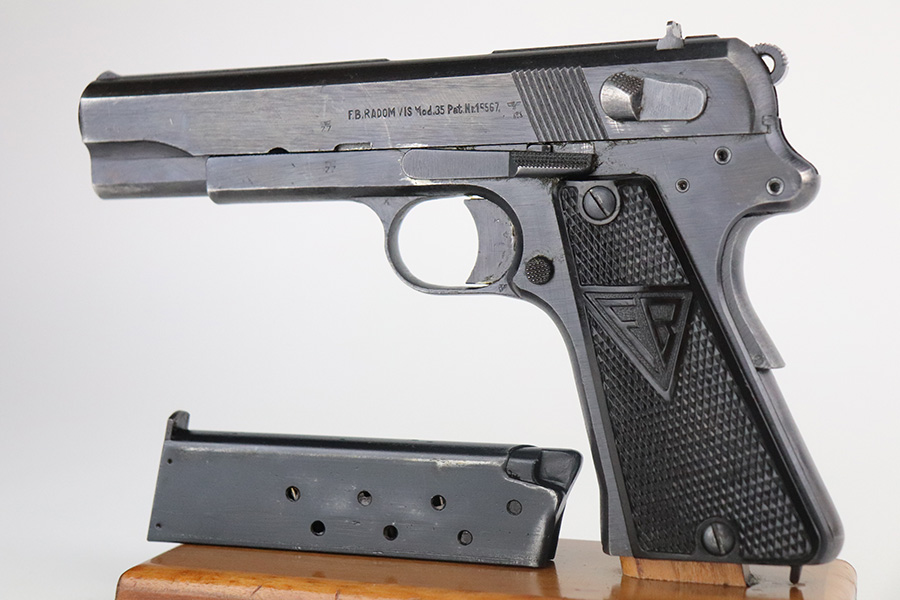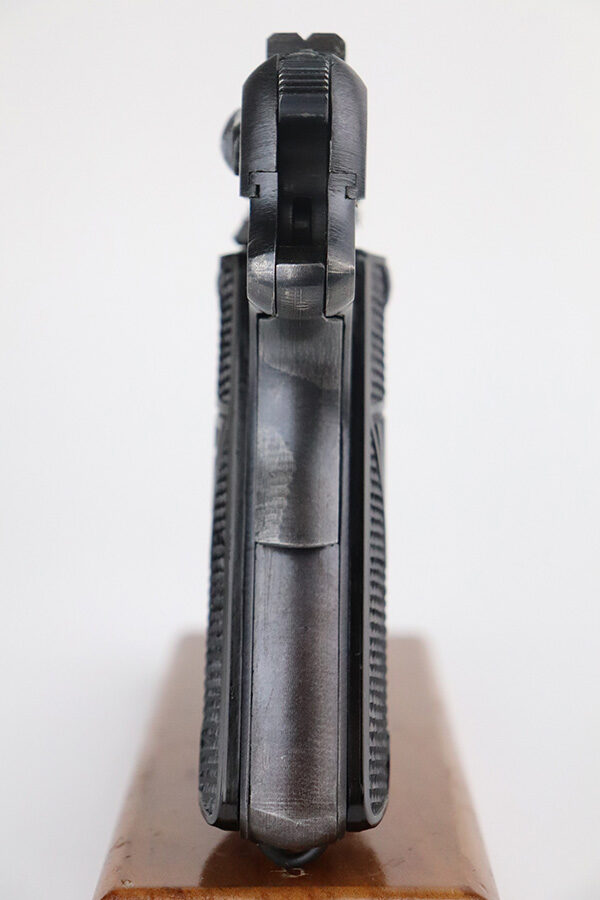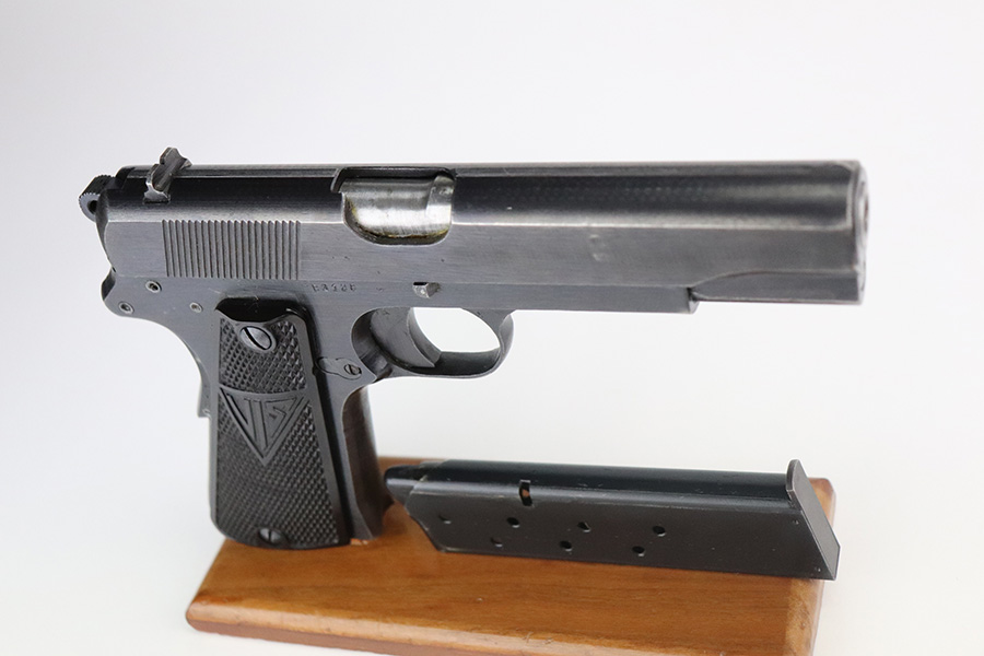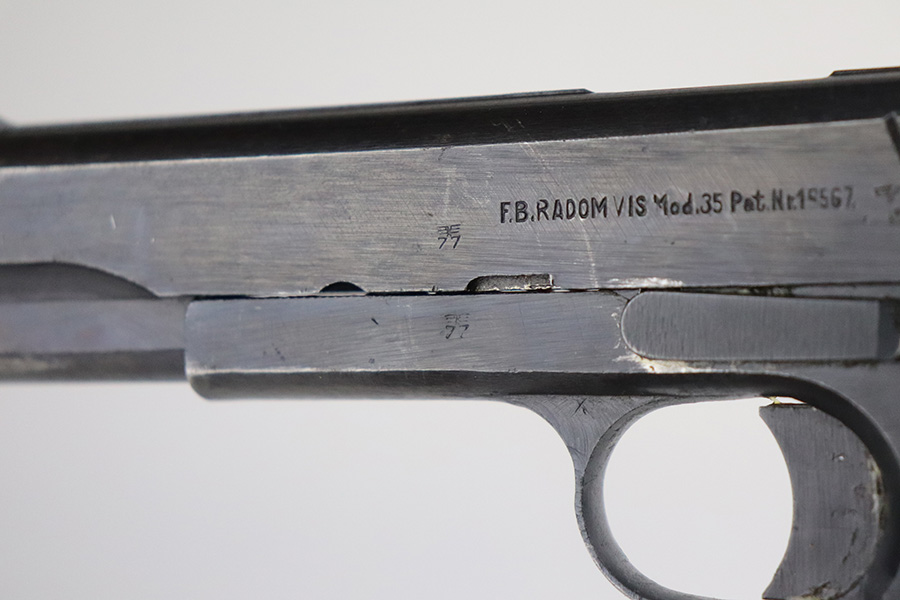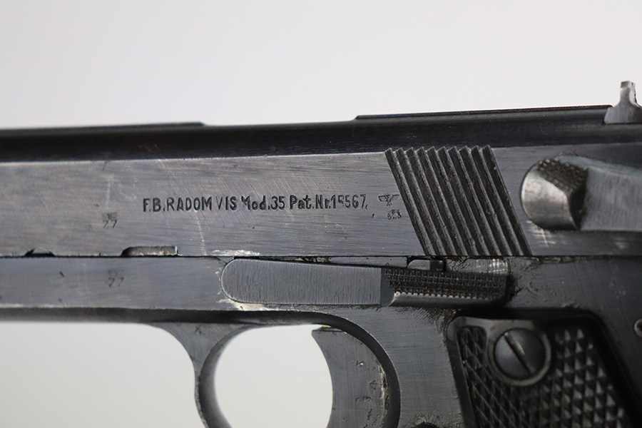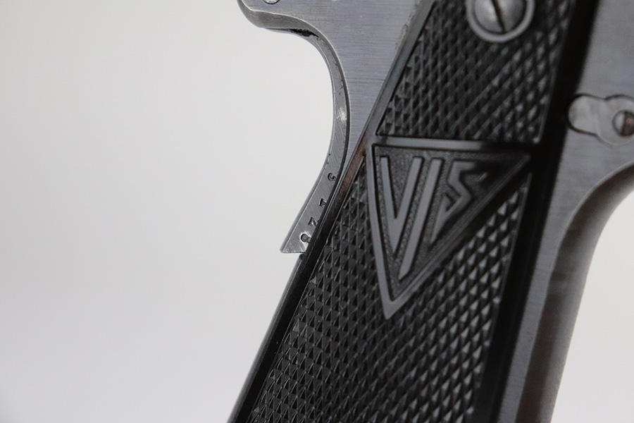 7/9/21 – This is an excellent example of a Radom VIS 35 issued to the Nazi military during WW2. It is all matching and has the proper waffen military proofs. It has retained about 97% of its original finish. There is minor thinning on the straps and hints of wear on the high edges of the slide. There is some spotty discoloration on the back strap and on the grip safety. Comes with excellent grips and a waffen-proofed magazine. The bore has strong rifling with minor pin-pricking in the grooves.