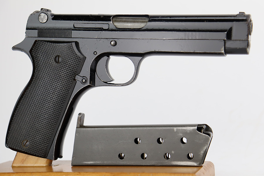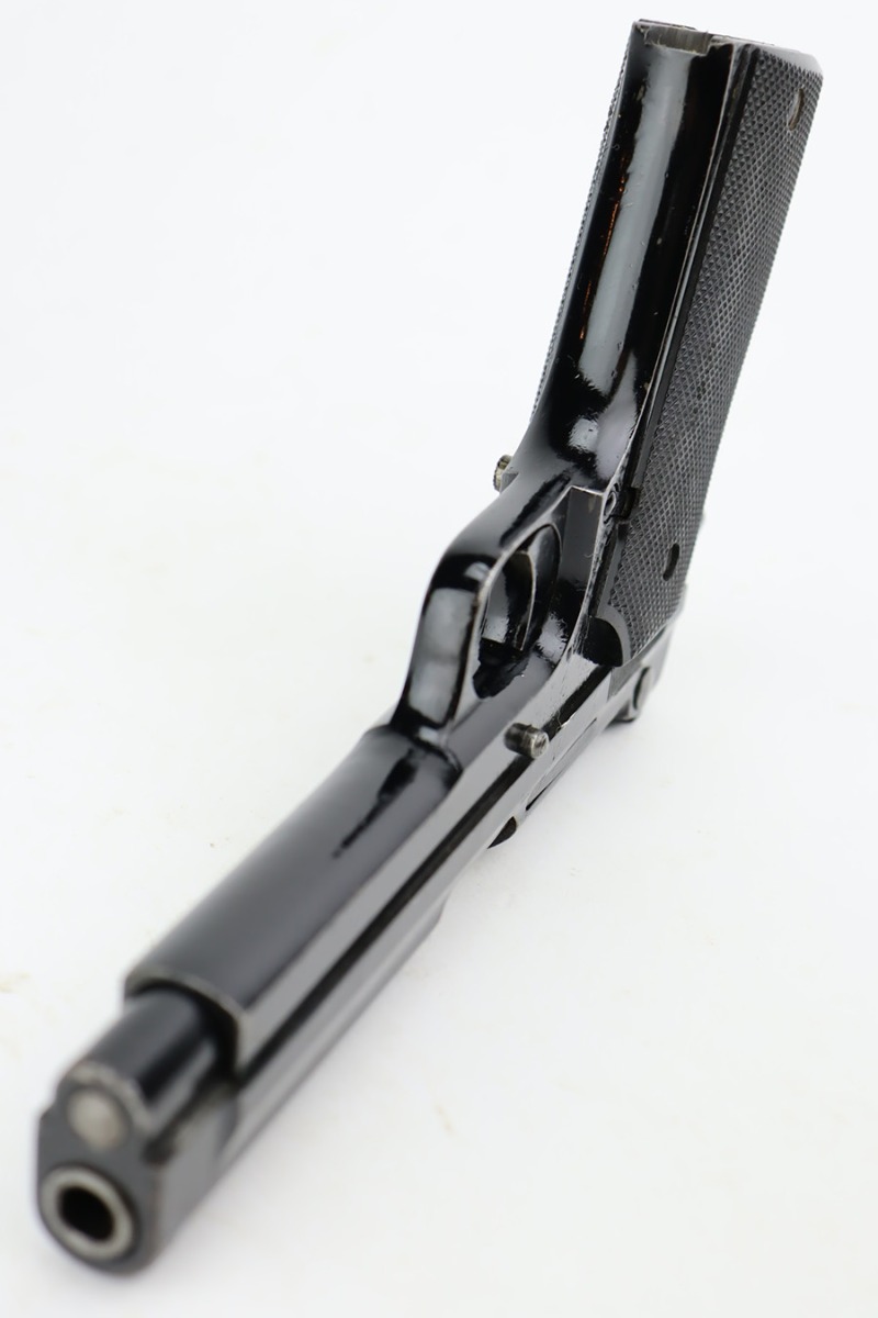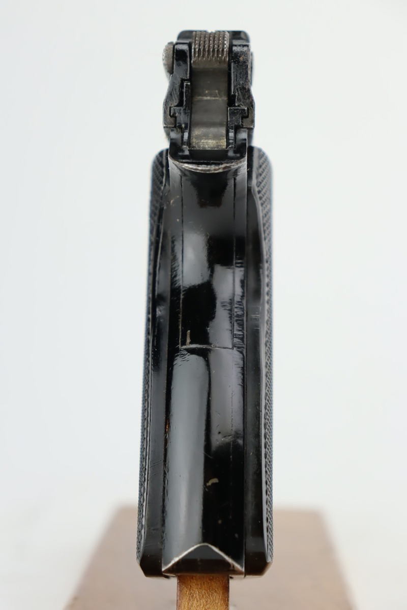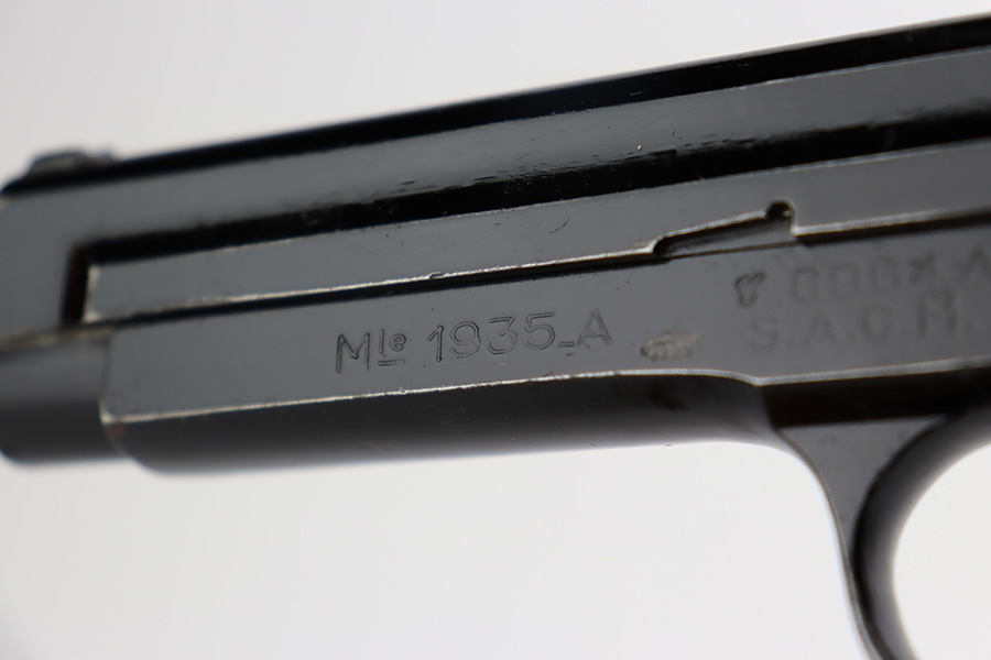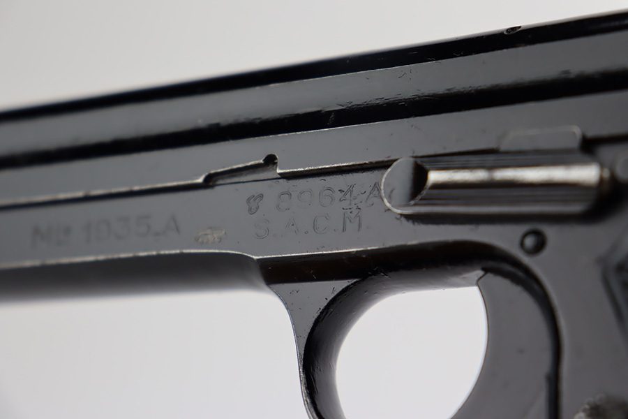 9/20/23 – This is an excellent example of a French SACM Model 1935A issued to the Nazi military during WW2. It has proper “Waffen 251” military acceptance proof on the left side of the frame. It has retained about 96-97% of its original black enamel finish. There is very little actual finish loss, but there is some light chipping in the finish here and there and tiny scratches and scuffs throughout. Fitted with excellent black bakelite grips. Mint bore.