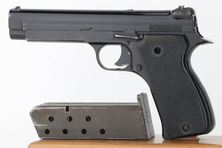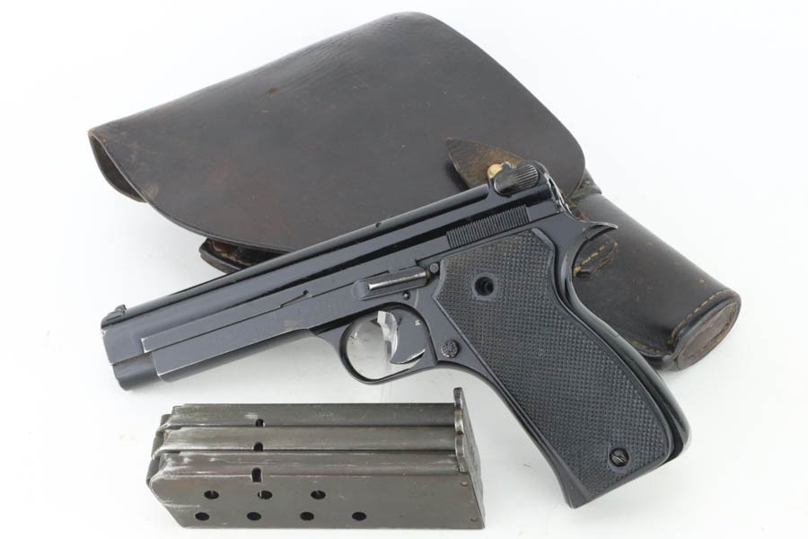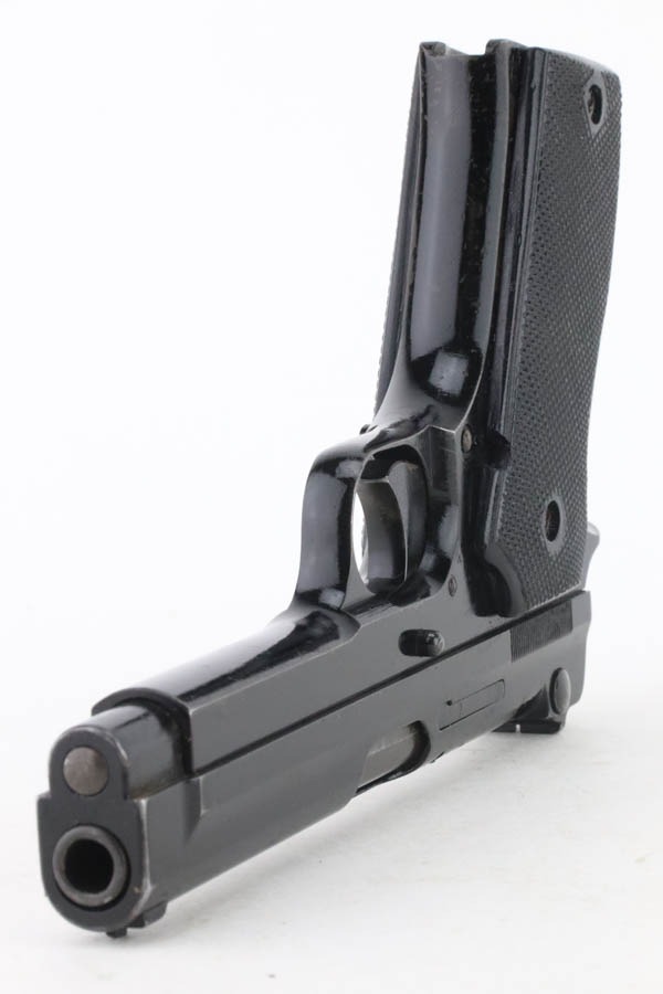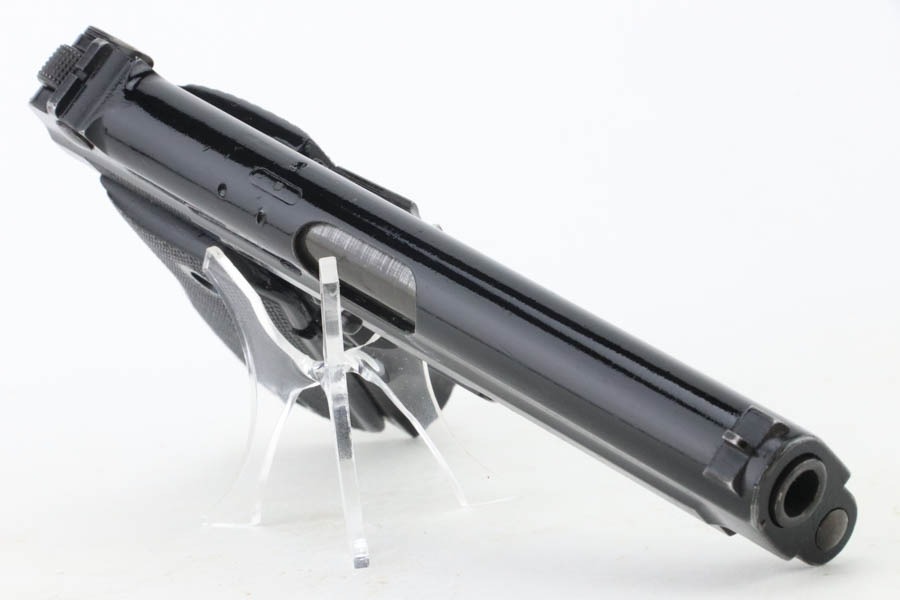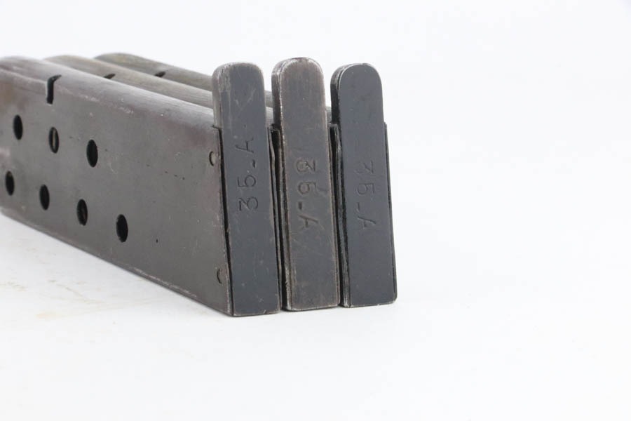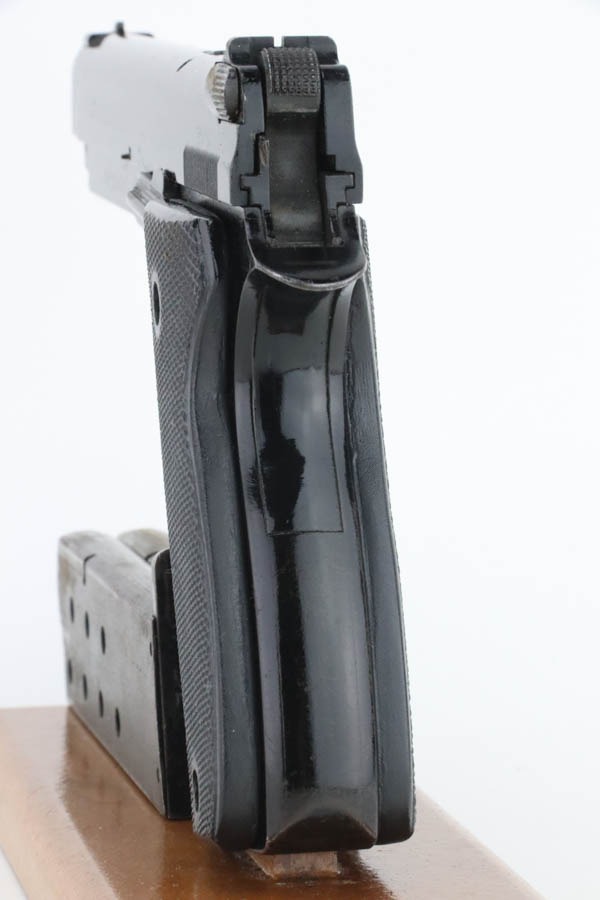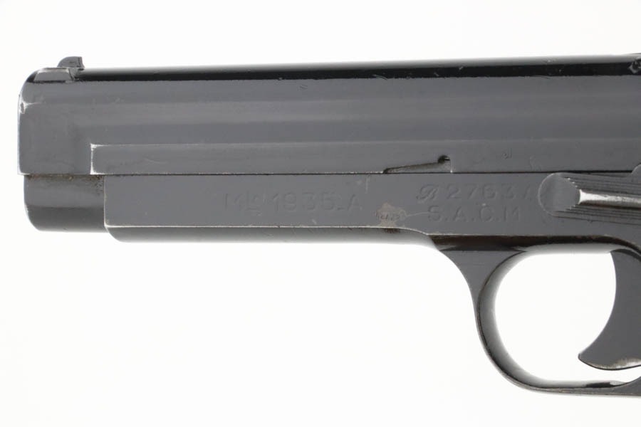 10/15/24 – This is an excellent example of a French SACM Model 1935A issued to the Nazi military during WW2. It has proper “Waffen 251” military acceptance proof on the left side of the frame. It comes as a rig with three period-correct magazines and a very nice leather holster. The gun itself has retained about 94-95% of its original black enamel finish. There is not much actual finish loss, but there is some light chipping in the finish here and there, and tiny scratches and scuffs throughout. Fitted with excellent black bakelite grips, however they may be reproduction – one of the screws is missing. The condition of the bore is poor – worn rifling with oxidation and minor pitting throughout. This one has a sister listing on the website right now that is only two serial numbers away! Link below.