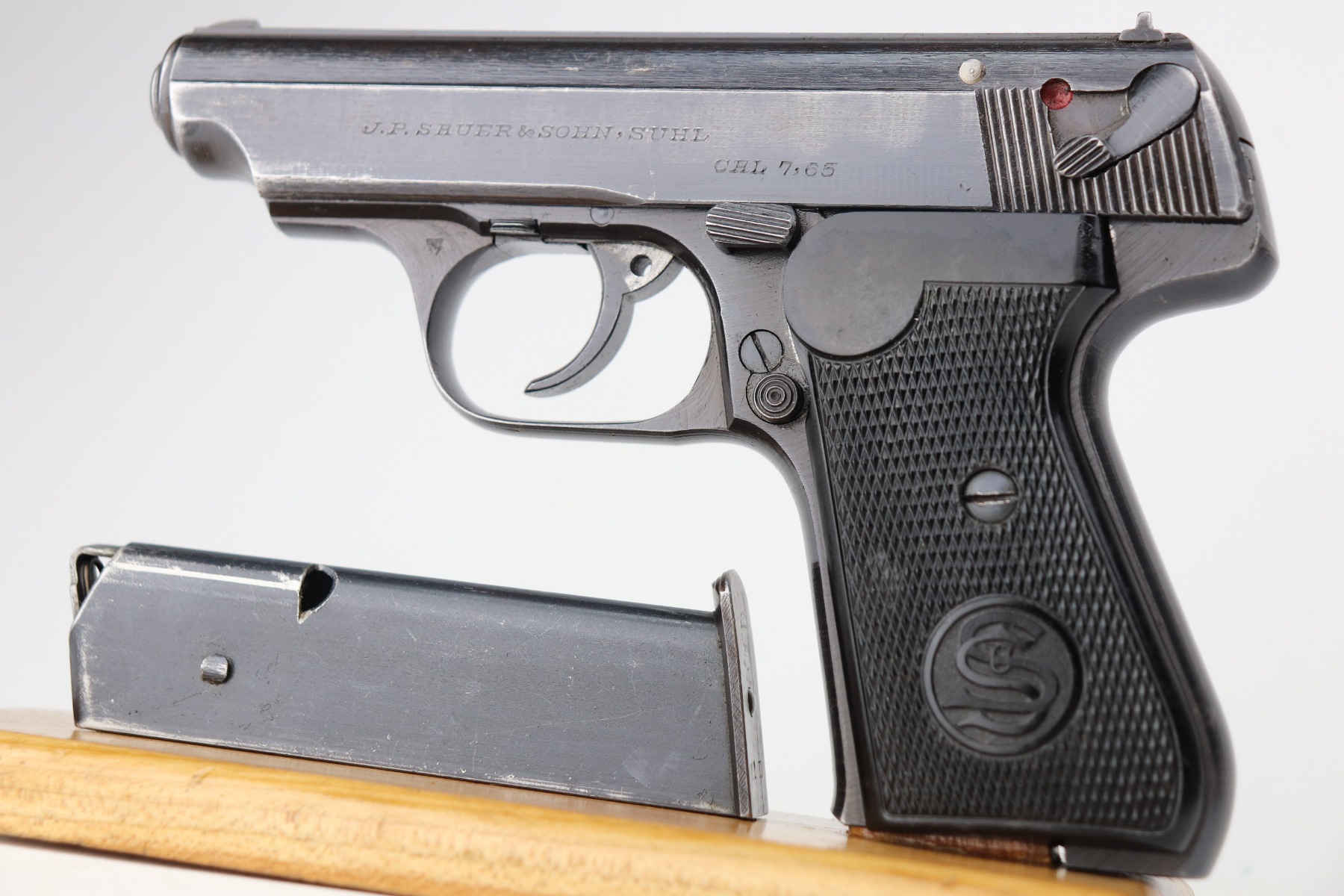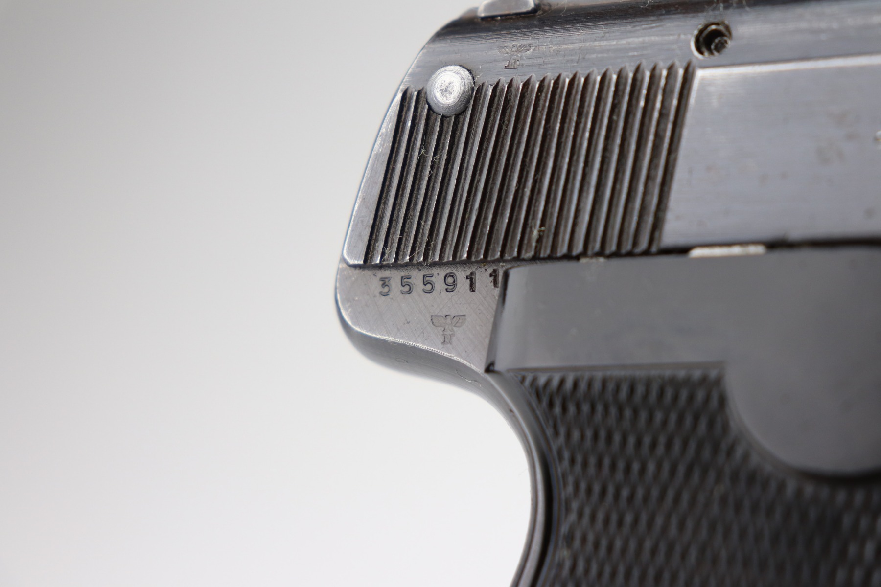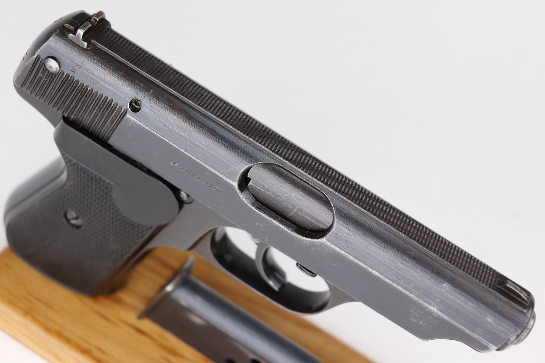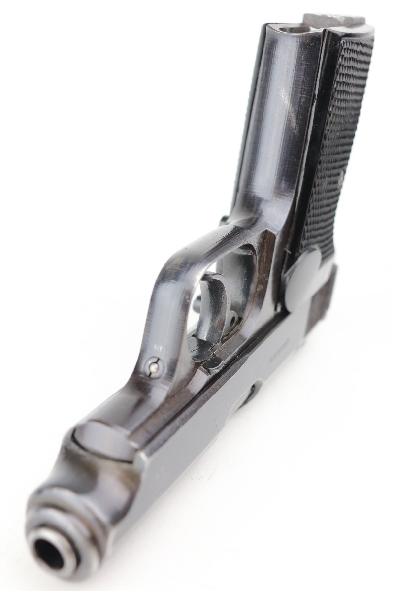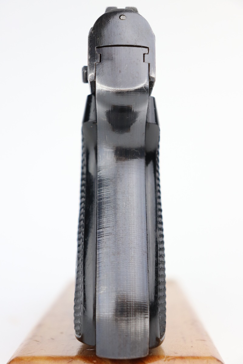 3/1/21 – This is an excellent example of a Sauer 38h issued to the Nazi military during WW2. It is all matching and has the proper “Eagle 37” military proof. It has retained about 95% of its original bluing. There is very minor wear around the muzzle, some of the high edges, and a minor streak on the front strap. Very minor thinning on the back strap. A few very minor handling marks along the top of the slide. Comes with excellent grips and a period-correct magazine. Mint bore.