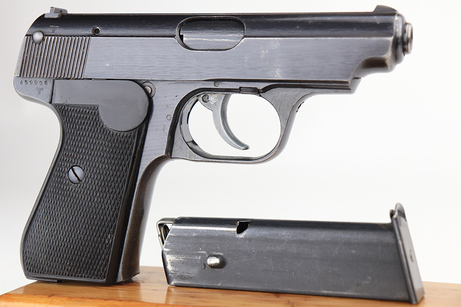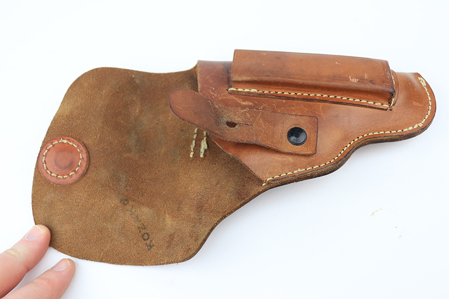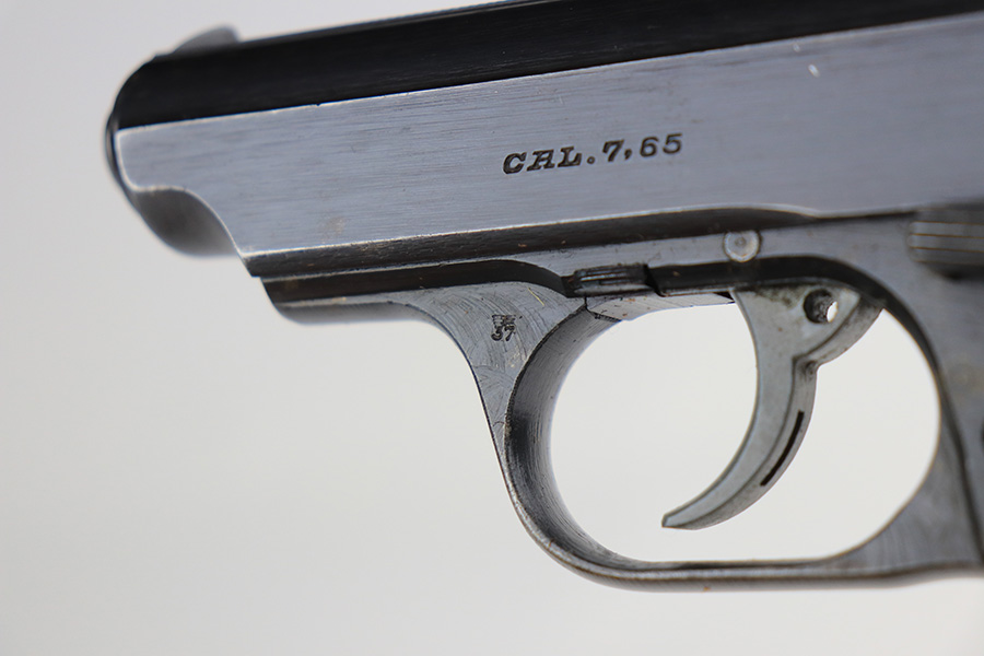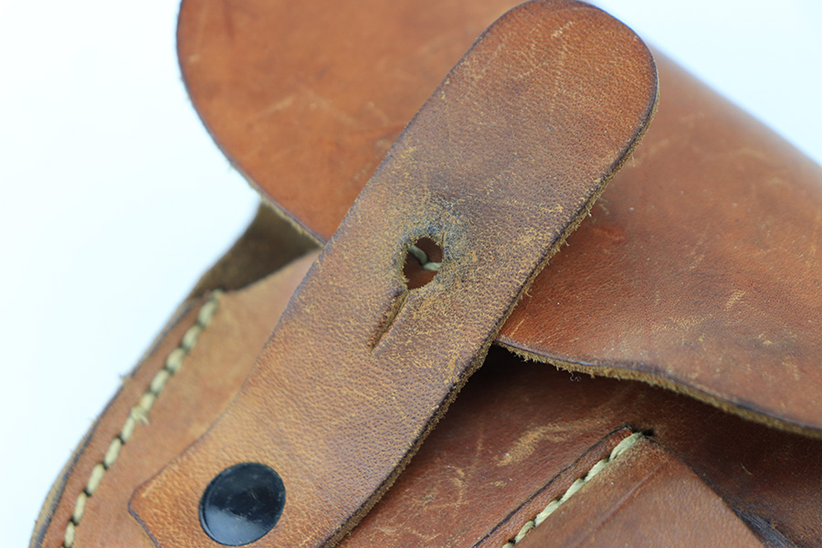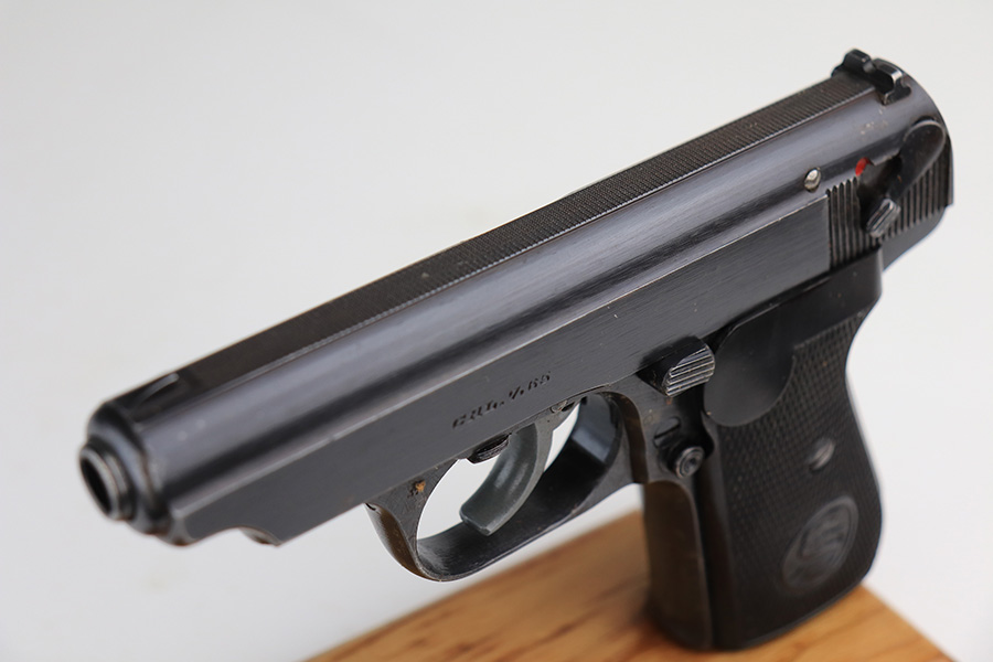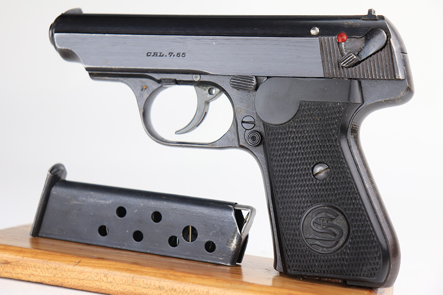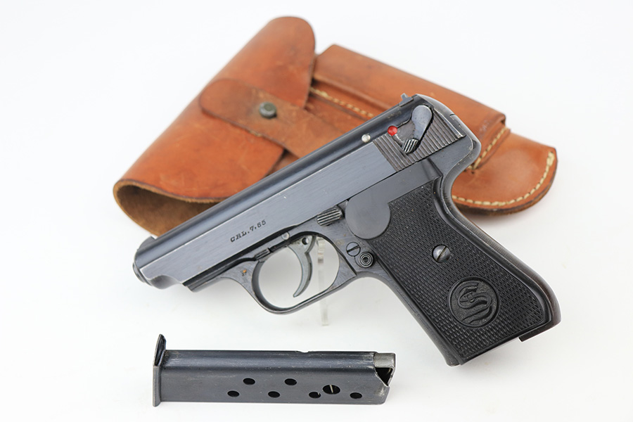 1/13/22 – This is an excellent example of a Sauer 38h issued to the Nazi military during WW2. It is all matching and has the proper “Eagle 37” Nazi military acceptance proof on the left side of the trigger guard. It comes as a rig with a generic tan leather holster and one period-correct magazine. The gun has retained about 95% of its original finish. There is very minor thinning and minor spotty wear on both grip straps. There are also a few small dots of wear along both sides of the slide. Comes with excellent period-correct black bakelite grips. The bore is near-mint.