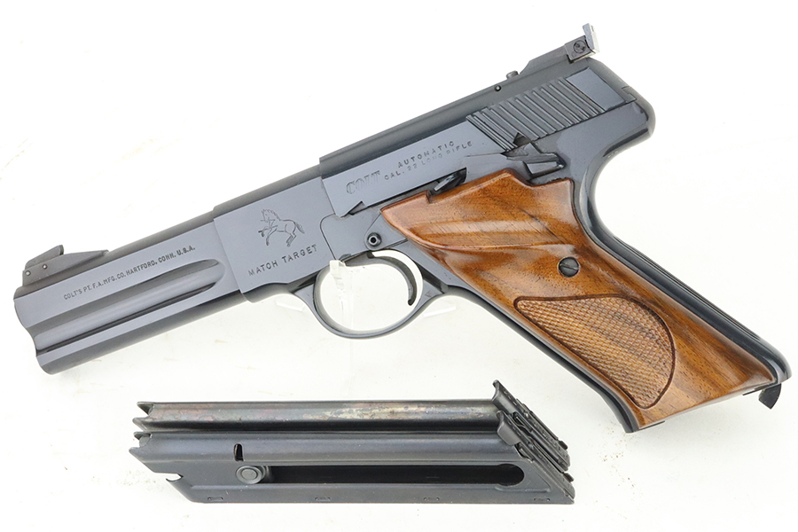 05/30/2024 – For sale is a Colt Woodsman Match Target pistol chambered in .22 LR. This handgun looks brand new from the factory with excellent polished bluing. The bore is mirror bright and in excellent condition. The wood grips are clean and free of any cracks. The handgun comes with 2 magazines, the original manual, and the box and sleeve.