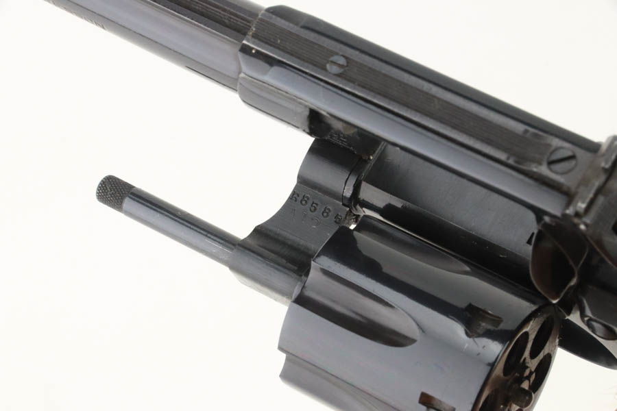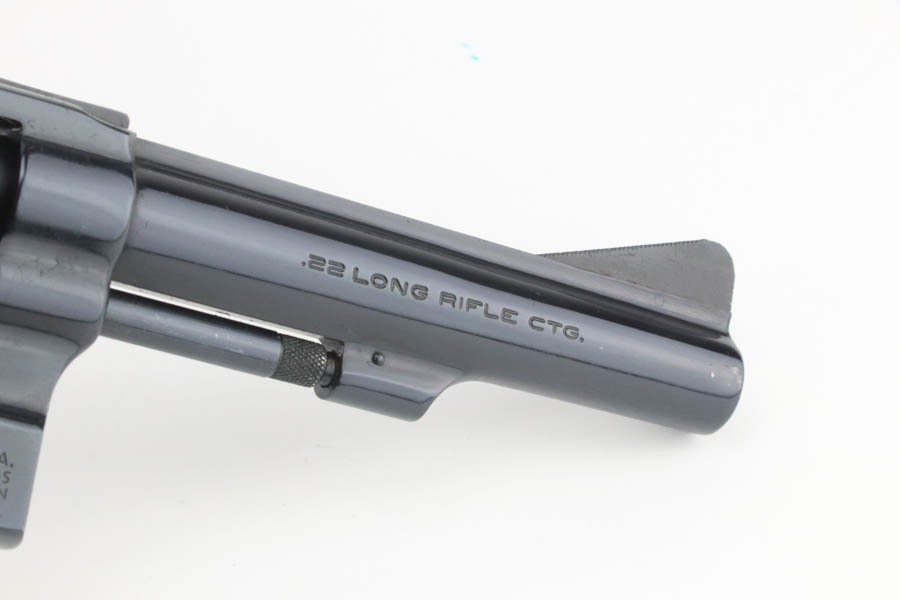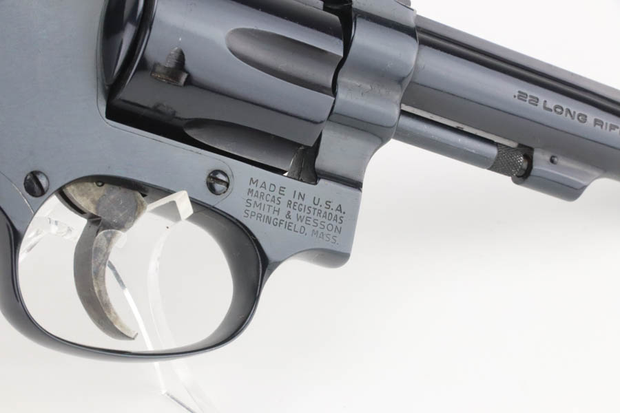 07/30/2024 – For sale is a Smith & Wesson Model 34-1 kit gun chambered in .22 long rifle with a 4″ barrel. The revolver is in excellent condition with a high polished bluing through the frame, barrel, and cylinder. The hammer and trigger have a nice case color finish. The wood grips are clean and free of any cracks. The bore is very bright with great rifling. The revolver comes with a matching factory box.
