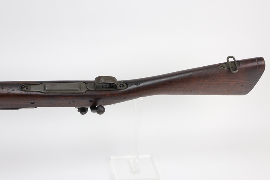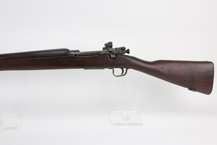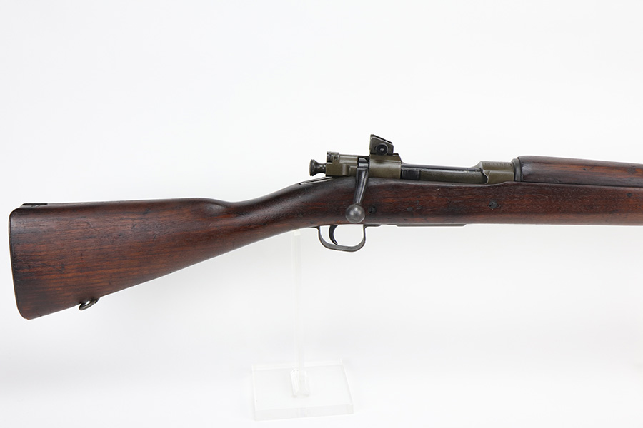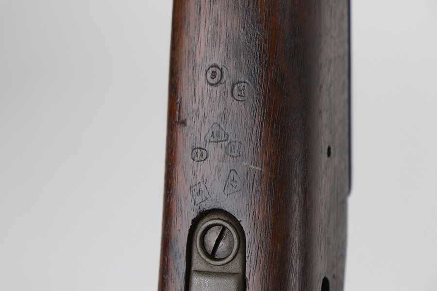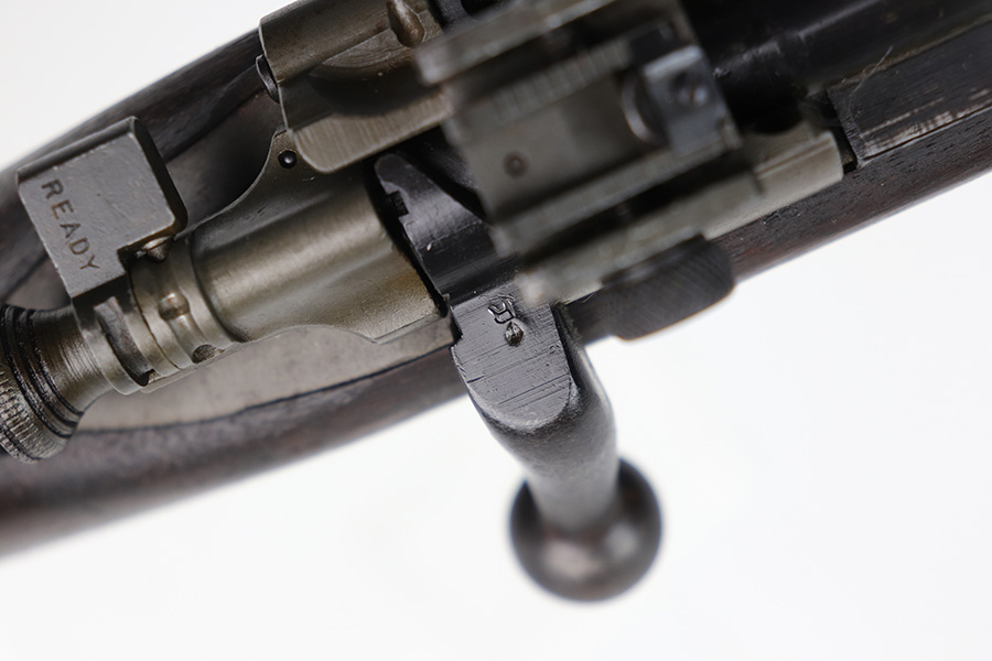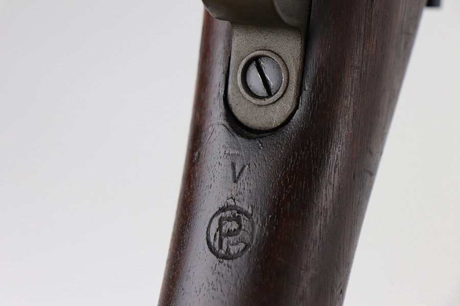 5/22/24 – This is an excellent example of an original Remington Model 1903 bolt action rifle issued to the US military in January of 1943. The barrel is dated February of 1943 and has the proper flaming bomb. The stock is marked with a military cross cannon cartouche, “FJA” inspector initials, and a Remington “RA” stamp. The barrel and receiver are parkerized and the bolt is blued. Bolt is properly marked with the Remington ‘R’, as is the front cap of the wooden stock. The stock is also properly marked with the sub-inspector markings in front of the trigger housing. It has retained most of its original finish with spotty discoloration on the receiver. The stock is excellent with minor dings here and there. The bore is mint.