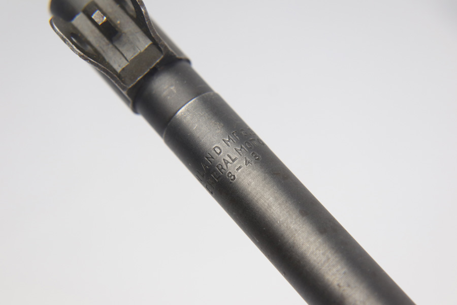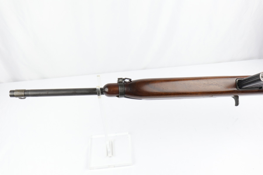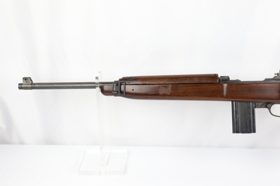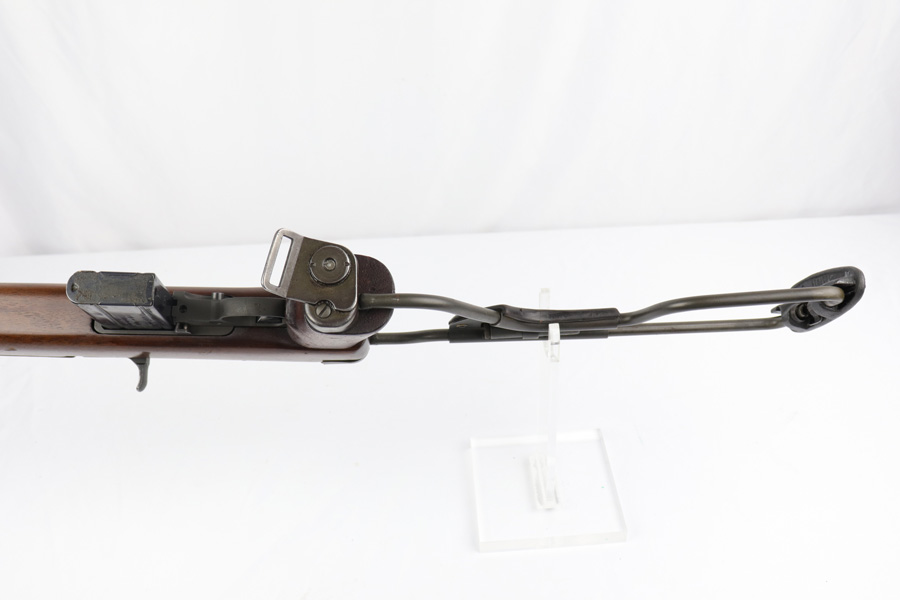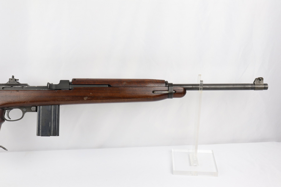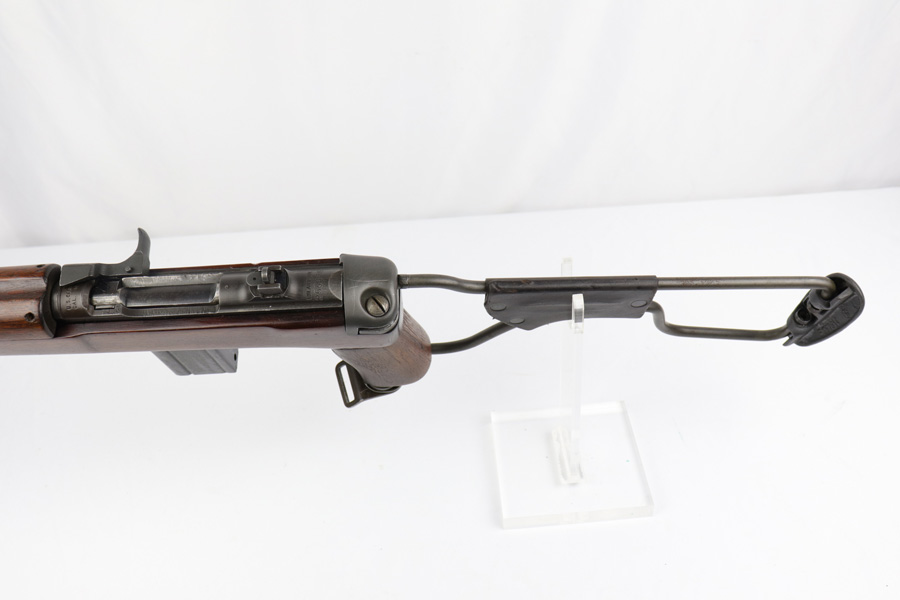 2/11/19 – This is an excellent and original Inland M1-A1 Paratrooper Carbine. It has an early six digit serial. Barrel is dated to March of 1943. IO marked inside handguard and on bottom of the handle. Circle P on back of stock. Original cheek pad. Excellent stock and metal parts, showing minor finish loss around the front sight and some scratches in the stock from being in the folded position. The stock markings are still sharp but it does show some signs of having been sanded. All correct, early Inland parts. AI marked magazine. Original flip sight with no signs of staking or removal. Type 1 front barrel band. Mint bore – looks almost unused.
