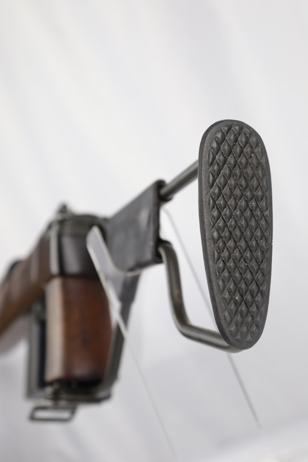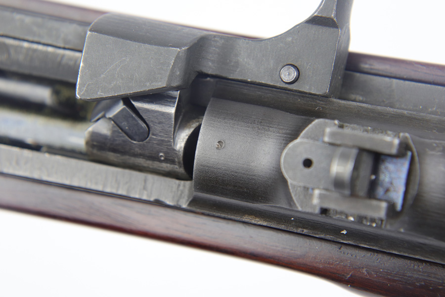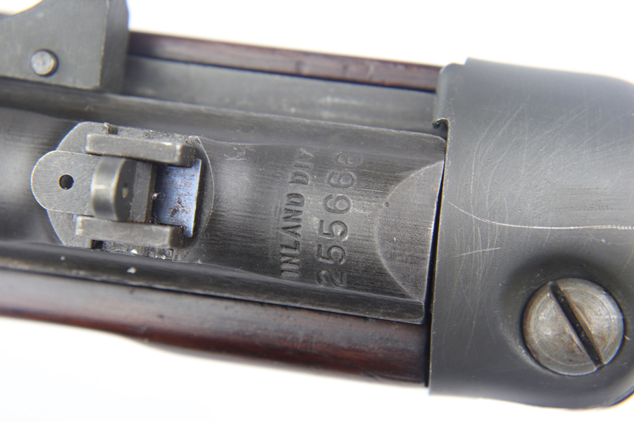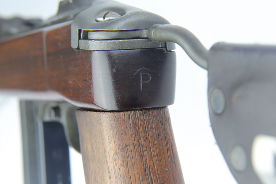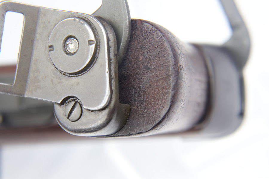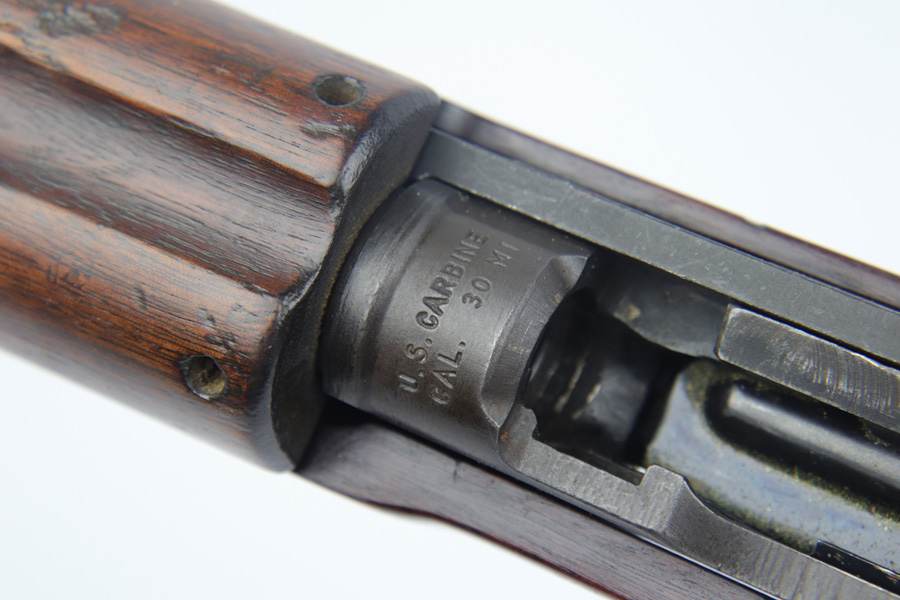 2/11/19 – This is an excellent and original Inland M1-A1 Paratrooper Carbine. It has an early six digit serial. Barrel is dated to March of 1943. IO marked inside handguard and on bottom of the handle. Circle P on back of stock. Original cheek pad. Excellent stock and metal parts, showing minor finish loss around the front sight and some scratches in the stock from being in the folded position. The stock markings are still sharp but it does show some signs of having been sanded. All correct, early Inland parts. AI marked magazine. Original flip sight with no signs of staking or removal. Type 1 front barrel band. Mint bore – looks almost unused.