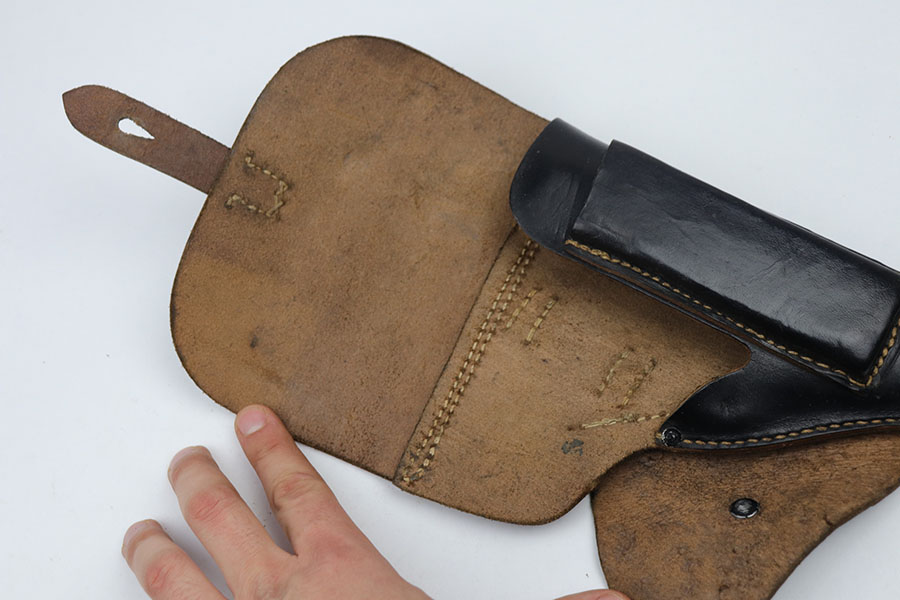 1/11/21 – This is an excellent condition Police issued P.38 holster. The holster is softshell style with very clean leather and all original stitching in tact. The back leather is police proof stamped with a police unit stamp and P.38 stamp. Very clean interior leather and no major notable flaws.