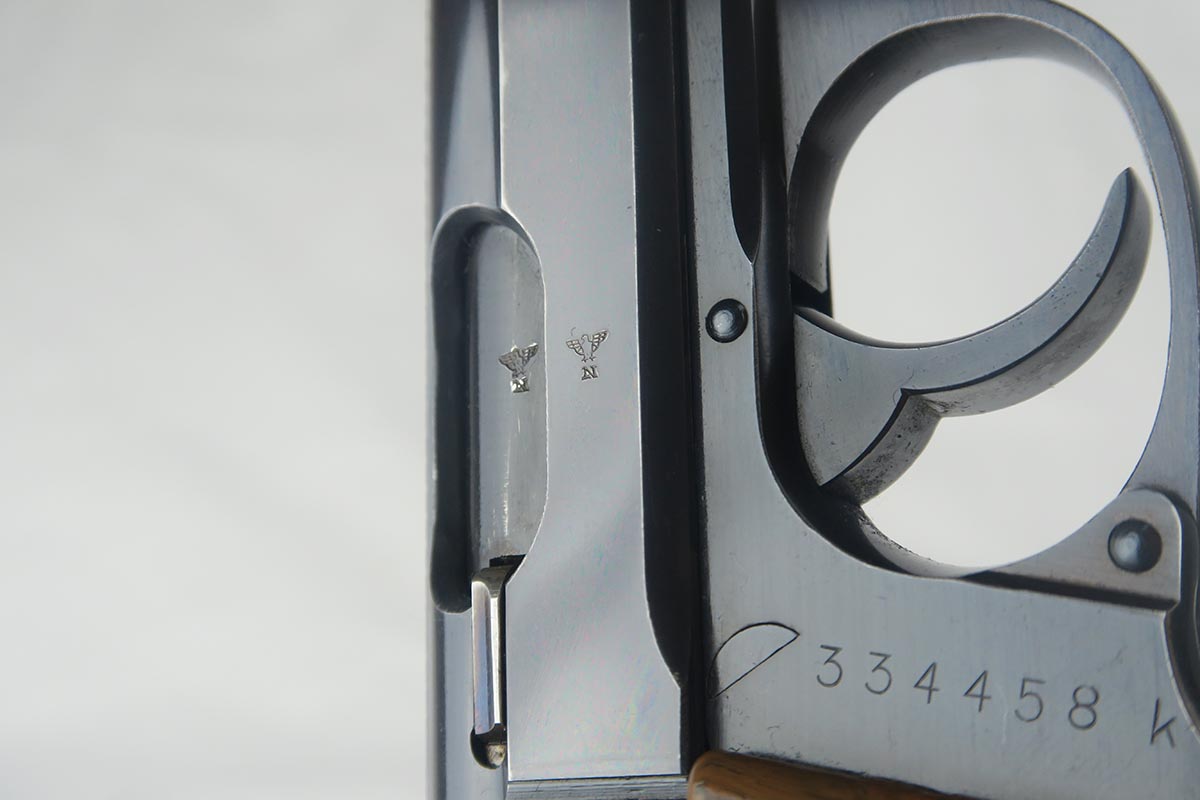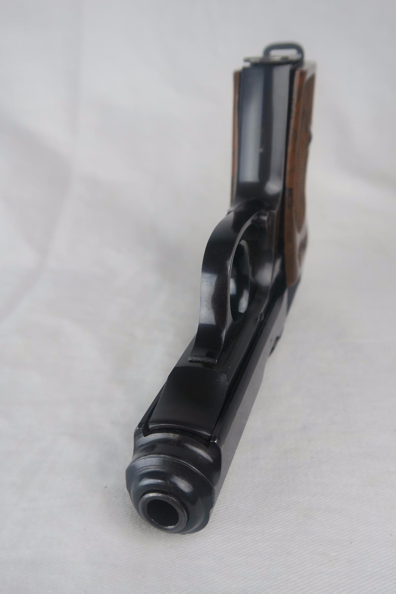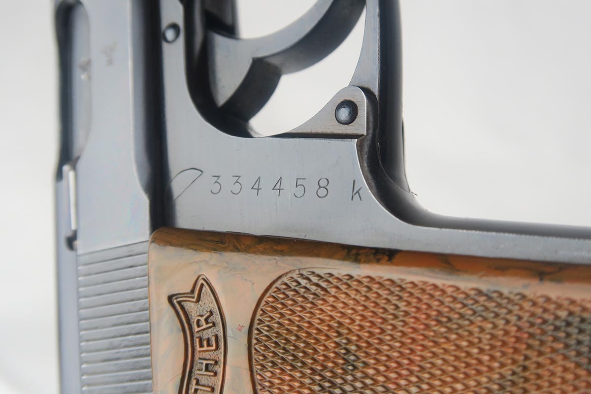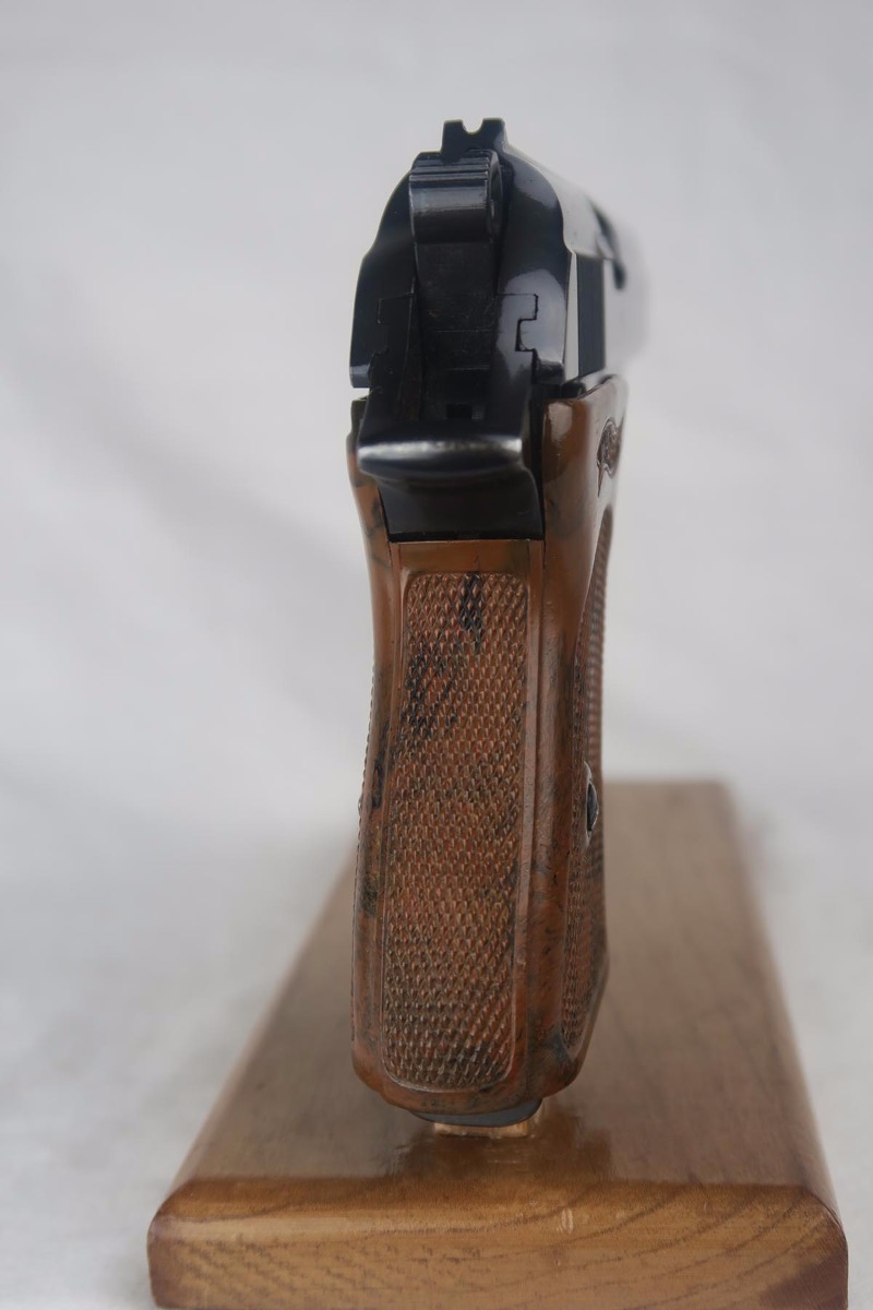 7/9/18  – This is an excellent and original Walther PPK that was issued to the German Police during the war.  The high-polish blue rates around 98% with nearly all finish loss found on either side of the muzzle.  Eagle/N proofs on slide and frame.  Flat-bottom Walther banner magazine.  The grip does have a small crack on the left side.  Minty bore.