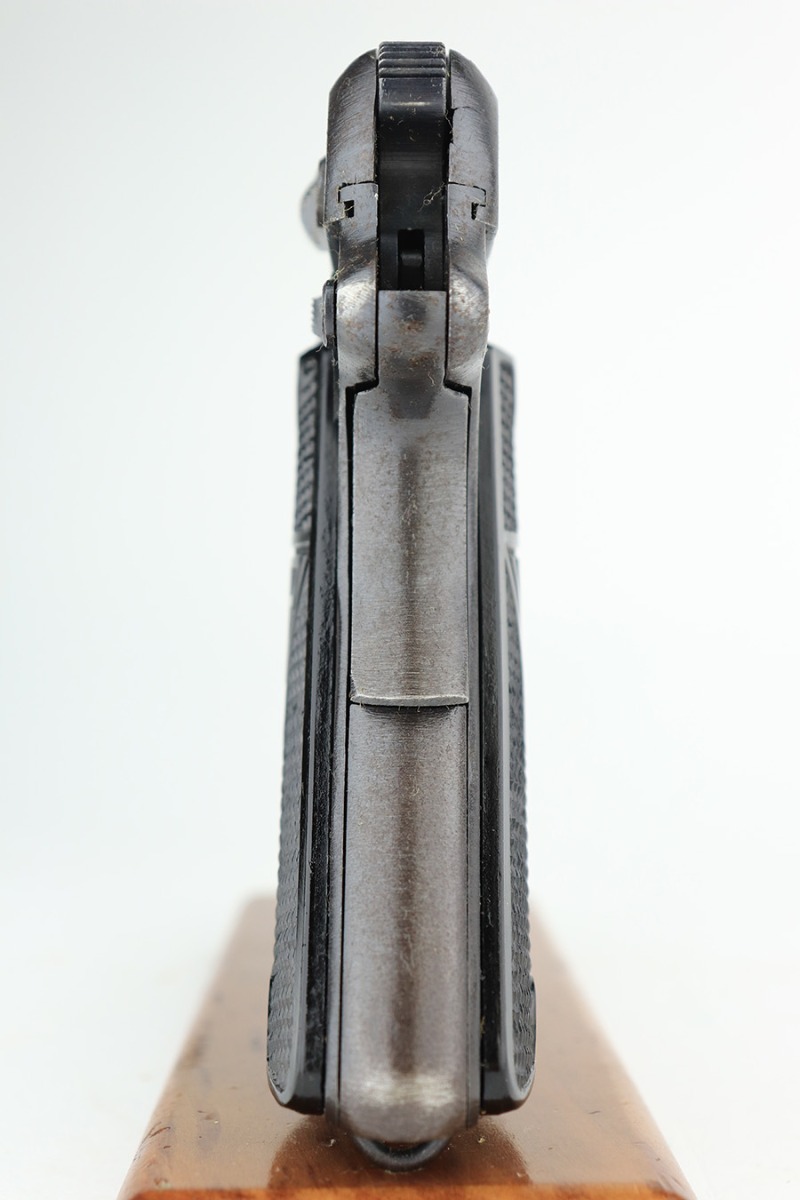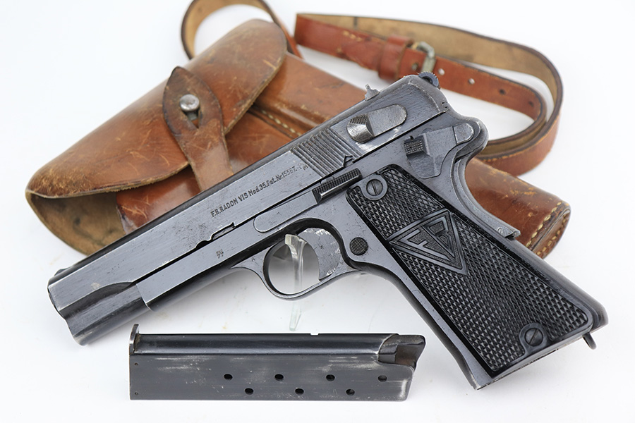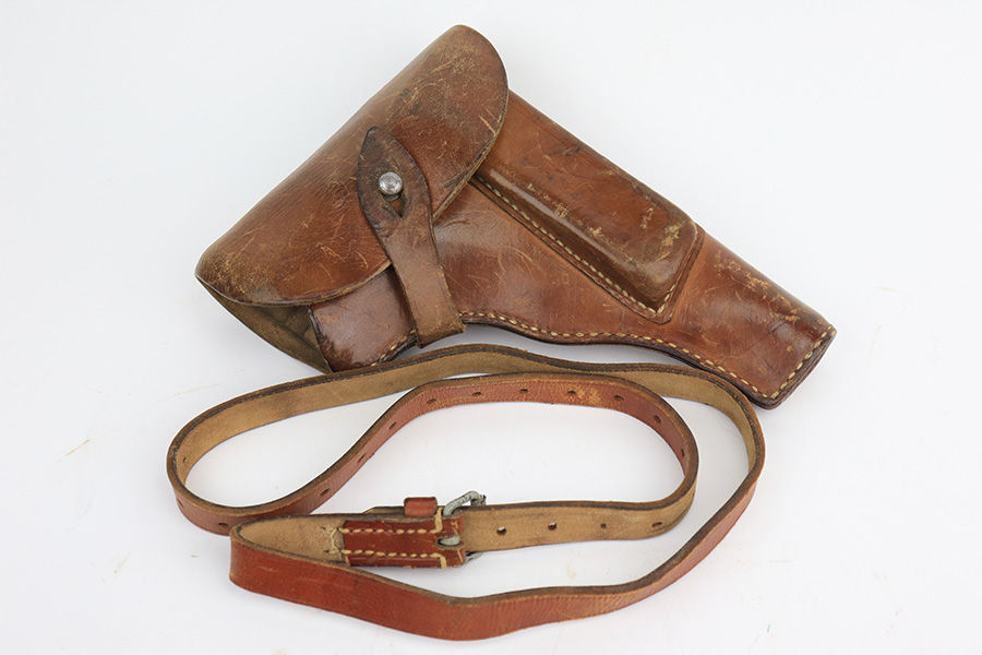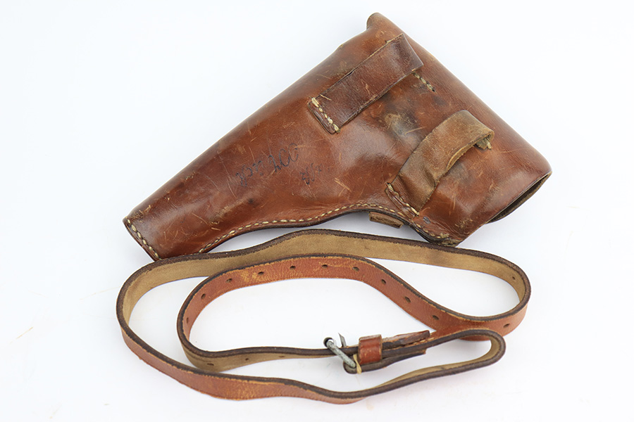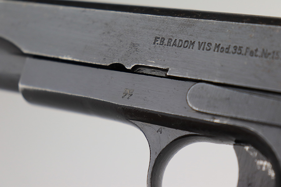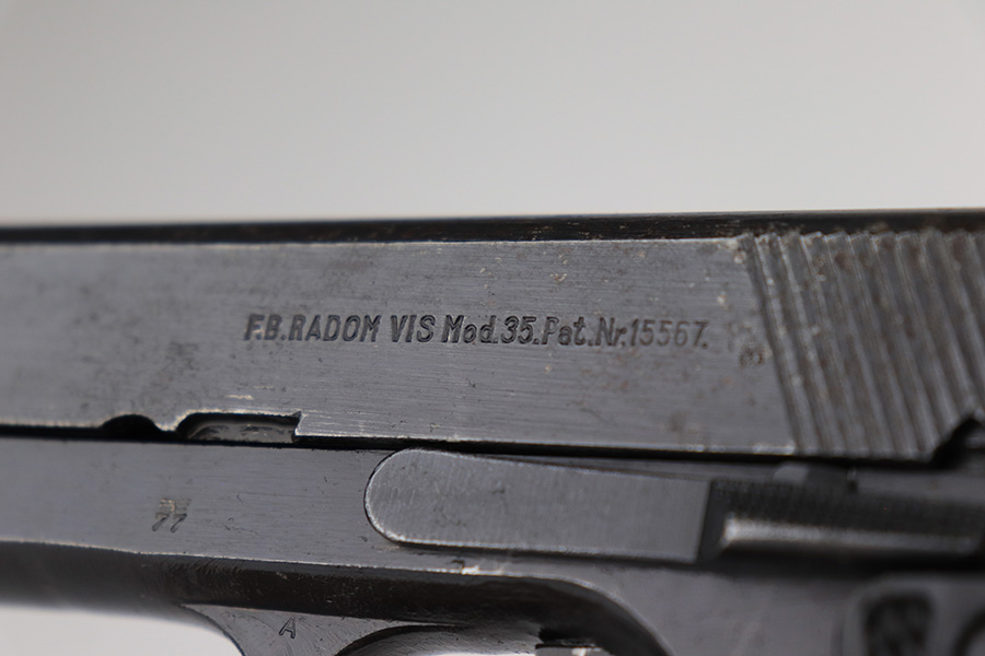 2/22/23 – This is a very nice example of an original Radom VIS Model 35. All matching with three-lever frame design. The original bluing shows very little actual finish loss, rating at 95-97%, but there is some pinpricking and minor splotchy areas on the slide. Excellent and original black plastic grips with no cracks or chips. Original mag with waffenamt on the base. Excellent bore with just a little bit of freckling in the grooves, but it’s shiny with strong rifling. Proper mechanics, including de-cocker. The listing also includes an original tan leather holster with internal inkstamp. It’s in very good condition, but does have some writing on the back. Also comes with a strap.