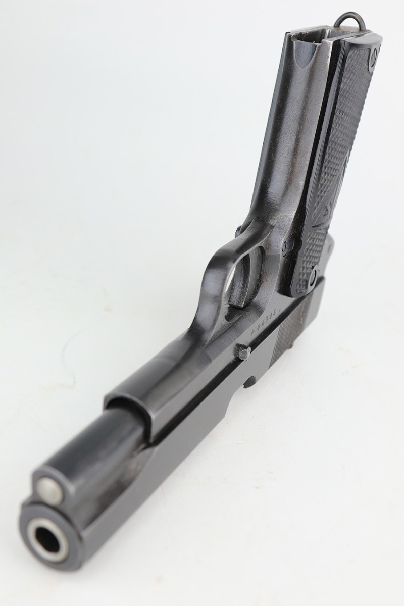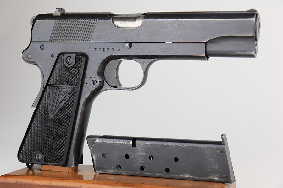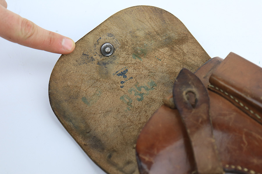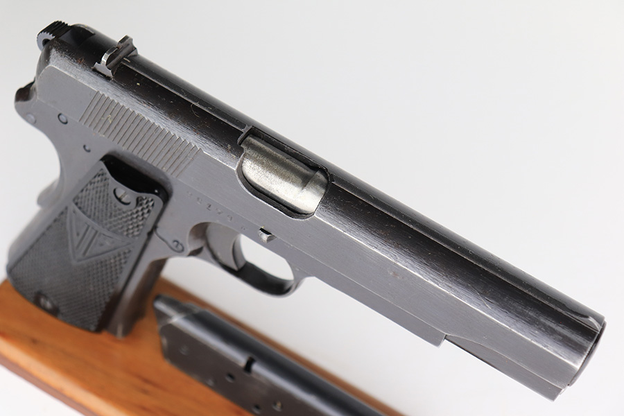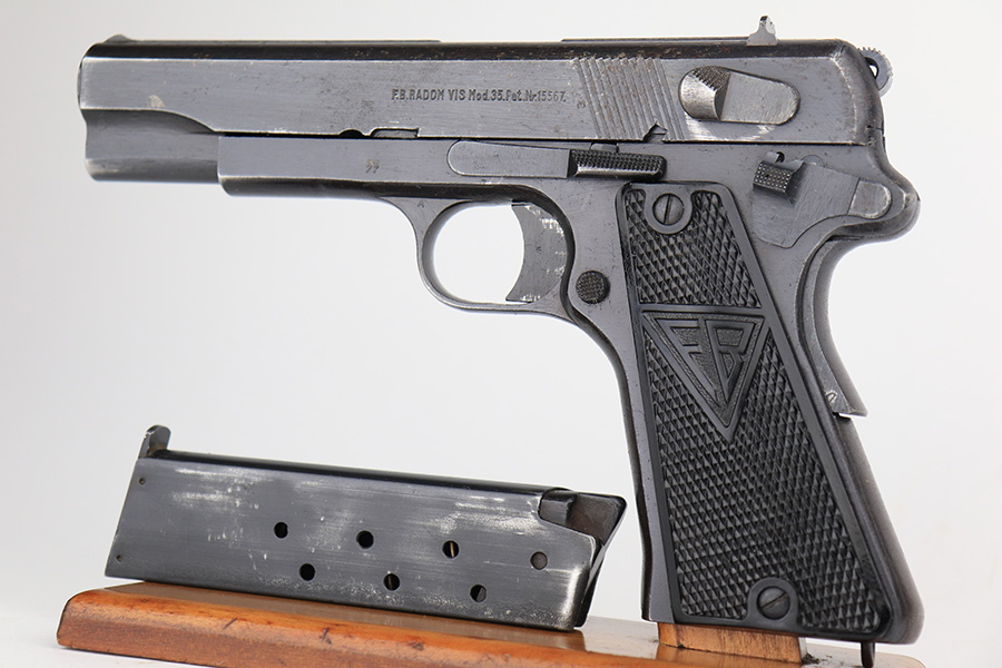 2/22/23 – This is a very nice example of an original Radom VIS Model 35. All matching with three-lever frame design. The original bluing shows very little actual finish loss, rating at 95-97%, but there is some pinpricking and minor splotchy areas on the slide. Excellent and original black plastic grips with no cracks or chips. Original mag with waffenamt on the base. Excellent bore with just a little bit of freckling in the grooves, but it’s shiny with strong rifling. Proper mechanics, including de-cocker. The listing also includes an original tan leather holster with internal inkstamp. It’s in very good condition, but does have some writing on the back. Also comes with a strap.