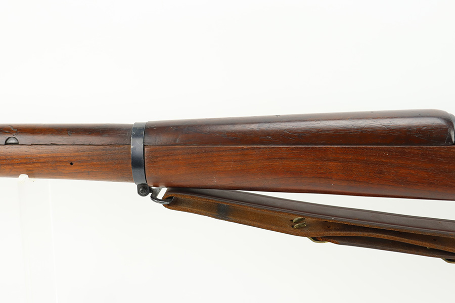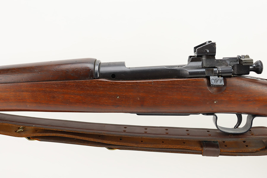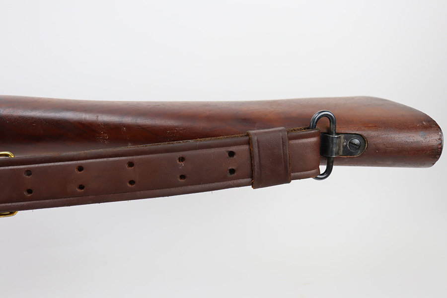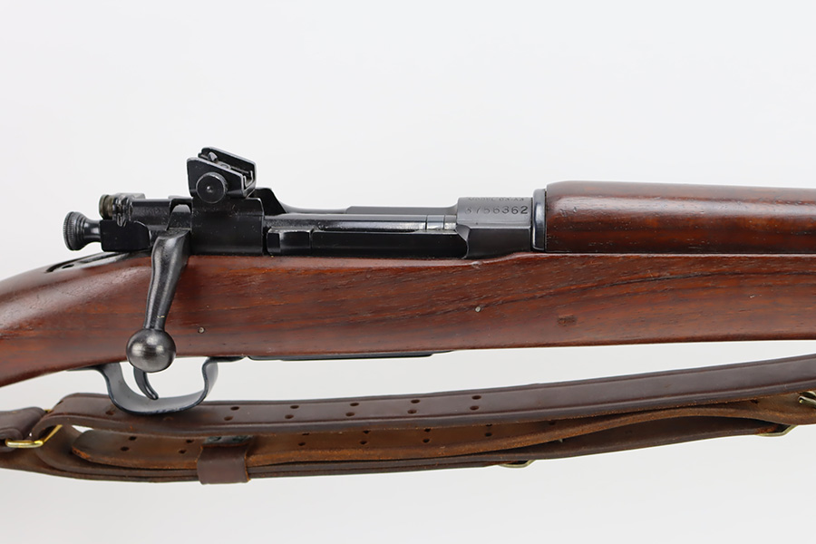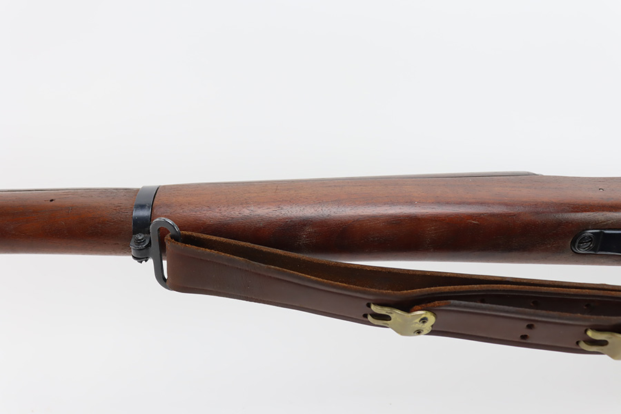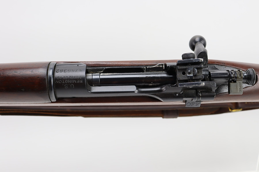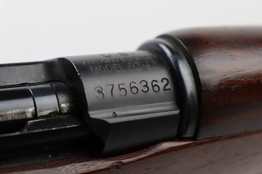 10/31/23 – This is a fantastic Model 1903a3 made by Remington in 1943. This rifle retains ~96% of its original finish and has some finish loss on the barrel & butt plate and some dings on the stock. The receiver and metal parts retain a deep bluing and the receiver stampings are sharp. The stock also looks fresh from the arsenal. The bore is sharp and very bright but it is frosted over. The top of the barrel is stamped with the US Ordnance mark, “RA” for Remington arms, and 4-43 for April of 1943. The rifle comes with a US Military style leather sling. NOTE: The screw that runs from trigger guard up through the wrist of the stock was replaced and is shorter than an original one.