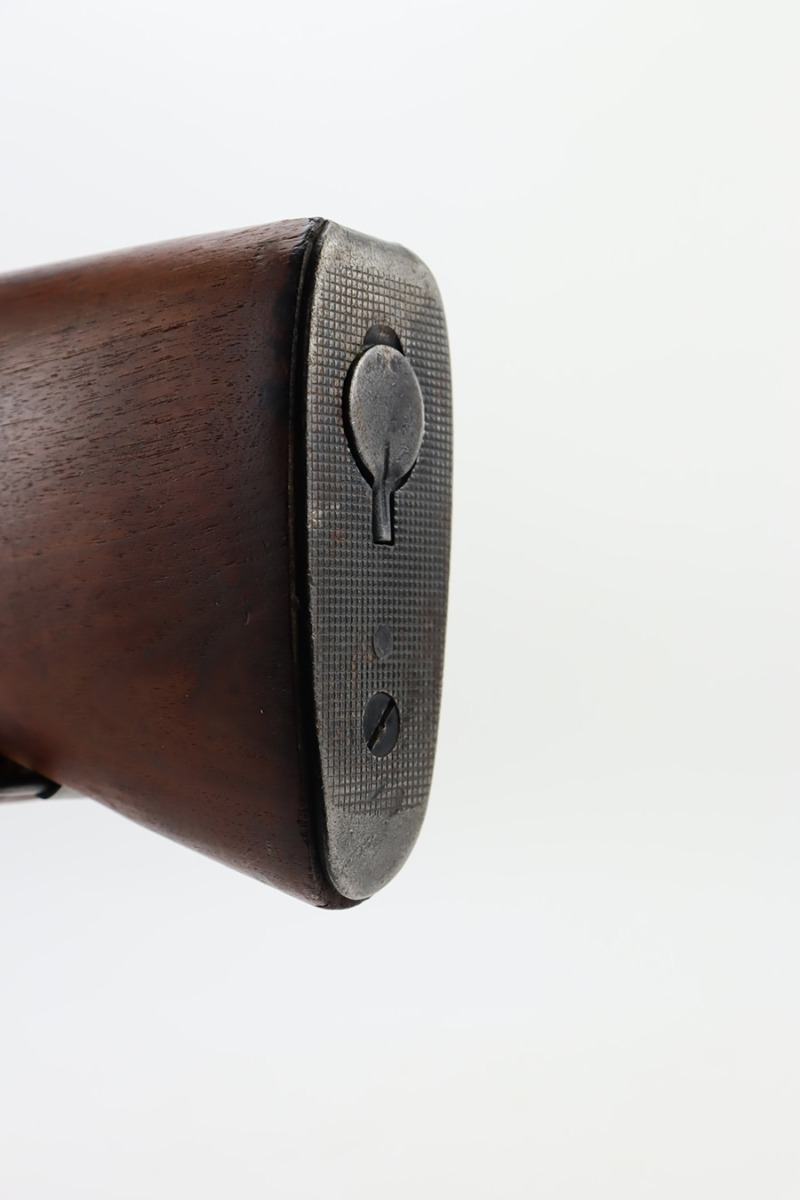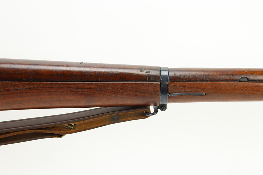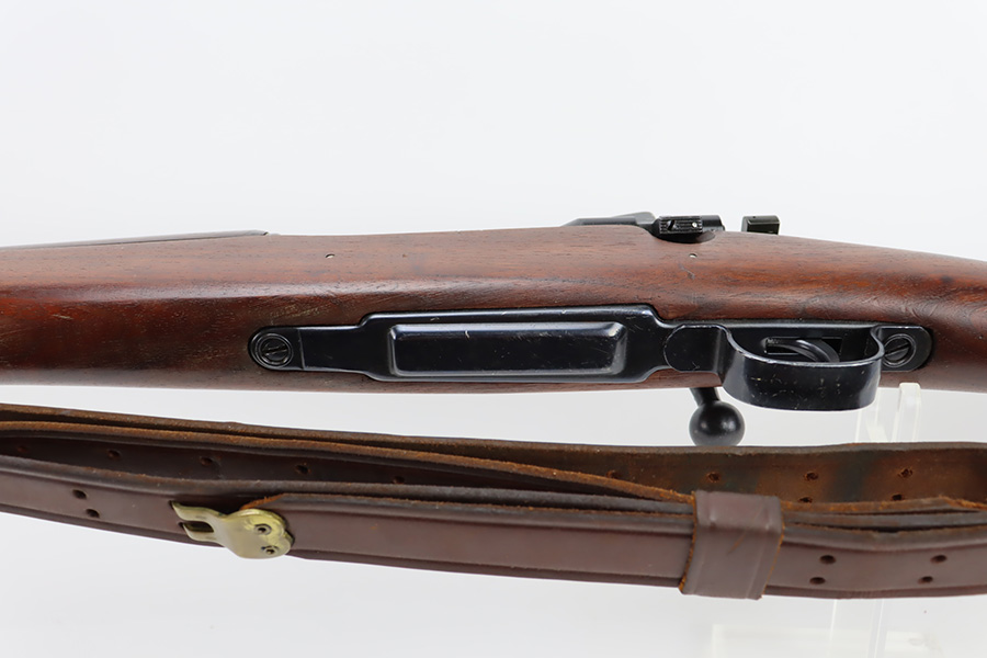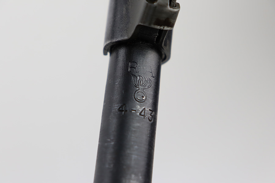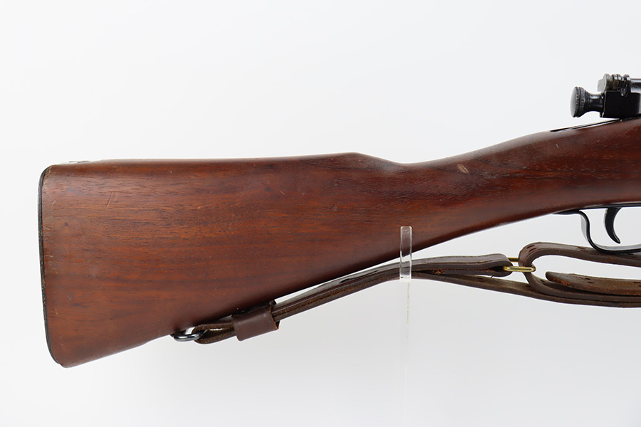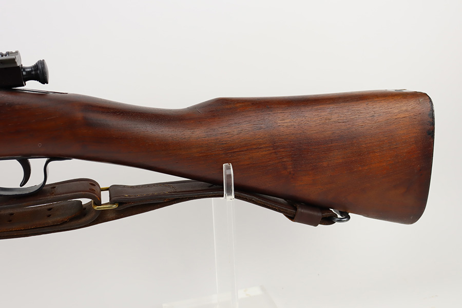 10/31/23 – This is a fantastic Model 1903a3 made by Remington in 1943. This rifle retains ~96% of its original finish and has some finish loss on the barrel & butt plate and some dings on the stock. The receiver and metal parts retain a deep bluing and the receiver stampings are sharp. The stock also looks fresh from the arsenal. The bore is sharp and very bright but it is frosted over. The top of the barrel is stamped with the US Ordnance mark, “RA” for Remington arms, and 4-43 for April of 1943. The rifle comes with a US Military style leather sling. NOTE: The screw that runs from trigger guard up through the wrist of the stock was replaced and is shorter than an original one.