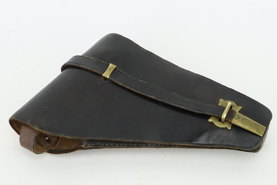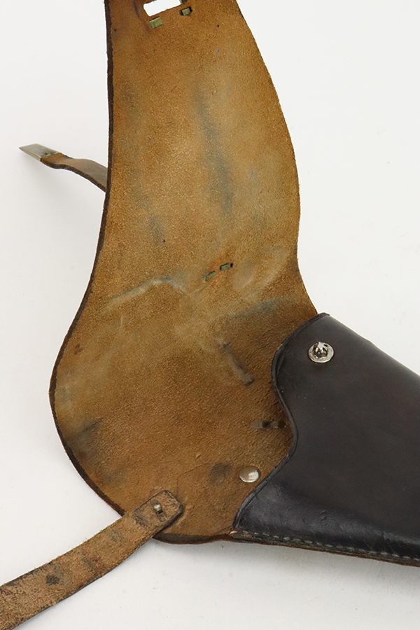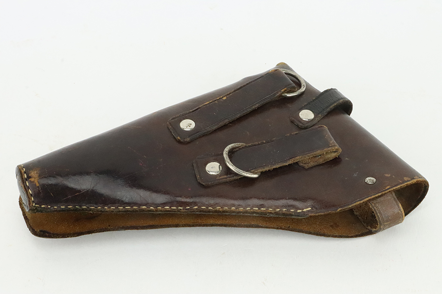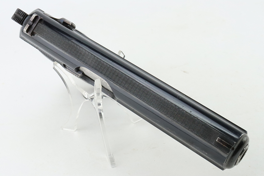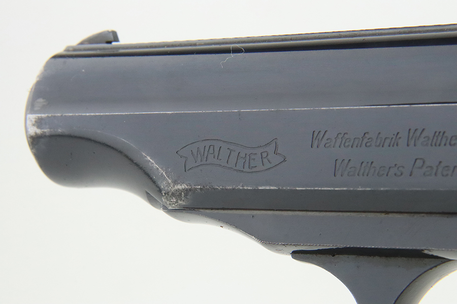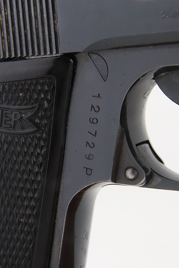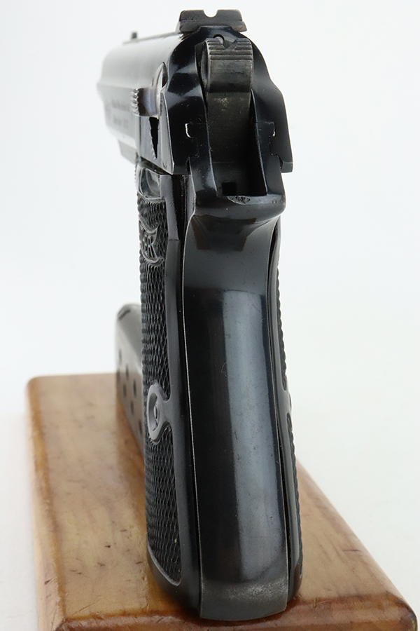 1/29/24 – This is an original Walther PP designated for the Reichs Finanz Verwaltung. It is marked “R.F.V. 16475 W” on the front strap. This Nazi department was in charge of the borders as well as government financial matters – much like our own IRS and border police. This one has retained about 96% of its original finish. Just minor muzzle wear and an area with tiny pitting on the right side of the slide. Fitted with black bakelite grips – there is cracking along the edge of the left panel. Comes as a rig with a generic holster and a scarce, late-war, “w” marked magazine. Excellent, shiny bore.
