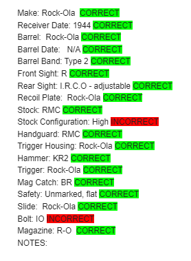 9/23/22 – This is an excellent example of a Rock-Ola M1 Carbine issued to the US military in 1944. A complete list of parts and markings is included in the photos. Overall, the gun is in excellent condition with very little finish loss. There are just some very light scuffs along the barrel and one small spot of minor pitting on the barrel as well. The stock is excellent with crisp markings and just a few tiny scratches here and there. It comes with a proper magazine and a green canvas sling. The bore has good rifling, but there are a couple of areas of very minor pitting in the grooves.