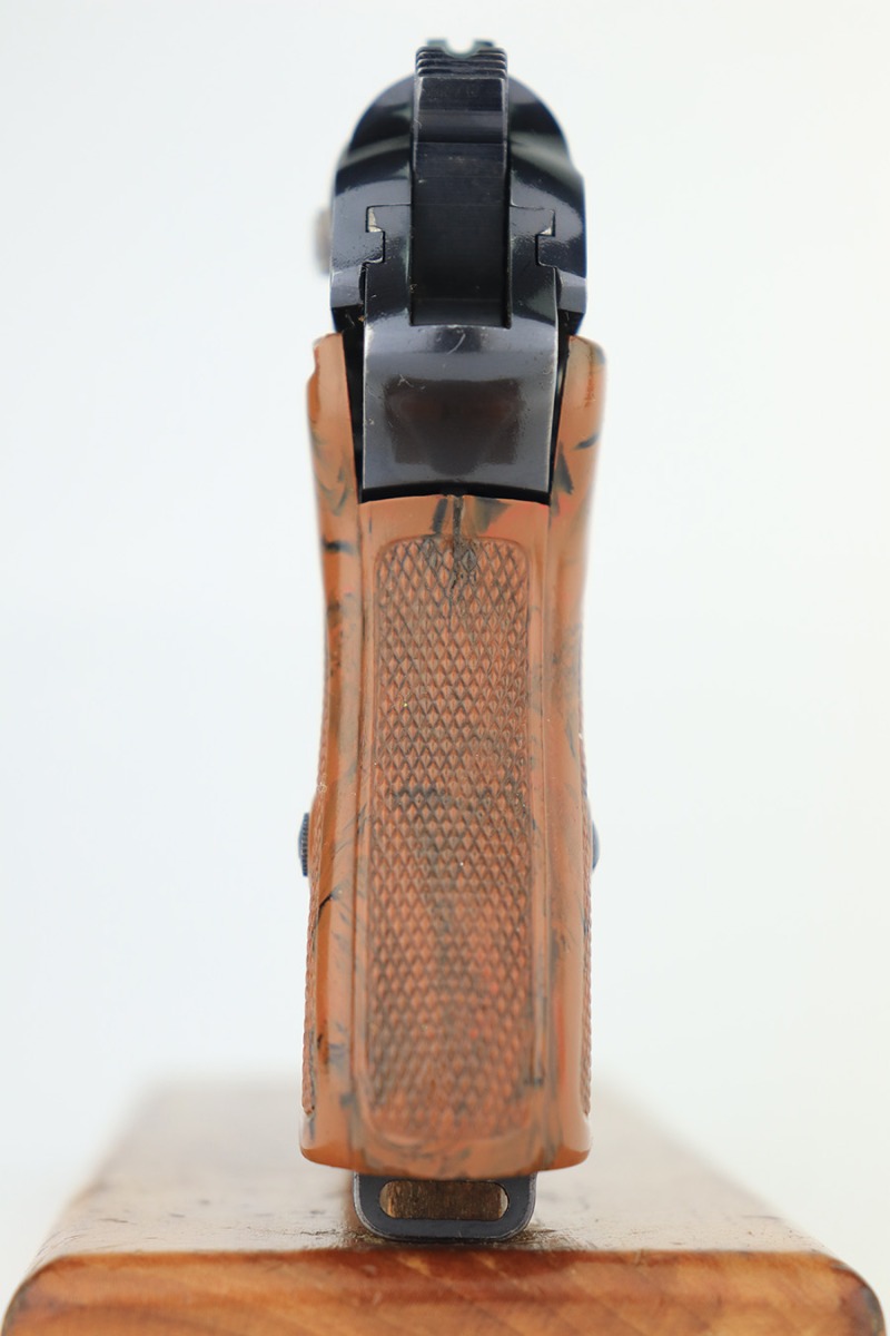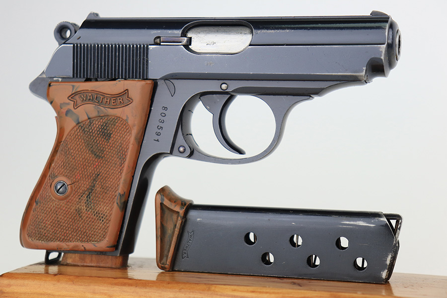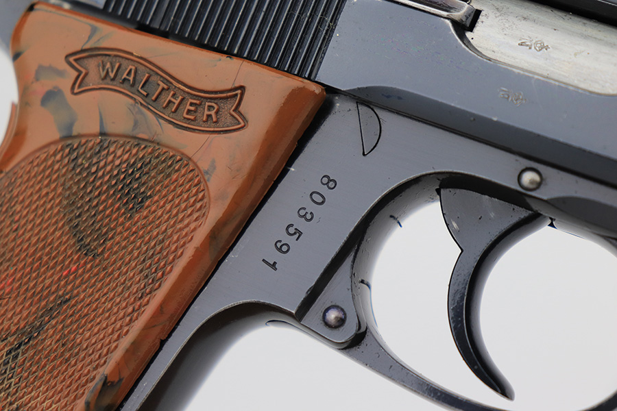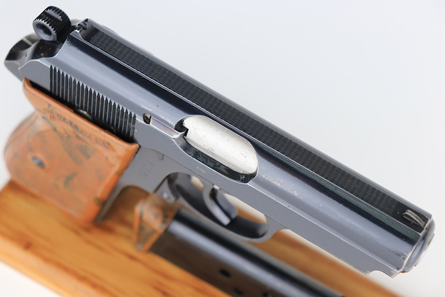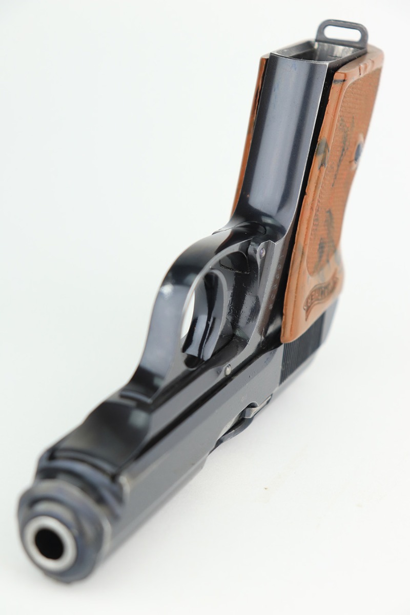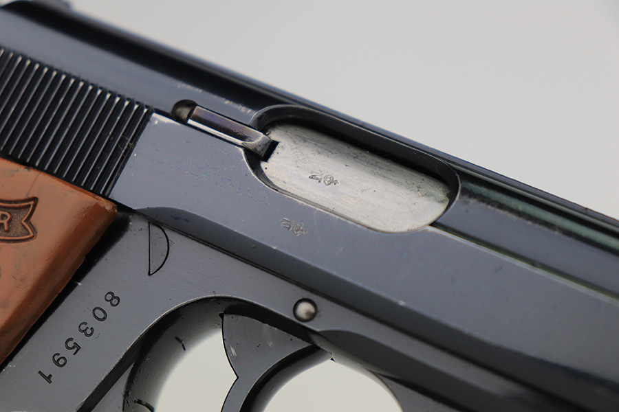 3/10/23 – This is an original and correct RZM marked Walther PPK from 1934-35 in excellent condition. The RZM (Reichs Zeug Meisterei) was the equipment office of the NSDAP and was established to contract for equipment. These pistols were commonly thought to be issued to the German political leaders of the time. This one is all matching and has retained about 97% of its original high polish finish. Minor muzzle wear and some light spotty discoloration on the left side of the slide. Some hairline cracking in the grip around the screw holes and on the spine. Comes with a period-correct Walther banner only finger extension magazine. Mint bore.