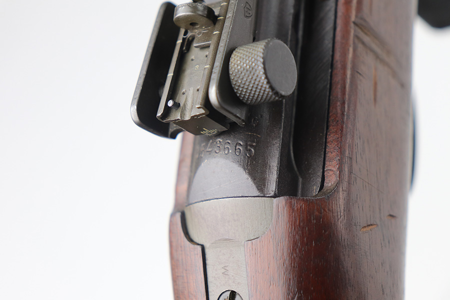 5/19/21 – This is an excellent example of a Saginaw M1 Carbine issued to the US military in late 1943, early 1944. The gun generally has mismatched parts but is in excellent condition. Included below is a full parts list with markings. The gun has retained most of its finish with a few very light handling marks here and there. An adjustable rear sight was added, likely after the war. The stock has a cross-canon cartouche on the right side.