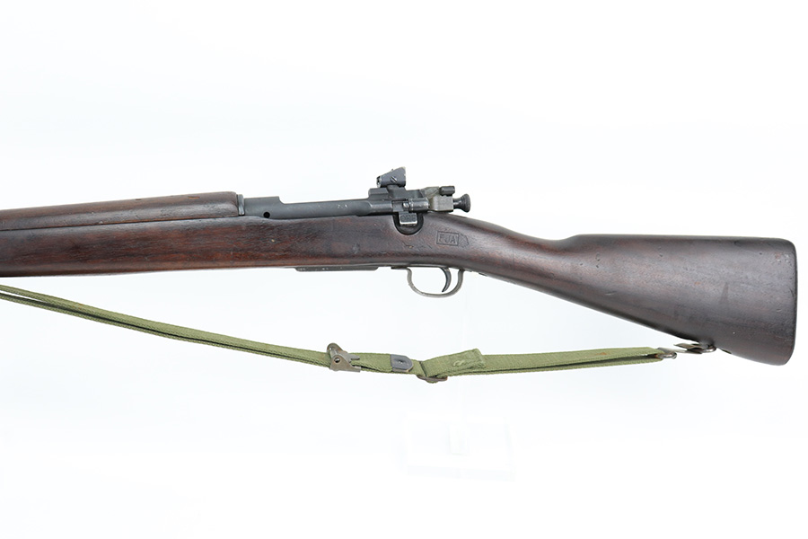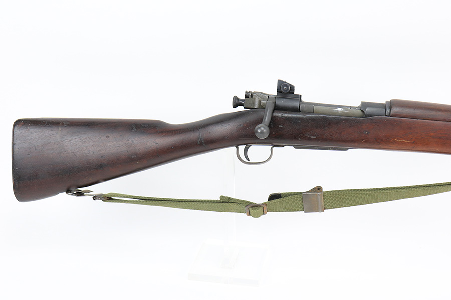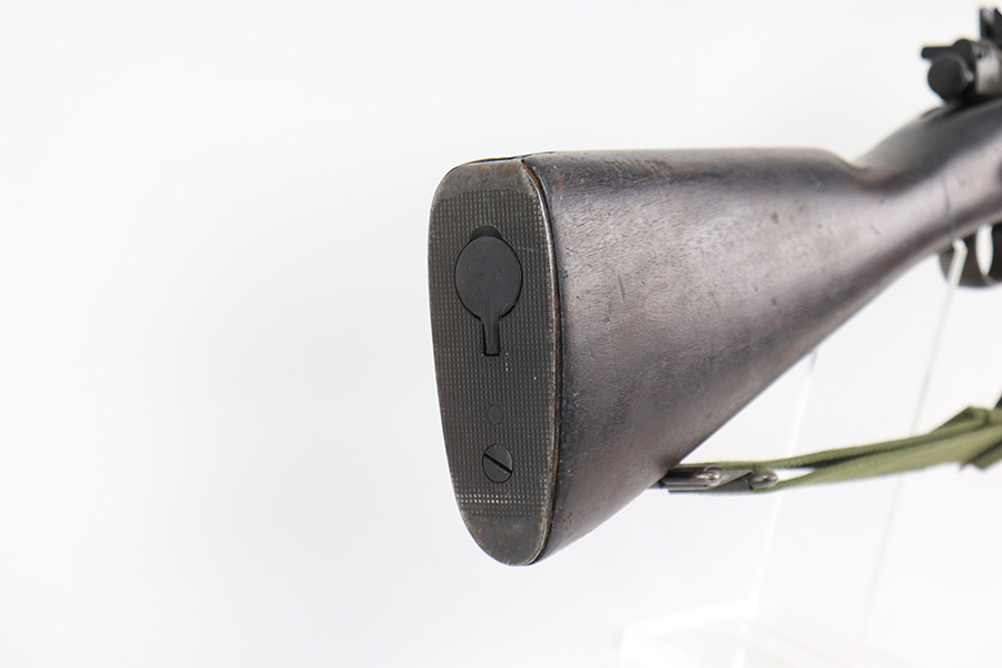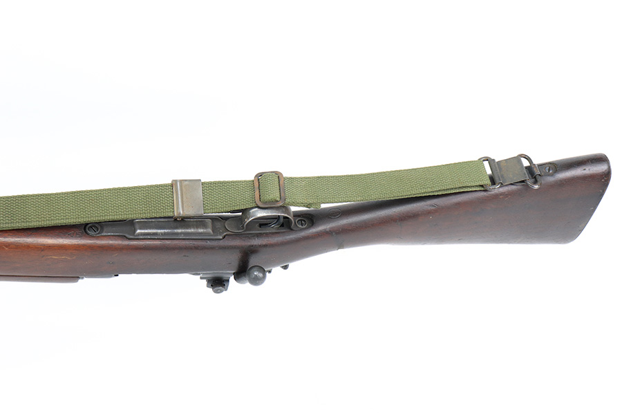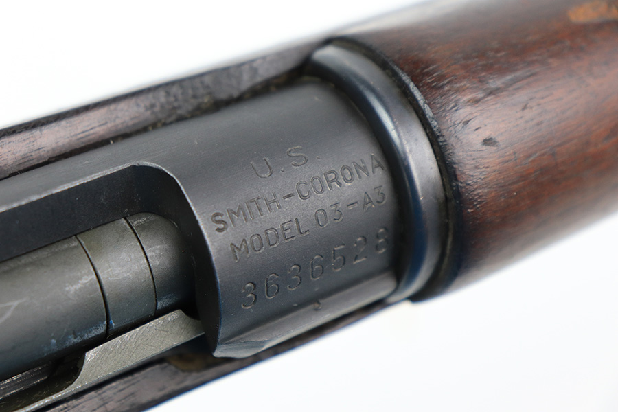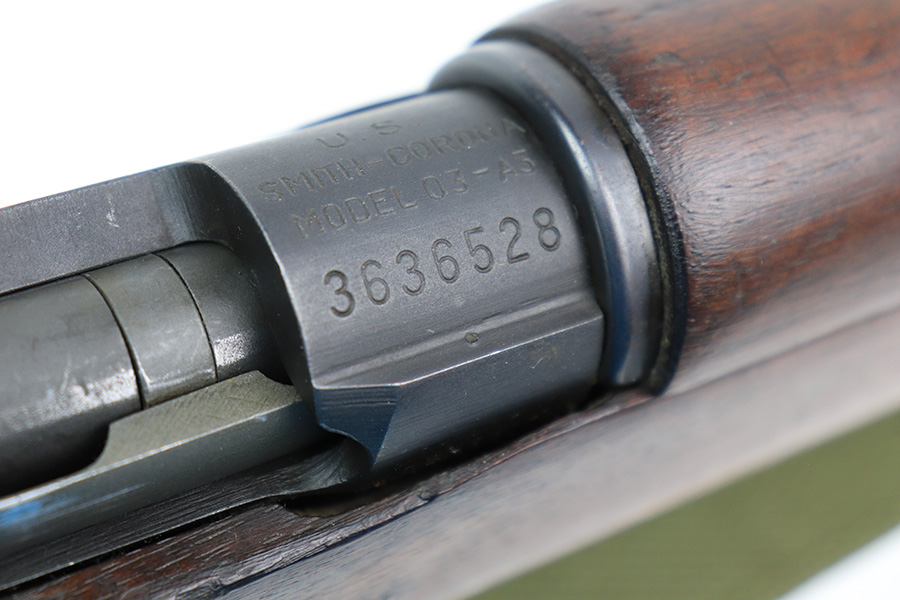 5/4/22 – This is an excellent example of a Smith-Corona Model 03-A3 issued to the US military in 1943. It has a proper SC marked 1943-dated barrel and a replaced SA marked bolt. The stock has the proper “FJA” Frank Atwood inspection stamp and military cross-canon cartouche. Comes with front sight hood and green canvas sling. Overall, the gun is in excellent condition. There are some light scuffs around the muzzle and wear on the floor plate / trigger assembly. Overall, the stock is really nice with some minor bruises and scratches here and there. Mint bore.