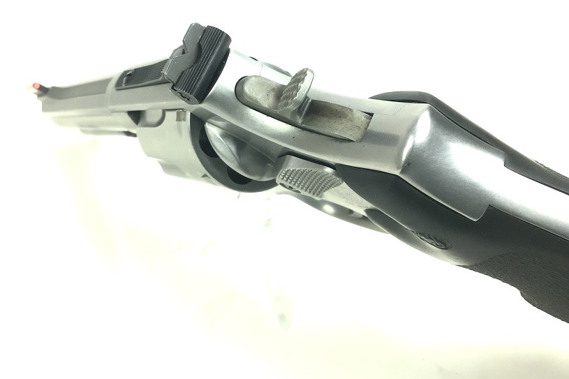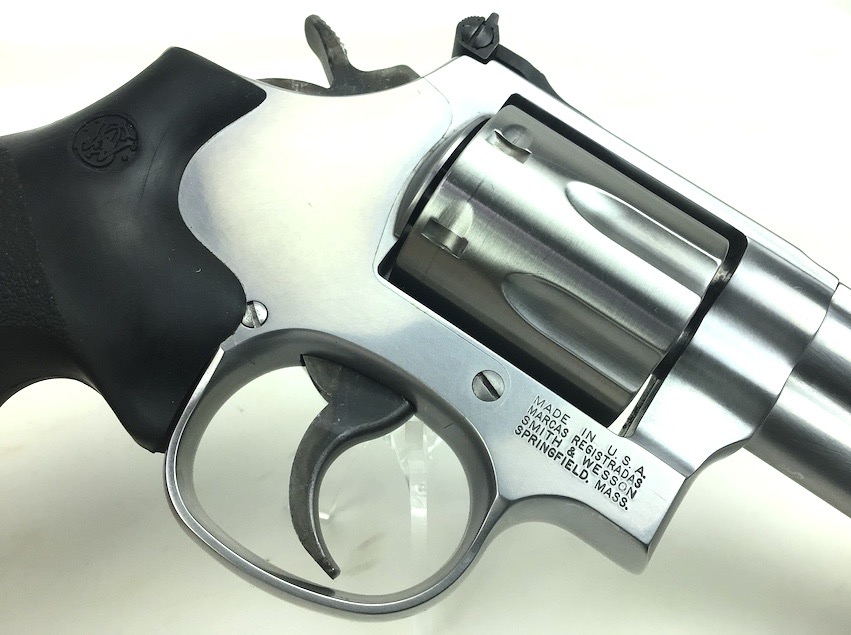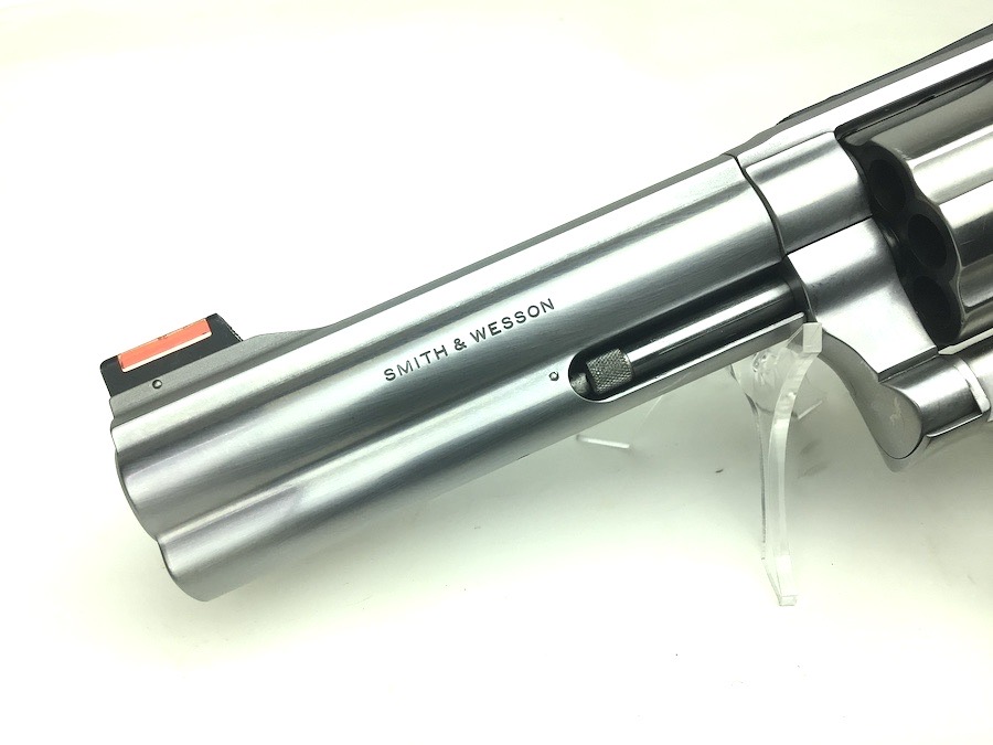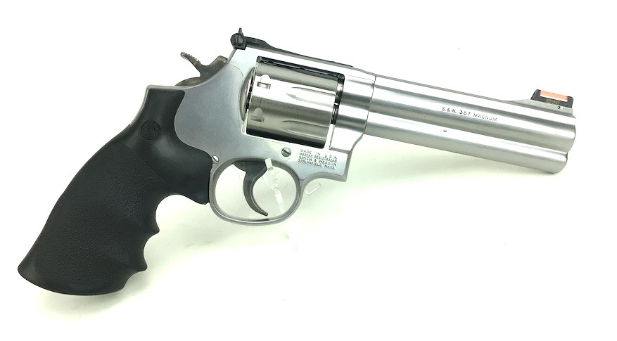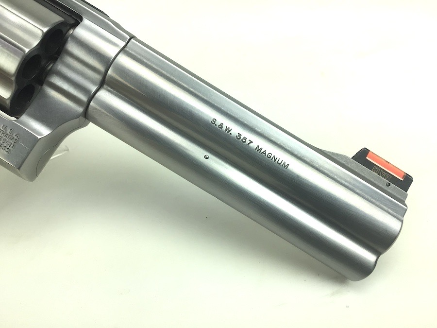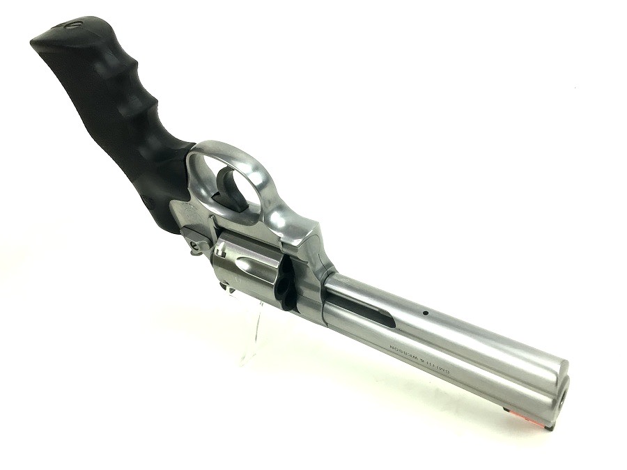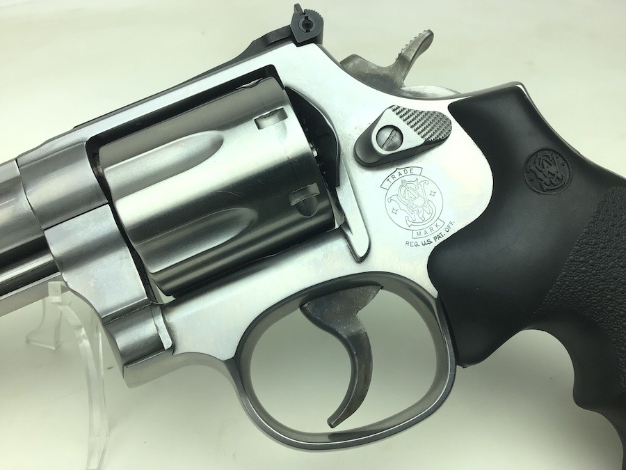 8/2/24 – This is an excellent example of a Smith & Wesson Model 686 Plus, 7 shot Revolver. It is chambered in .357 Magnum with a 5 inch barrel. It has a really nice stainless finish with almost no signs of wear or use, just a very light roll mark on the cylinder. Fitted with a nice black rubber S&W Monogrip. Mint bore. Smooth action with great lock up and timing. Includes 2 speed loaders and 14 rounds of ammunition. Located in our Ohio office.