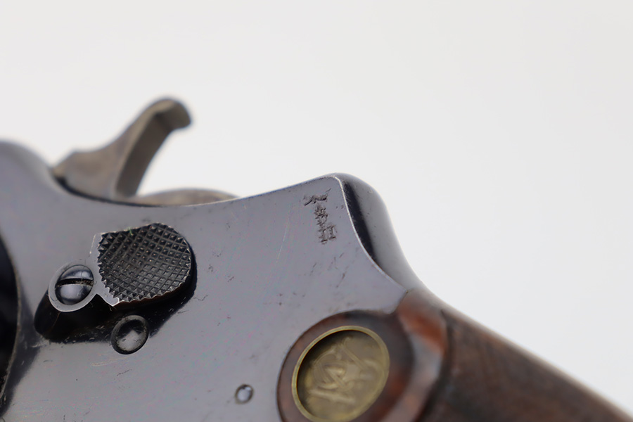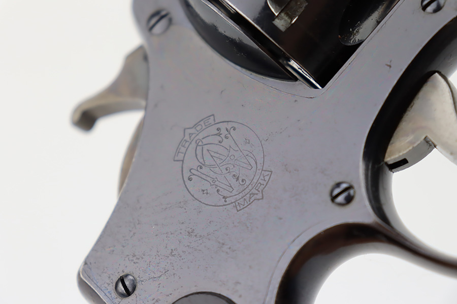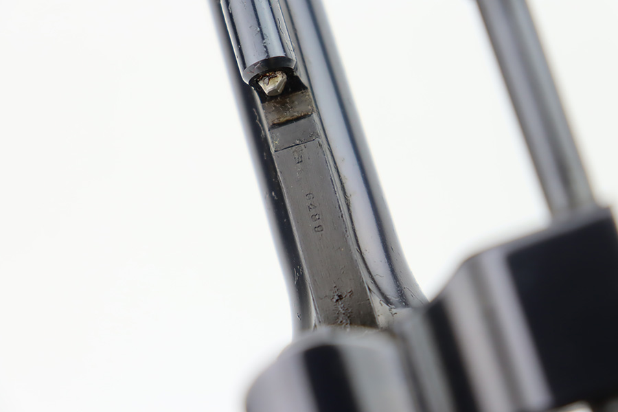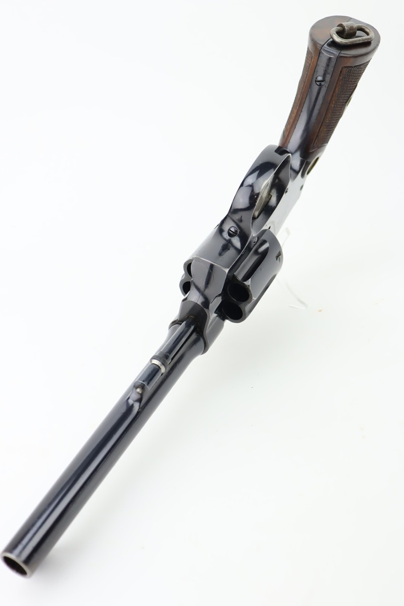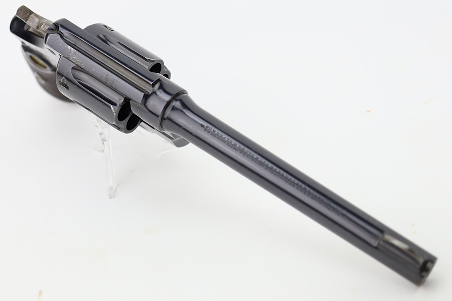 10/20/23 – Manufactured during WWI under contract for the Canadian military, this is a Smith & Wesson Mark II Hand-Ejector in .455 caliber. The revolver is all original, matching, and has retained about 97% of its original high polish finish. Just very minor wear around the muzzle and on some of the high edges. An area of very light pin-pricking and a few scratches on the right side of the frame. Fitted with excellent checkered wood grips. Mint bore.
