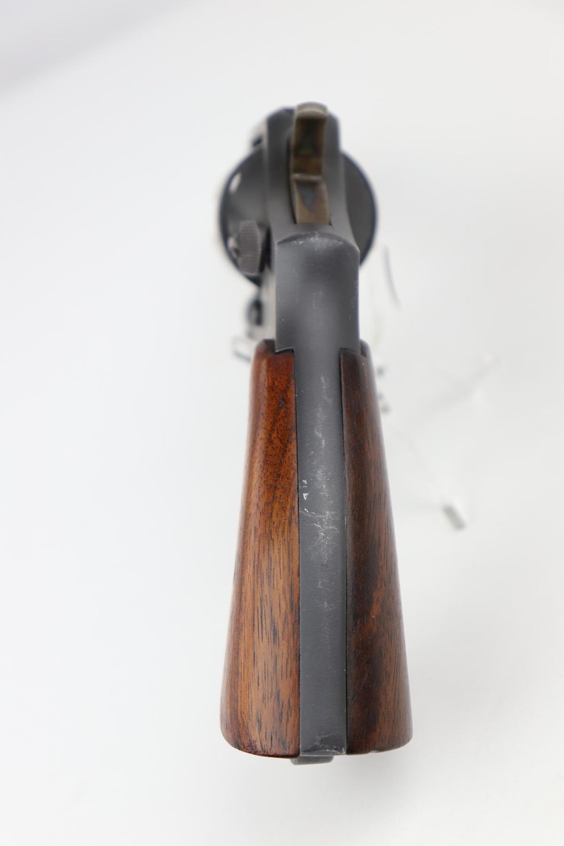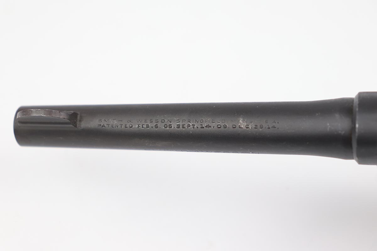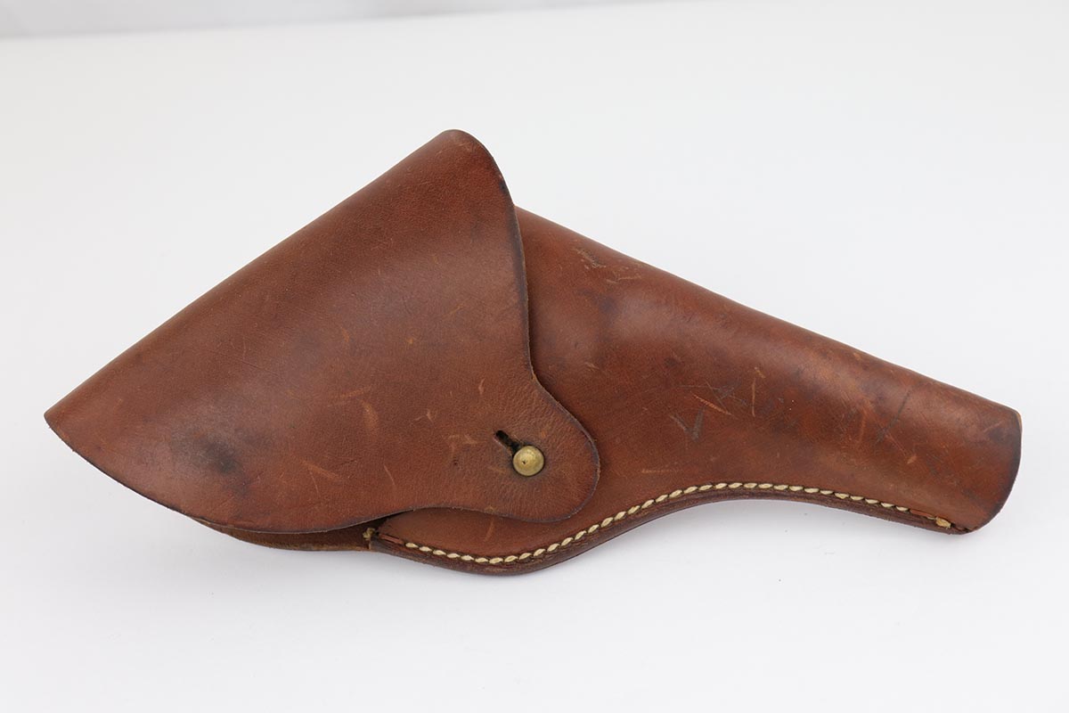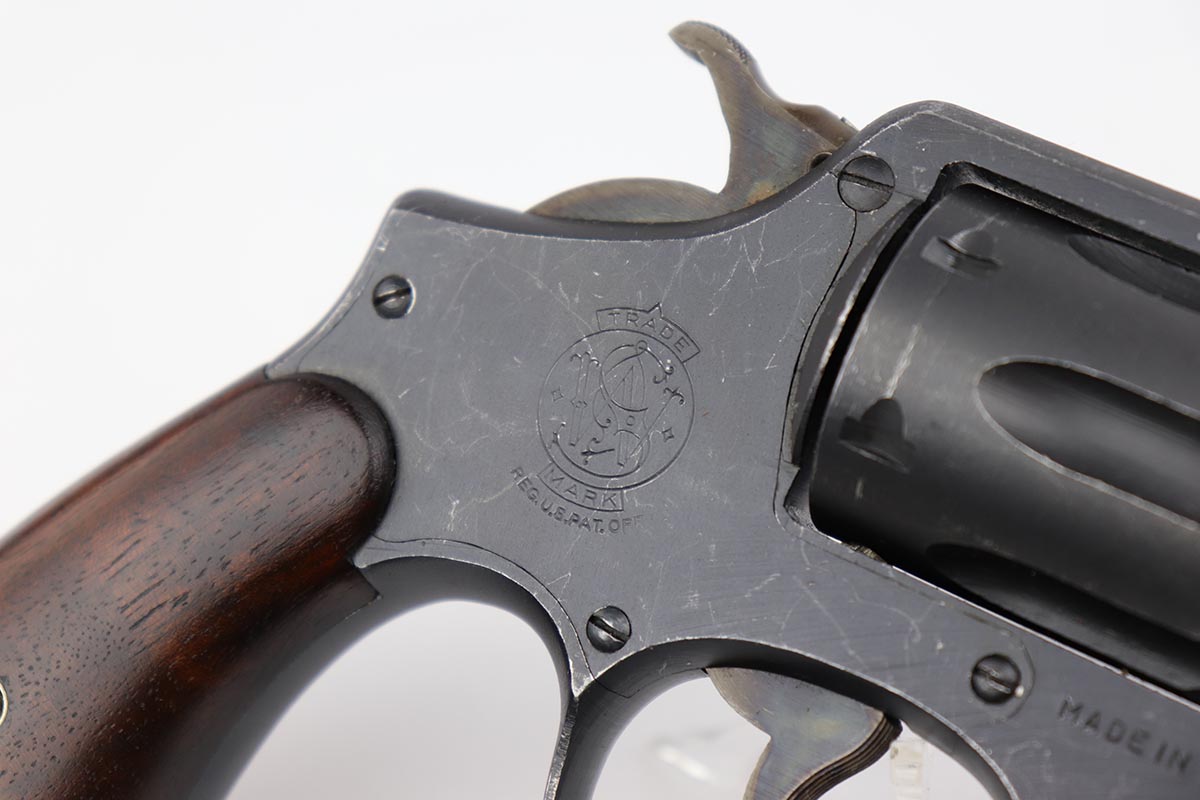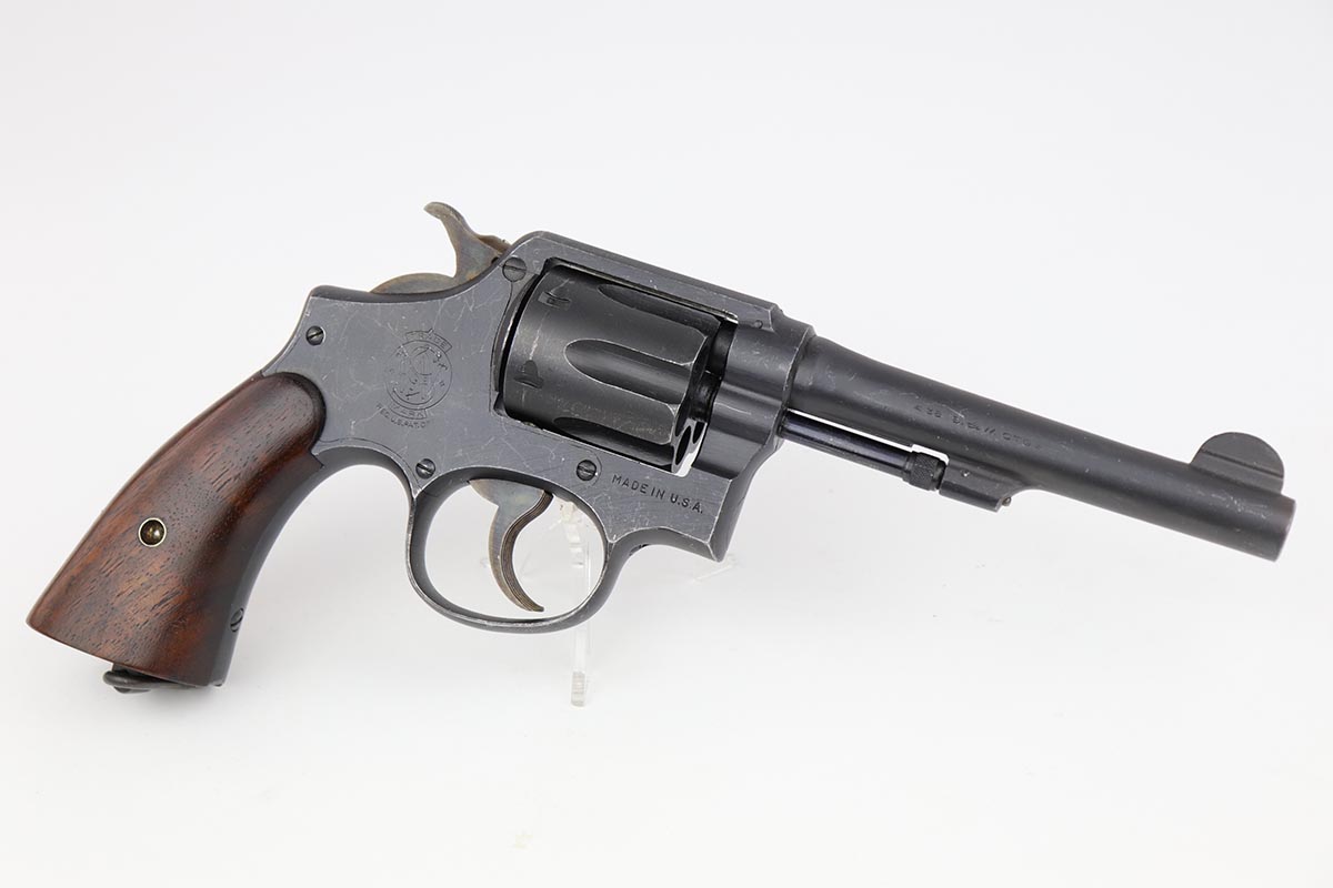 10/17/22 – This is an excellent Smith & Wesson Victory Model from World War II. It is U.S. Property marked and G.H.D (Guy H. Drewry) inspector marked. The original finish is about 97% with minor thinning from the holster and various scuff marks. Mint bore. Made from 1942 to 1944, with a production run of ~500,000. They were standard issued side arms for US Navy and Marine air crews due to their size and ease of operation. It is .38 S&W special. Comes with excellent, period original holster.
