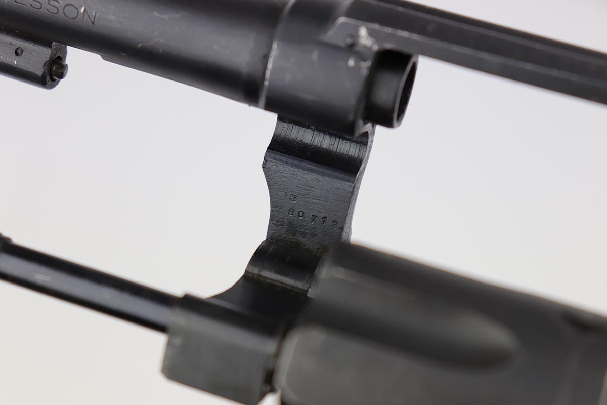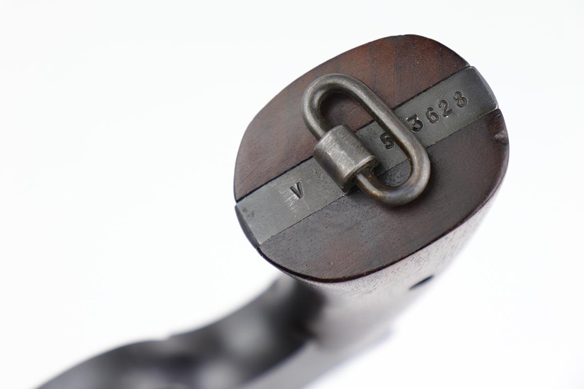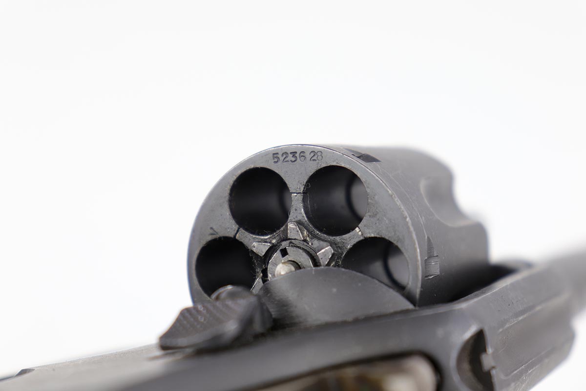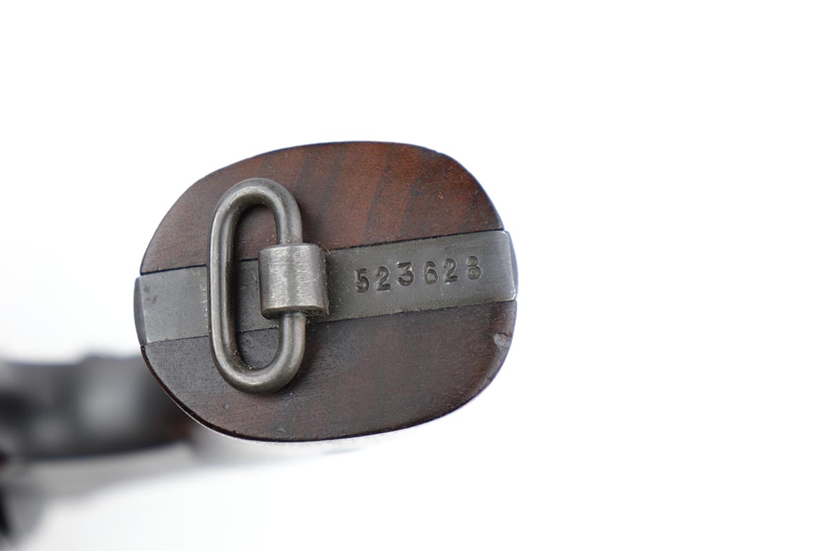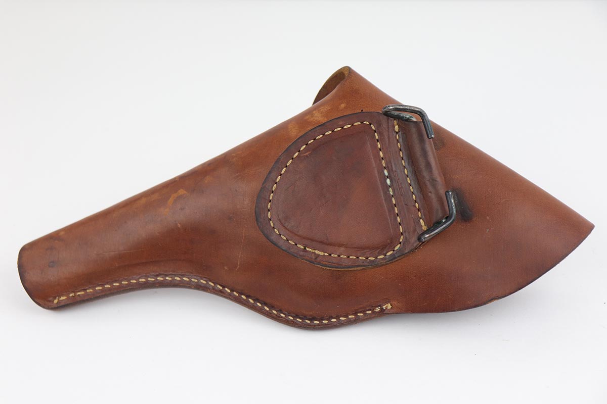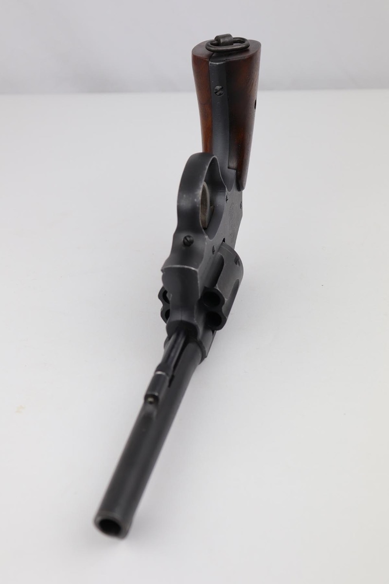 10/17/22 – This is an excellent Smith & Wesson Victory Model from World War II. It is U.S. Property marked and G.H.D (Guy H. Drewry) inspector marked. The original finish is about 97% with minor thinning from the holster and various scuff marks. Mint bore. Made from 1942 to 1944, with a production run of ~500,000. They were standard issued side arms for US Navy and Marine air crews due to their size and ease of operation. It is .38 S&W special. Comes with excellent, period original holster.