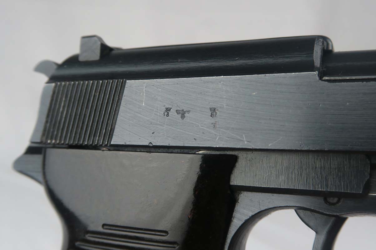 7/21/17 –  Comes in the S block – 1944 and a fairly unique example.  Minty finish, with minor patina on the front strap and almost zero finish loss.  All matching and correct.  Minty grips and bore.