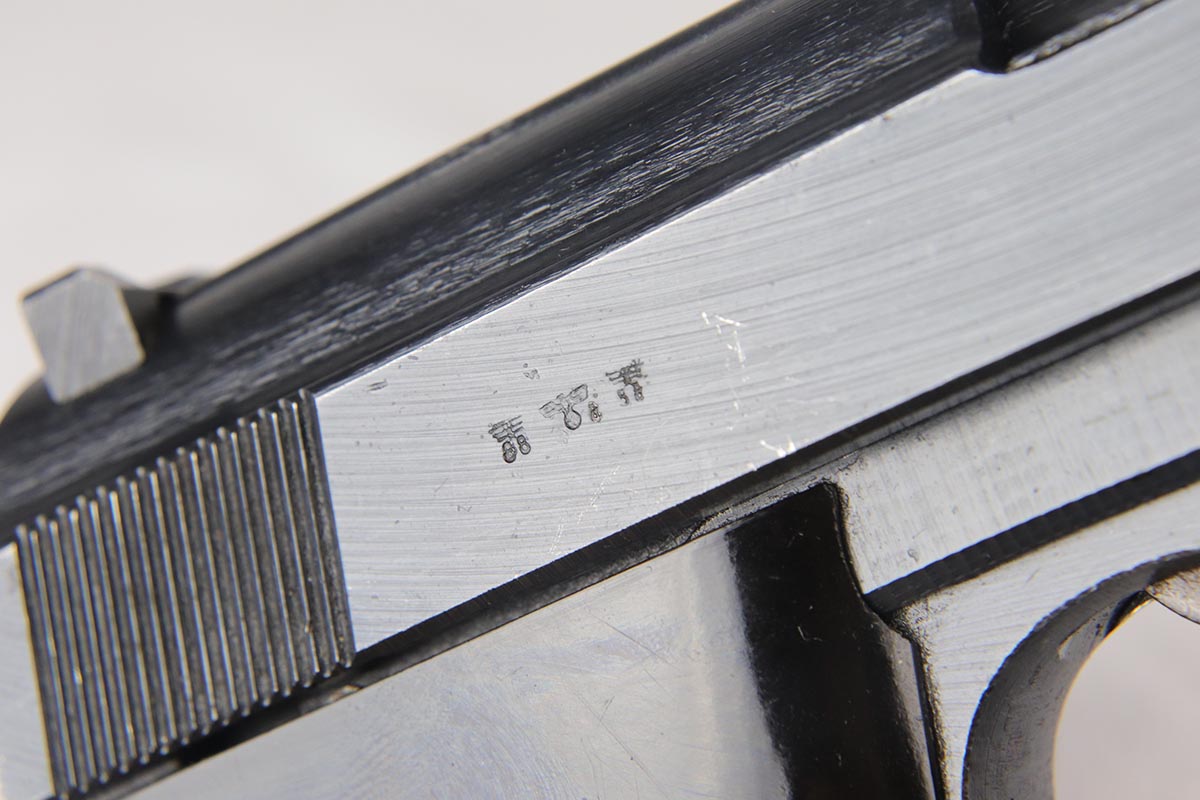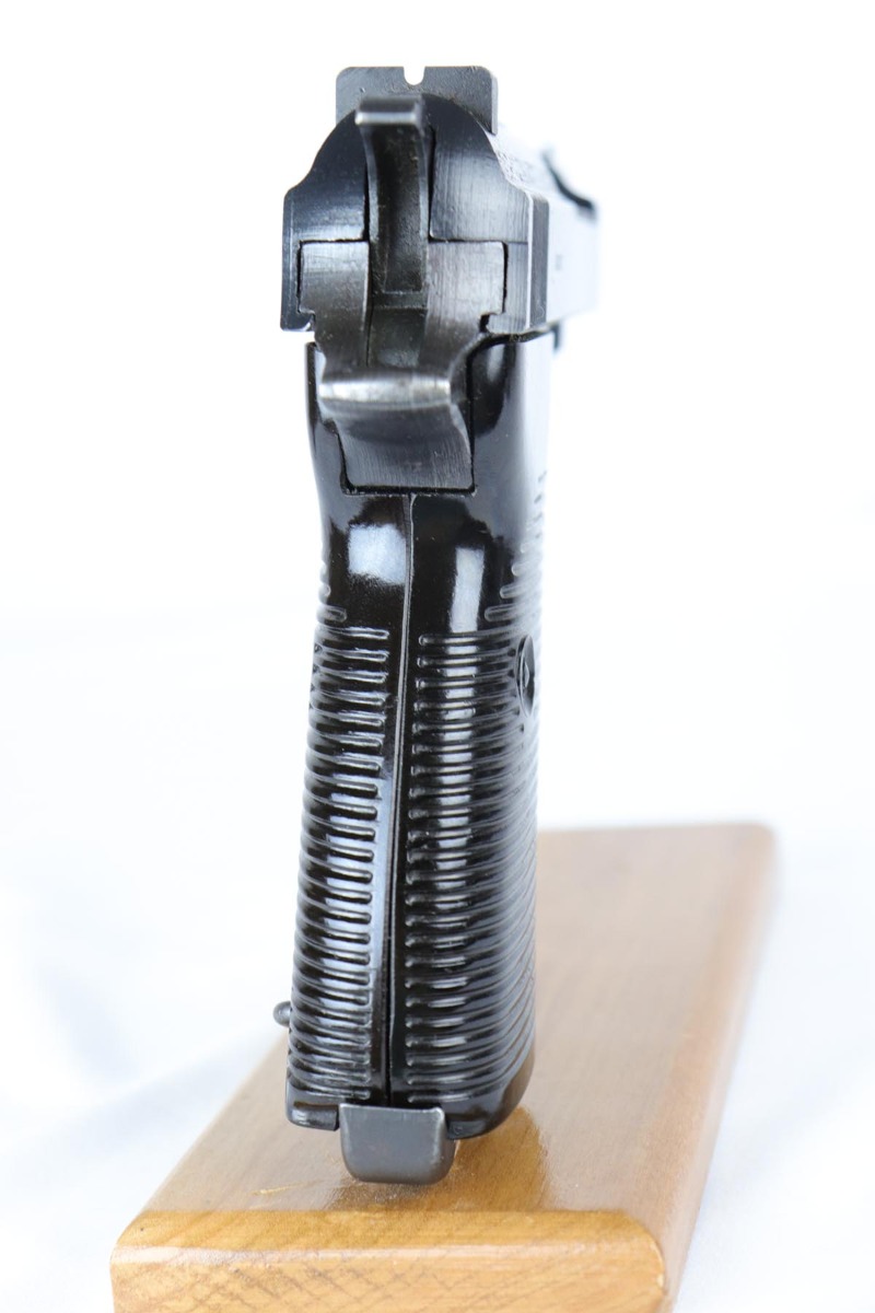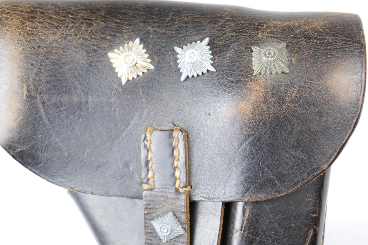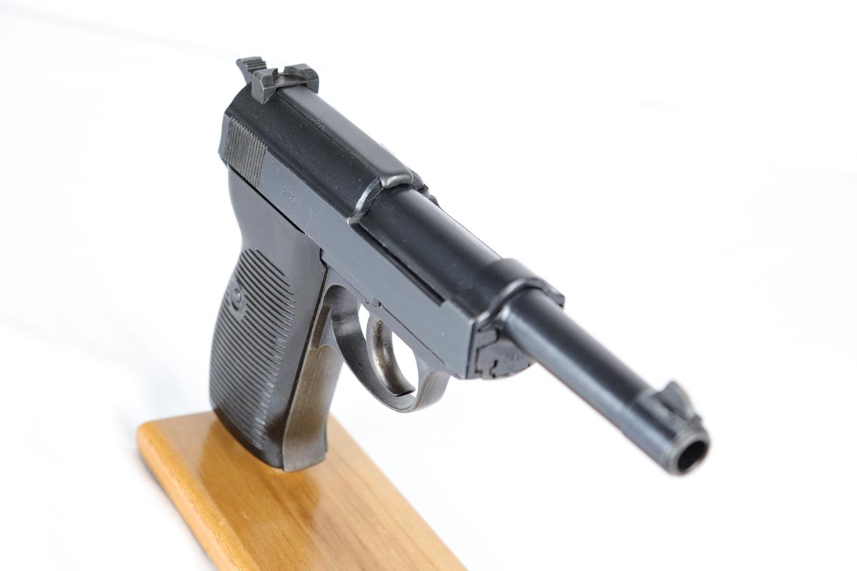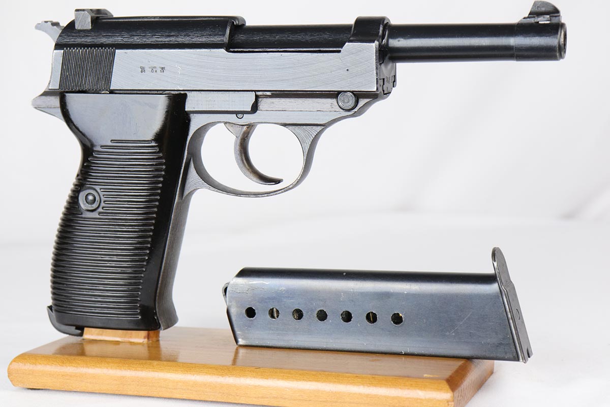 6/20/18 – This is an excellent and all matching Nazi issued Spreewerk P.38 with embellished 1943 made holster. The pistol shows only minor muzzle and edge wear, with dulling of the color to the front strap. This pistol was made in November of 1944 and has late-war features such as the cog hammer and rough machining lines on the slide. The pistol comes with a ‘joa’ holster that is dated and waffen marked, and features GI embellishments on the front flap. The interior has the name of the GI in it, Jack Jordan, and has the serial of the pistol written inside, making this a cool pairing with lots of joint history!