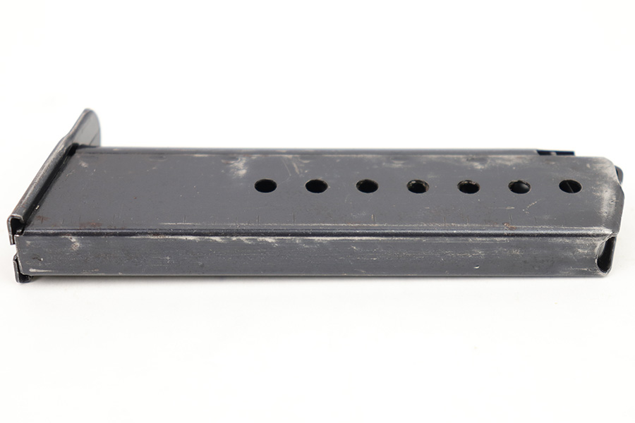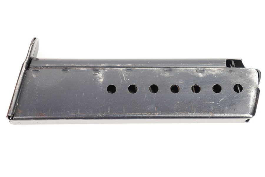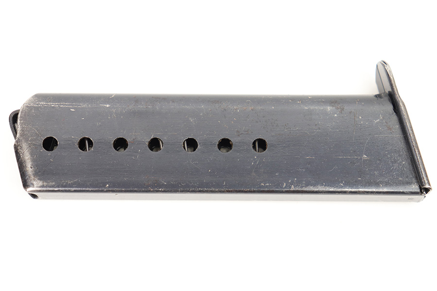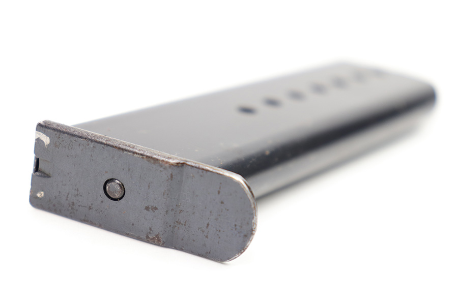 1/23/23 – This is an excellent condition Spreewerk P.38 magazine from WW2. The magazine has a blued tube and base with no markings or stamps except for a small eagle/88 proof stamp on the spine of the magazine. There is some mild finish loss and surface patina, but overall the finish is excellent. Strong, functional spring as well.